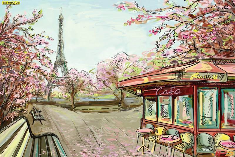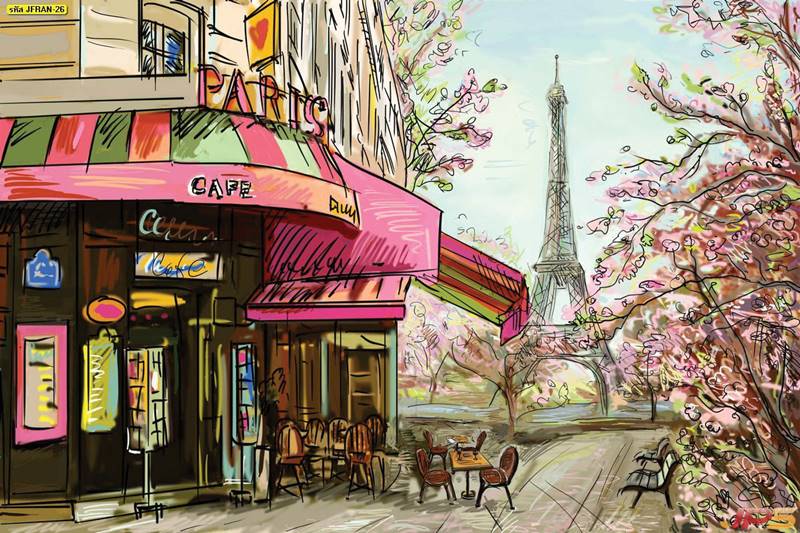 ยุโรป ลายเส้น ร้านอาหาร ร้านค้า วิวยุโรป วอลเปเปอร์ลายยุโรป ภาพสั่งพิมพ์