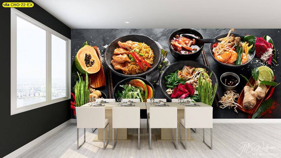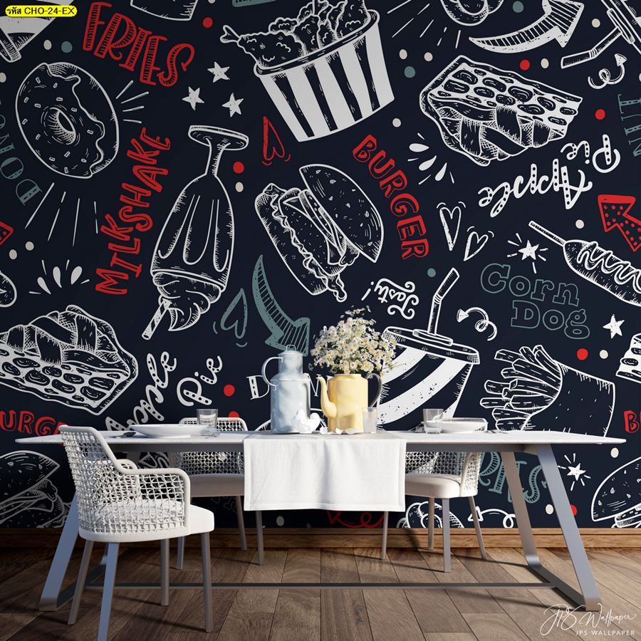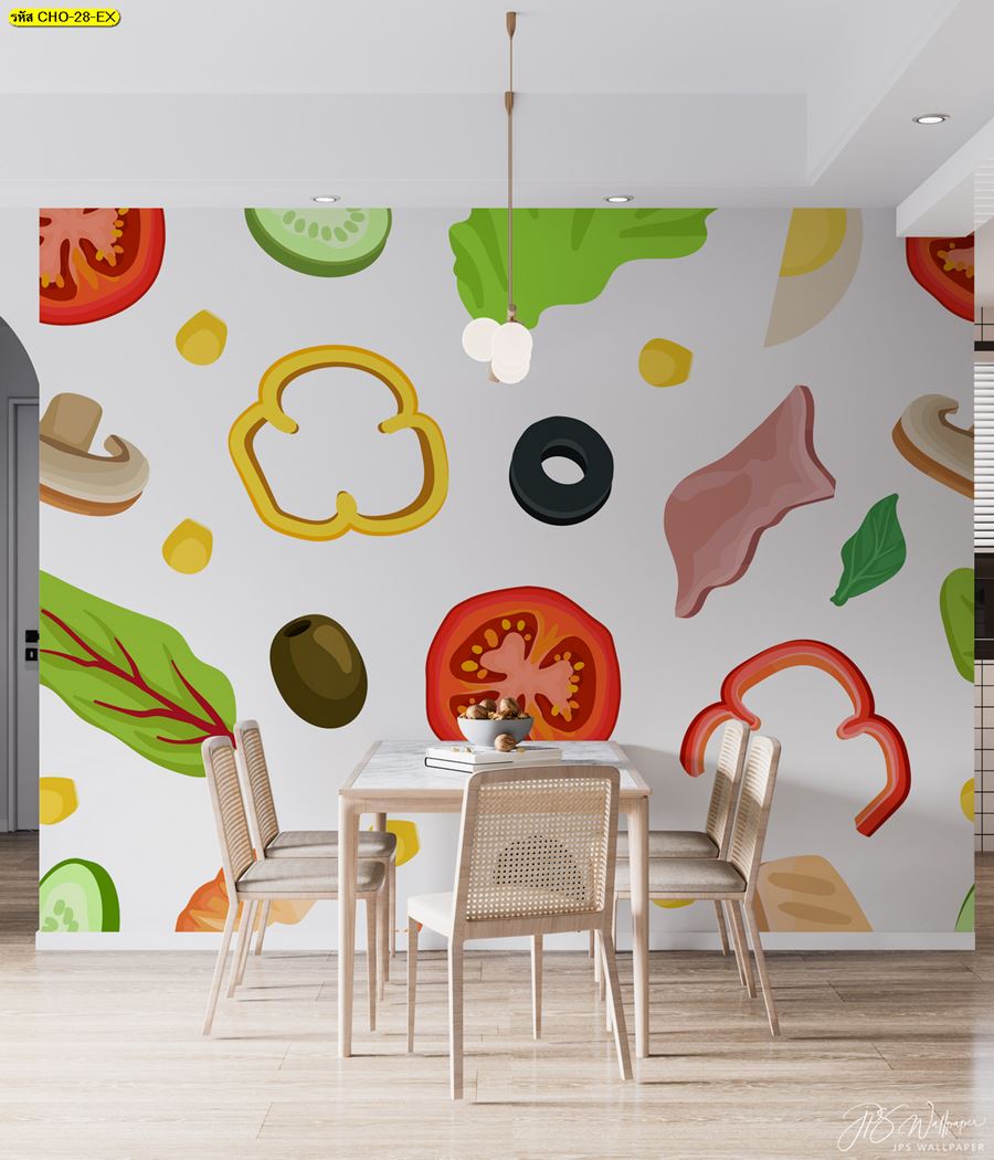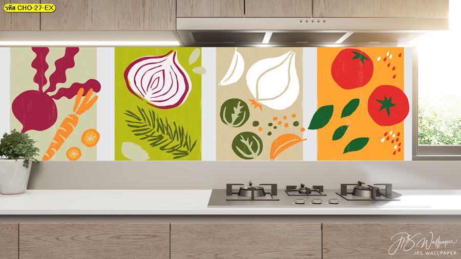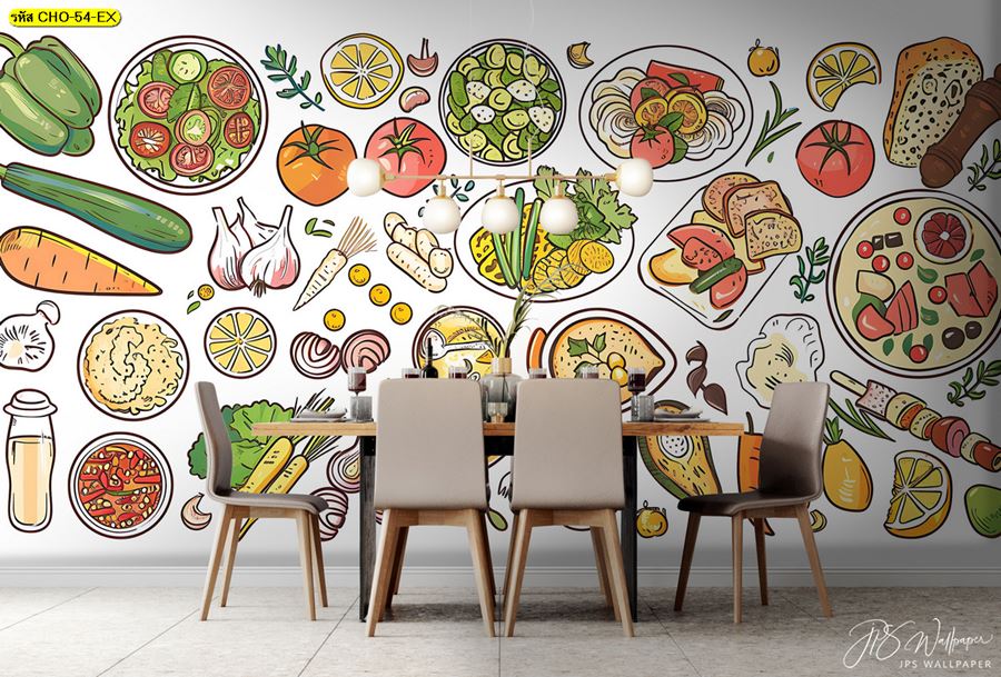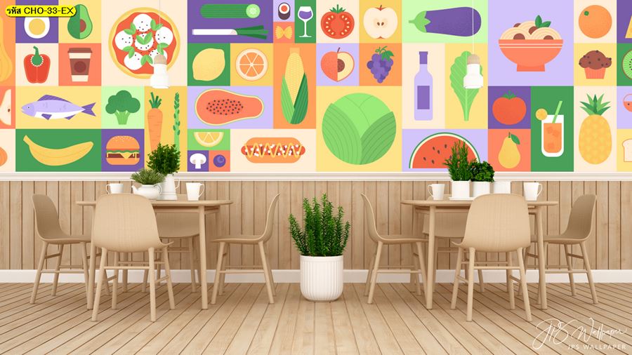 ลายห้องครัว ห้องครัว ลายผลไม้ ผลไม้ คาเฟ่ กาแฟ ผัก