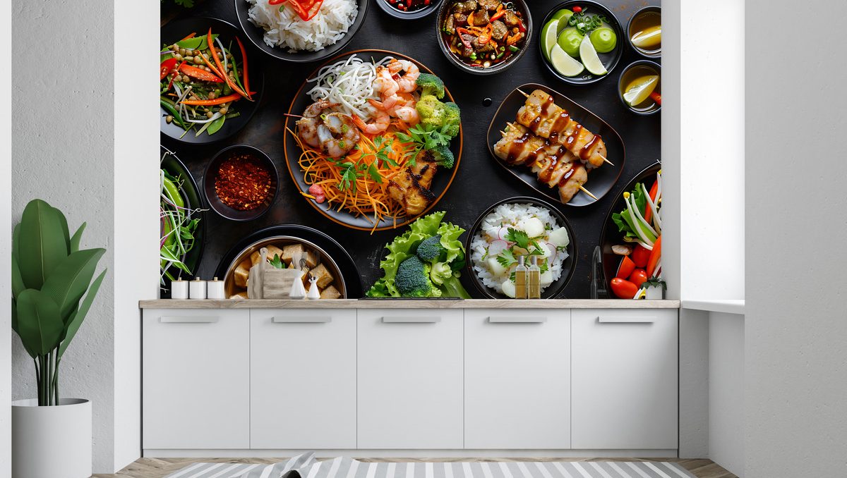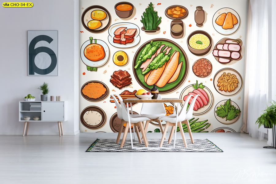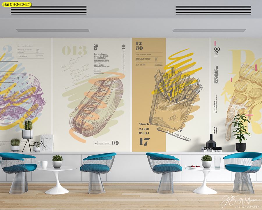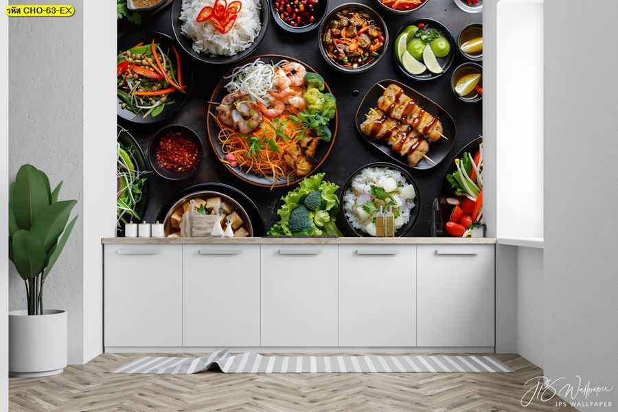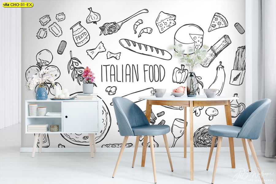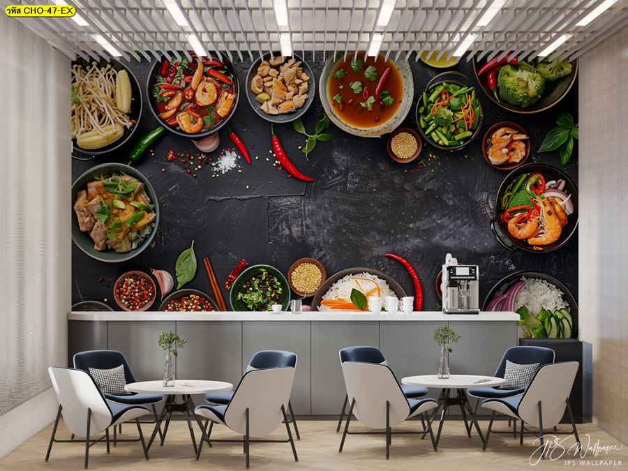 ลายห้องครัว ห้องครัว ลายผลไม้ ผลไม้ คาเฟ่ กาแฟ ผัก