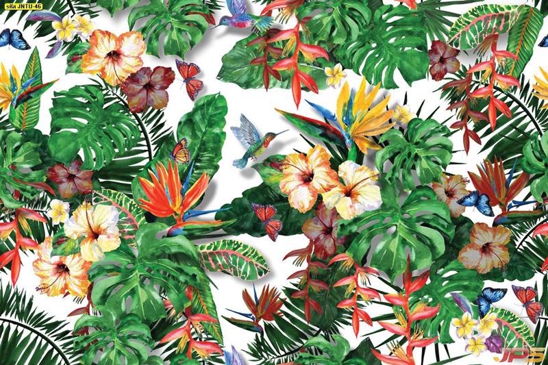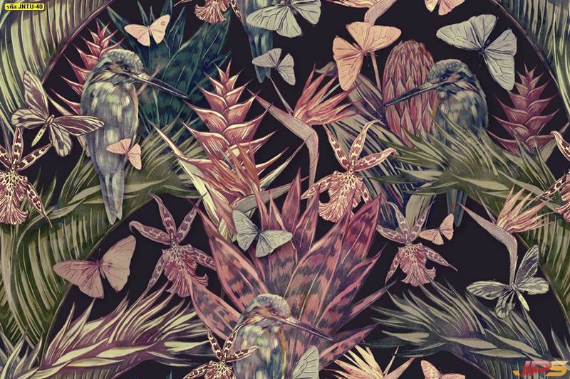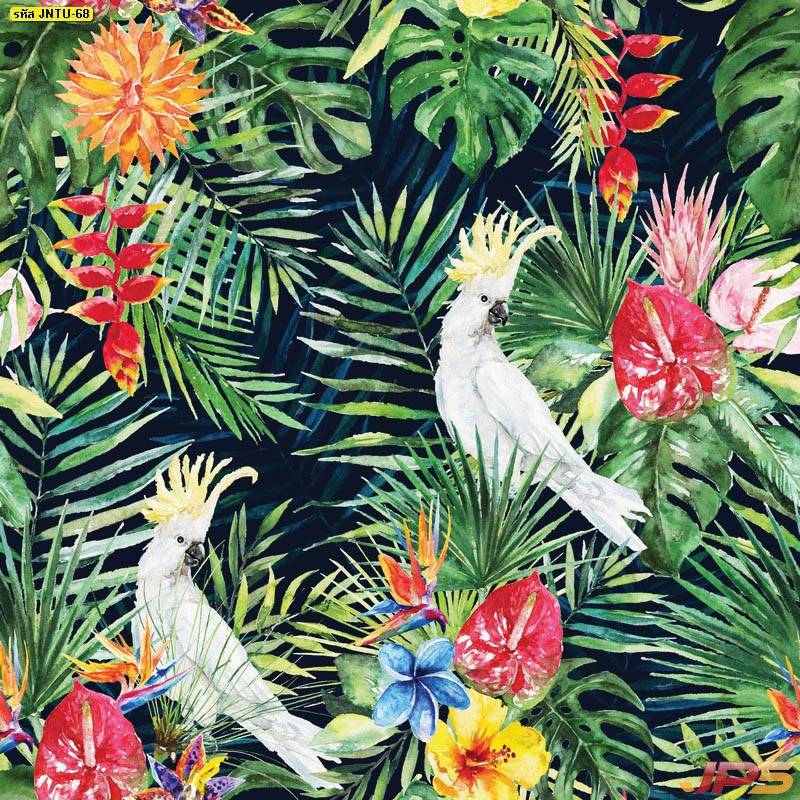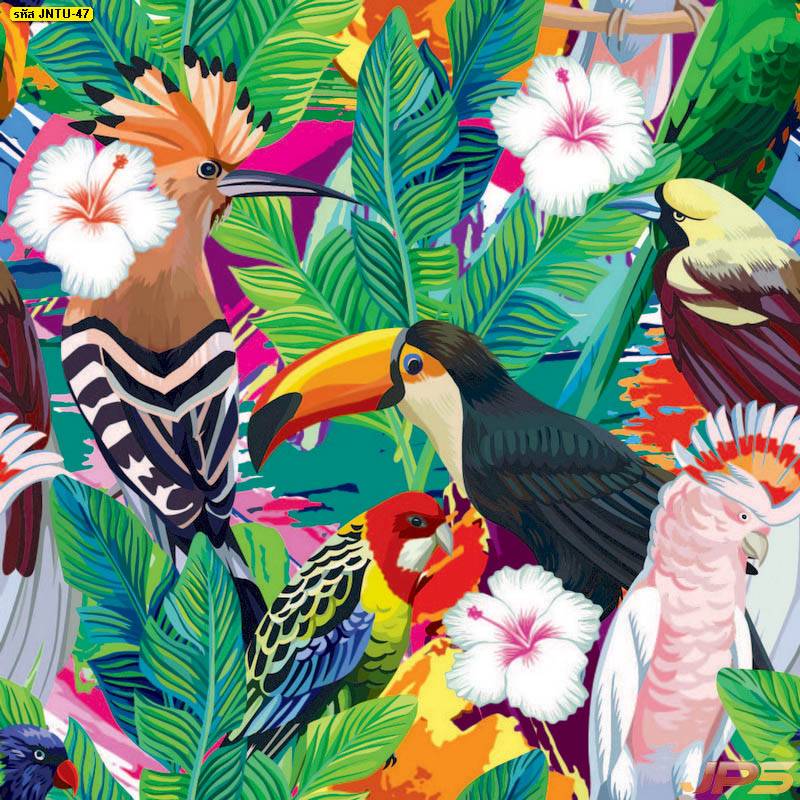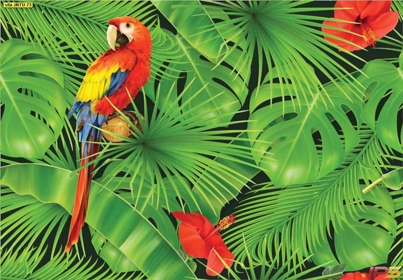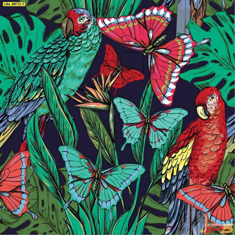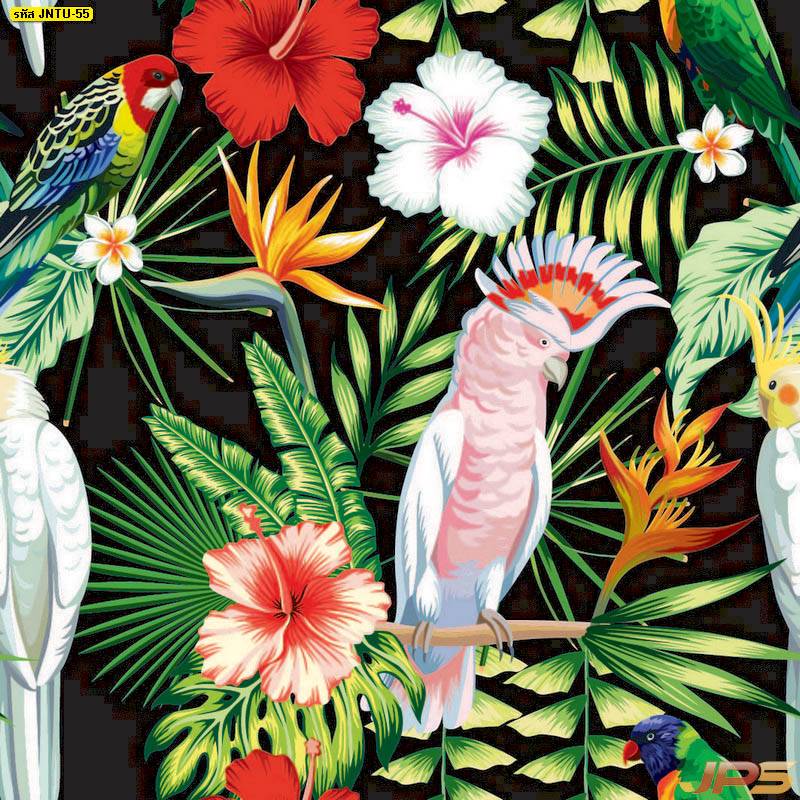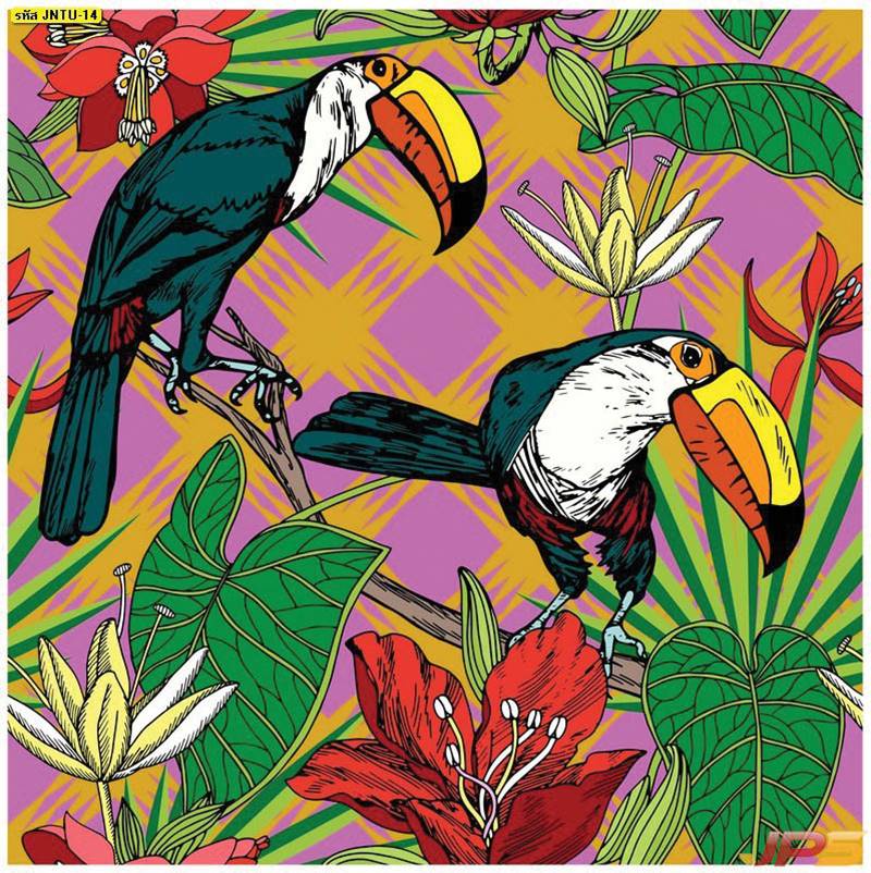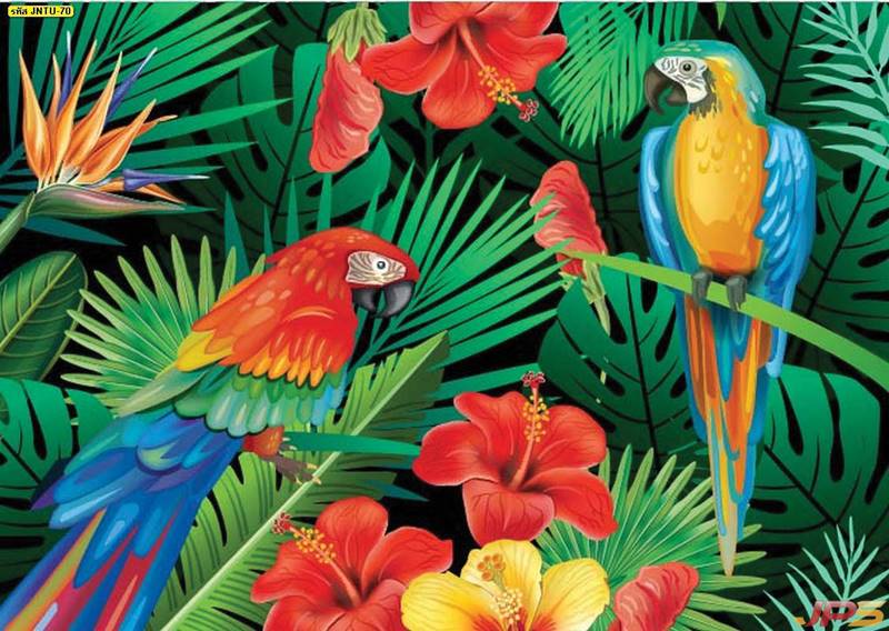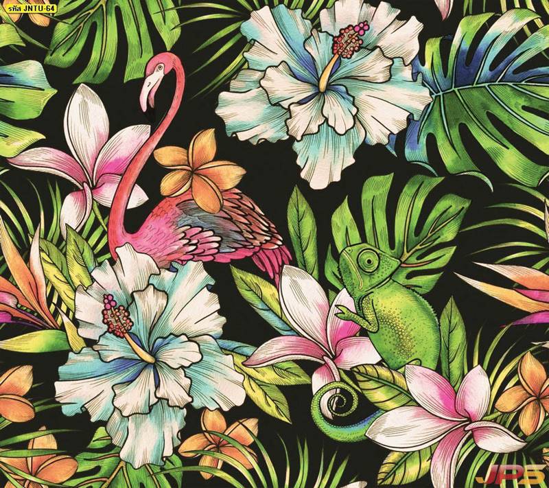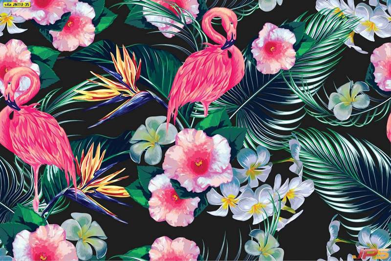 ลายสวนป่า ภาพติดผนัง นกฟลามิงโก ป่าไม้ ลายสัตว์ นกแก้ว นก หงษ์ นกยูง ใบไม้…
