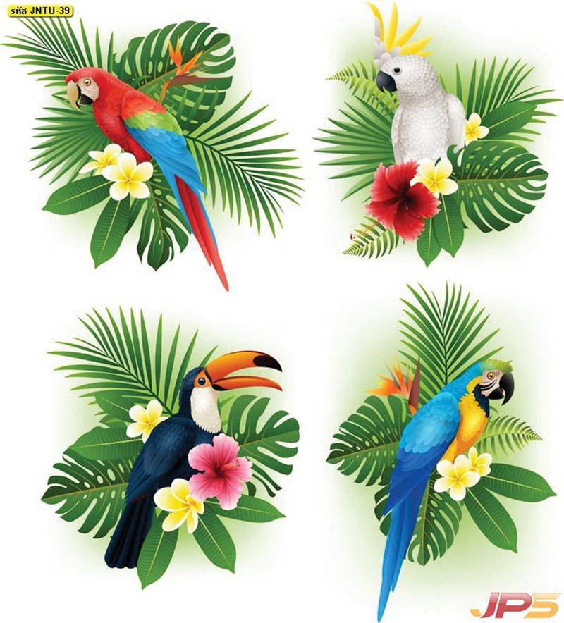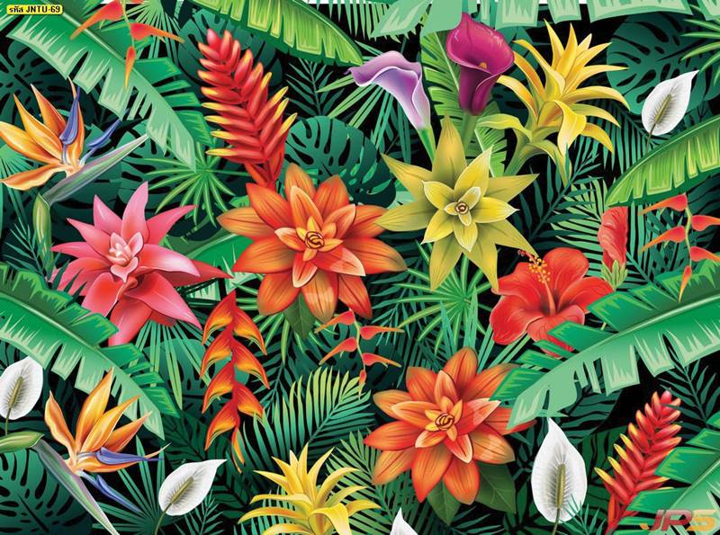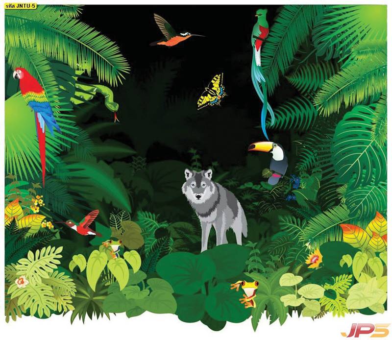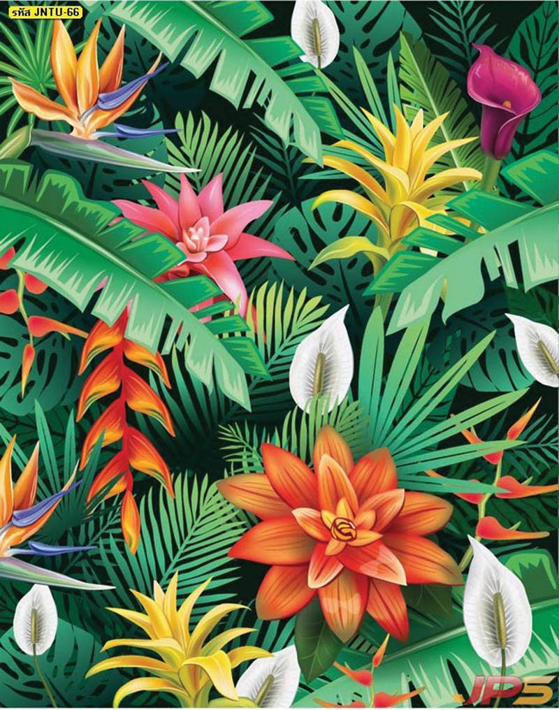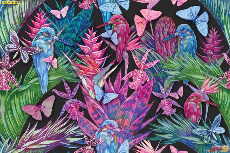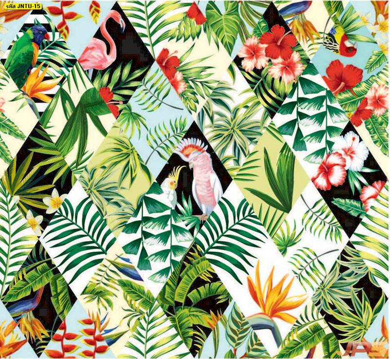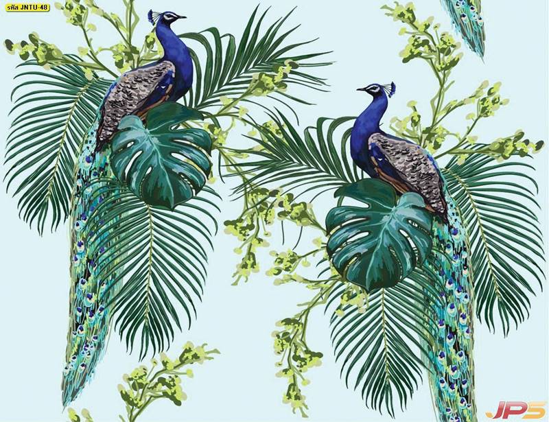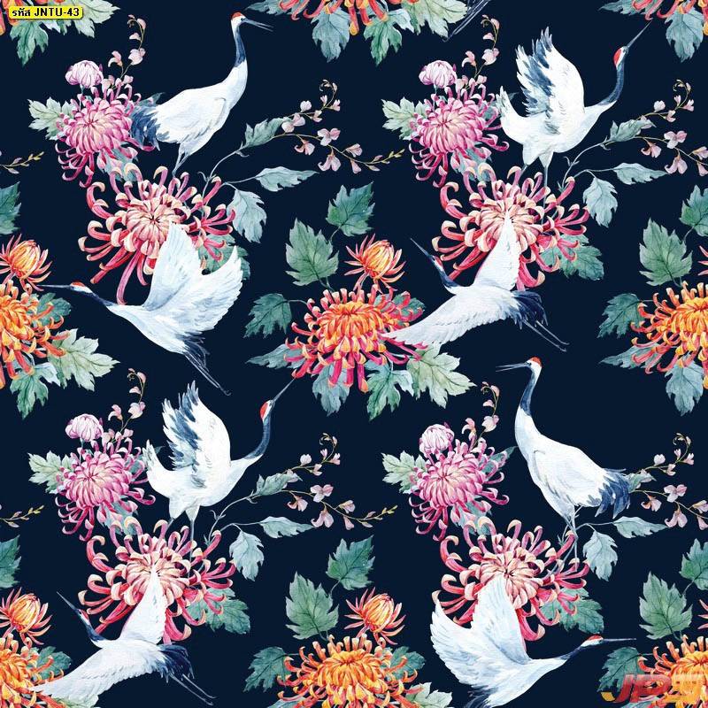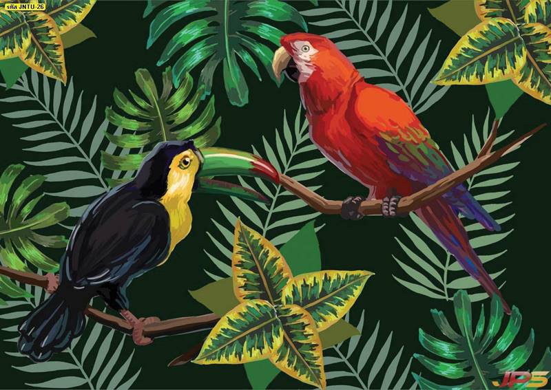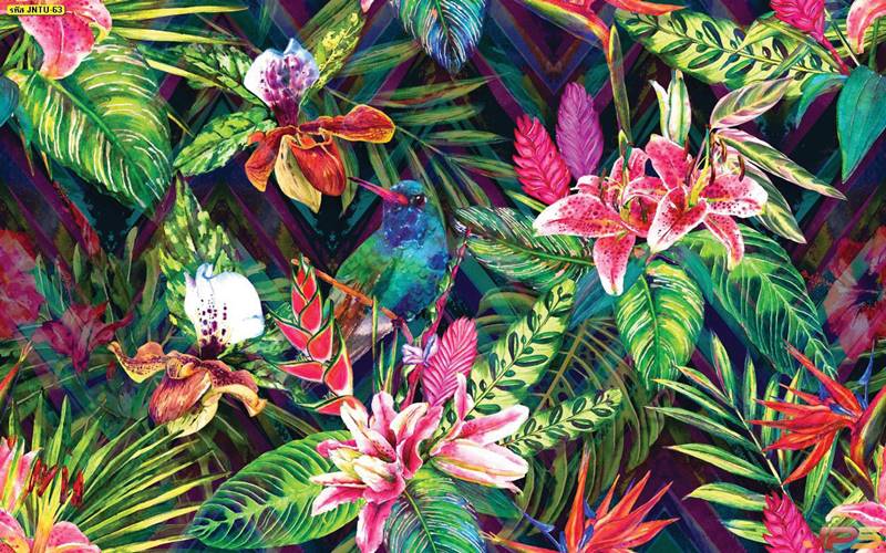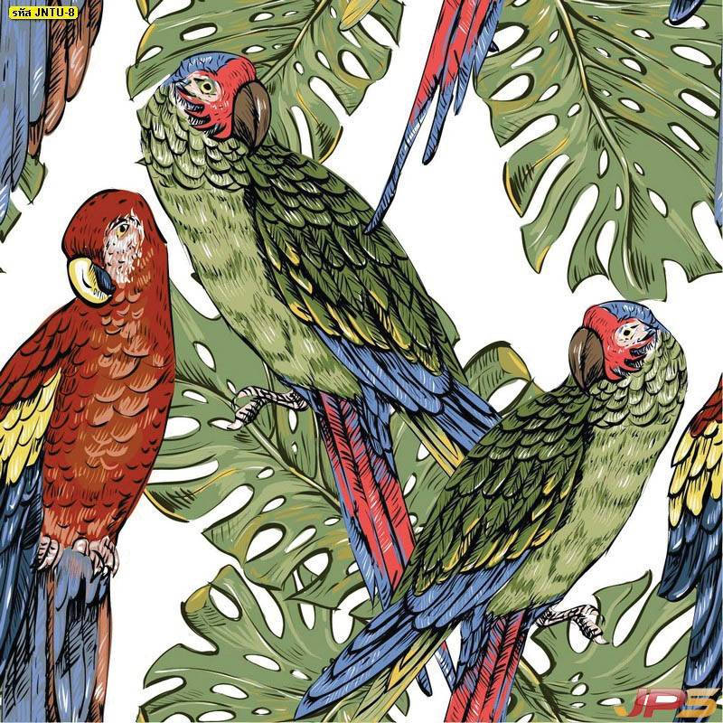 ลายสวนป่า ภาพติดผนัง นกฟลามิงโก ป่าไม้ ลายสัตว์ นกแก้ว นก หงษ์ นกยูง ใบไม้…