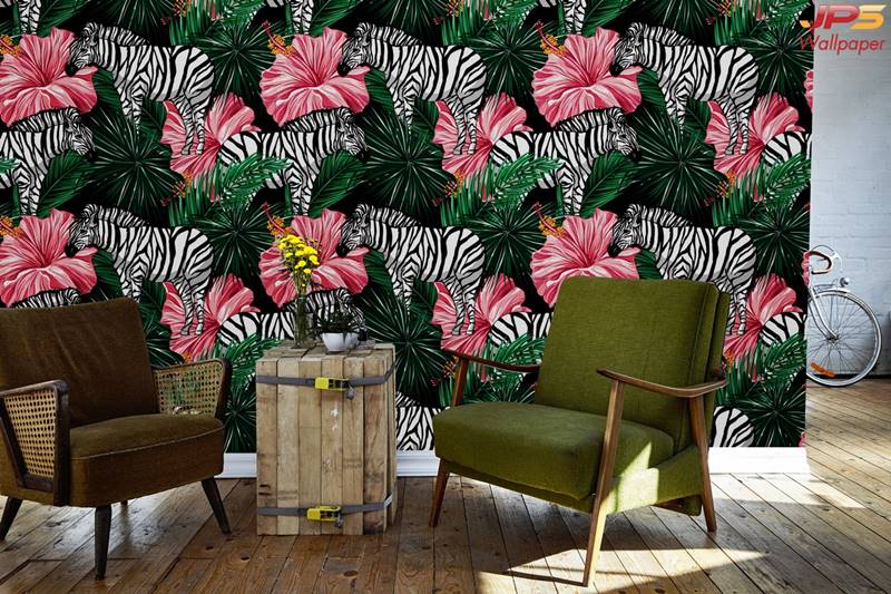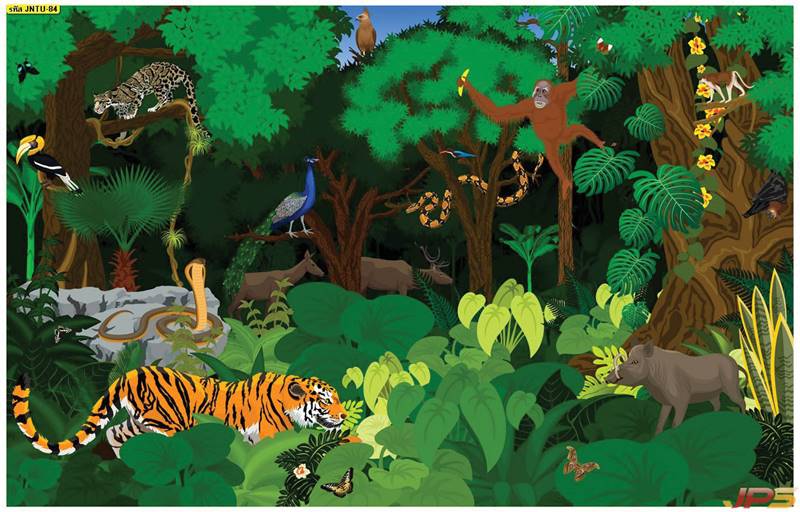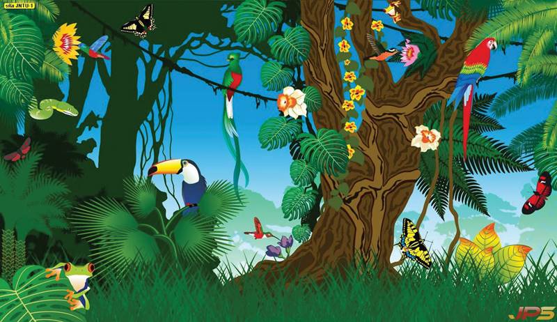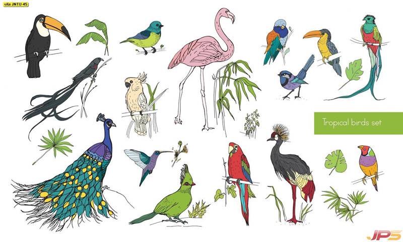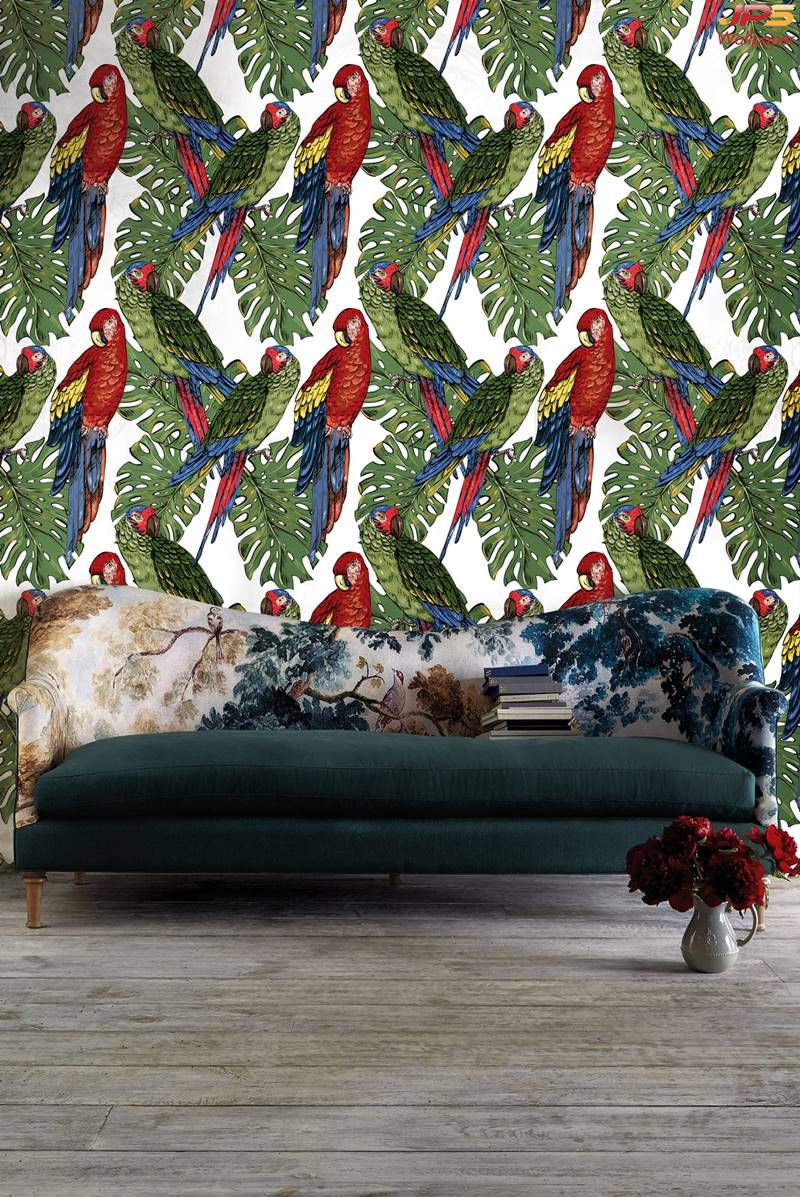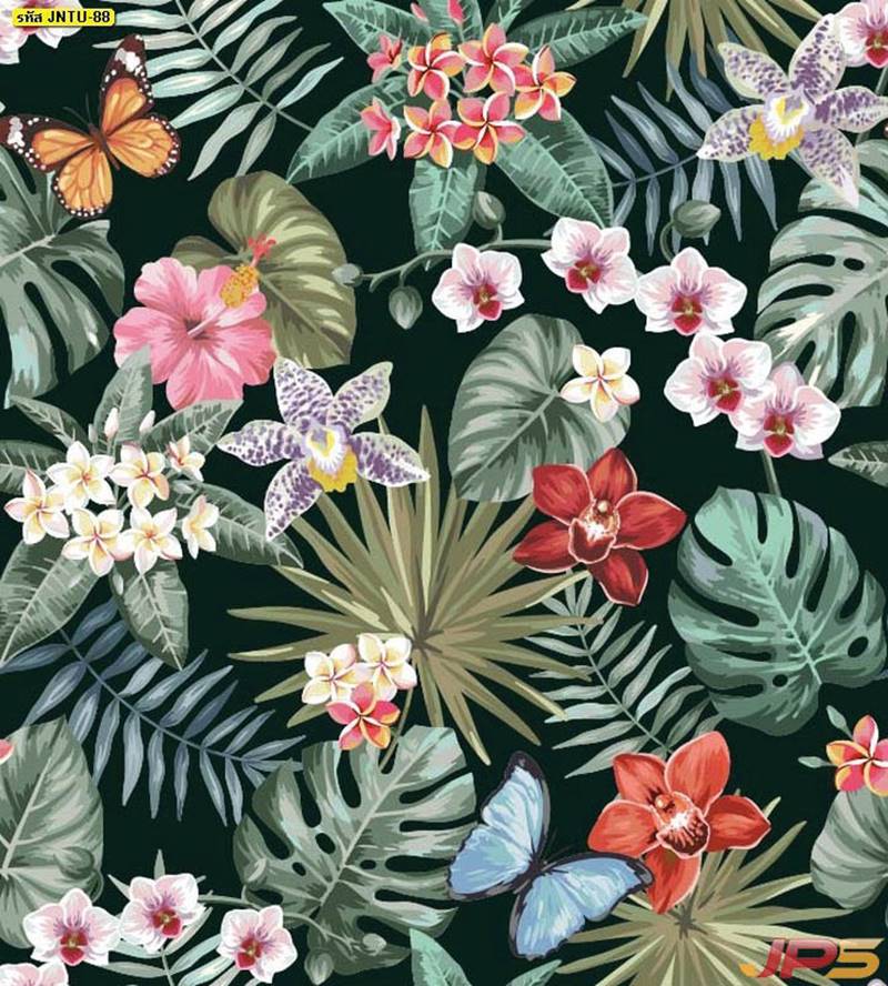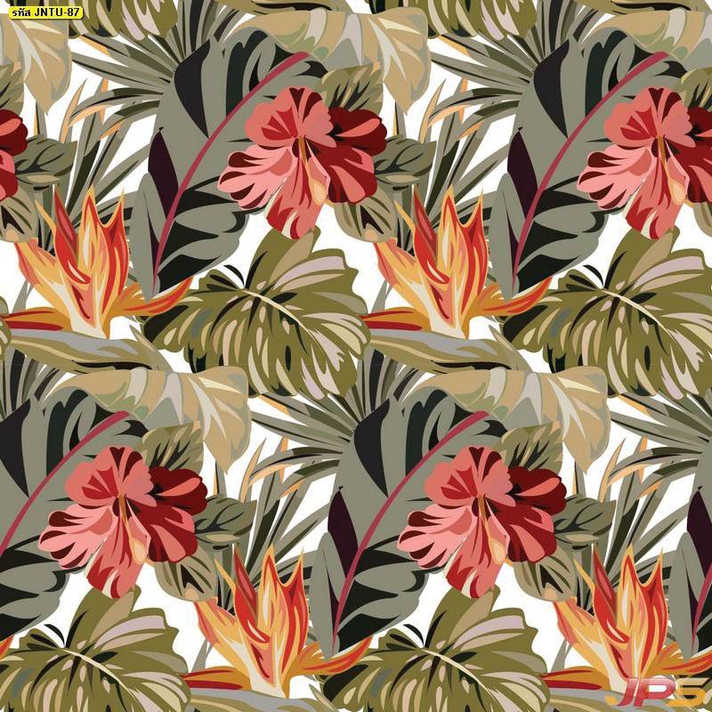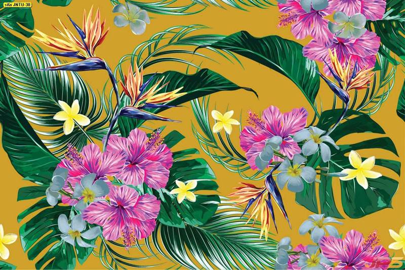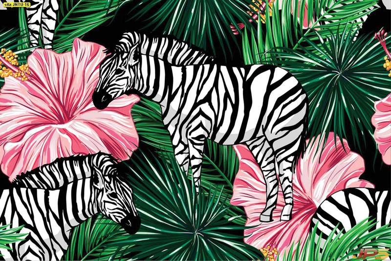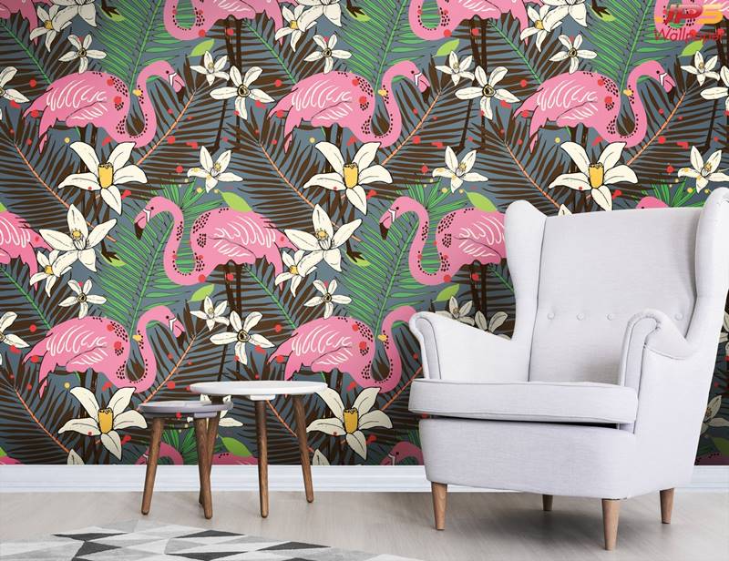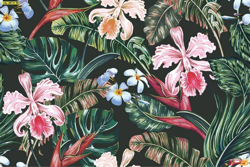 ลายสวนป่า ภาพติดผนัง นกฟลามิงโก ป่าไม้ ลายสัตว์ นกแก้ว นก หงษ์ นกยูง ใบไม้…