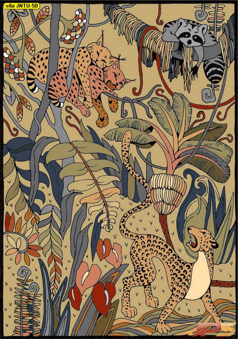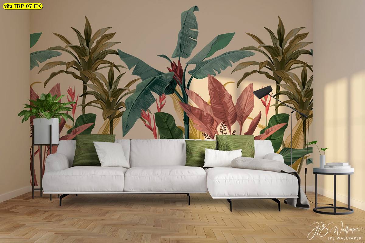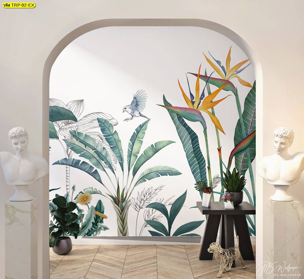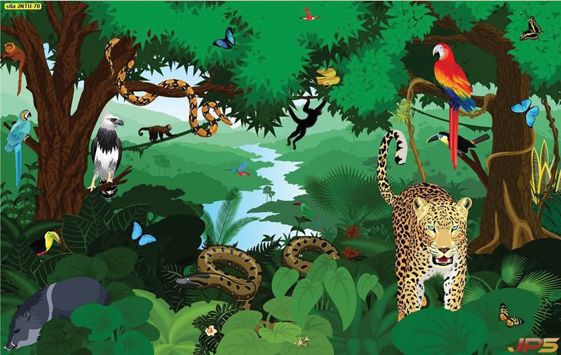 ลายสวนป่า ภาพติดผนัง นกฟลามิงโก ป่าไม้ ลายสัตว์ นกแก้ว นก หงษ์ นกยูง ใบไม้ สวนป่า ภาพวาดสวนป่า