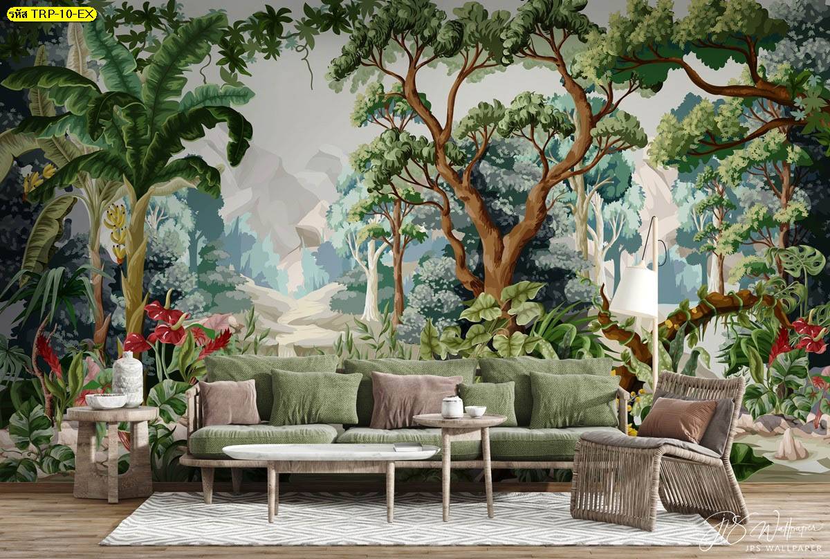 ลายสวนป่า ภาพติดผนัง ป่าไม้ ใบไม้ สวนป่า ภาพวาดสวนป่า กรุผนัง ลายกรุผนัง ยุโรป ภาพสไตล์ยุโรป…