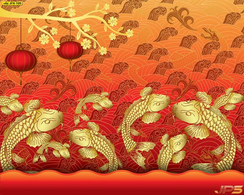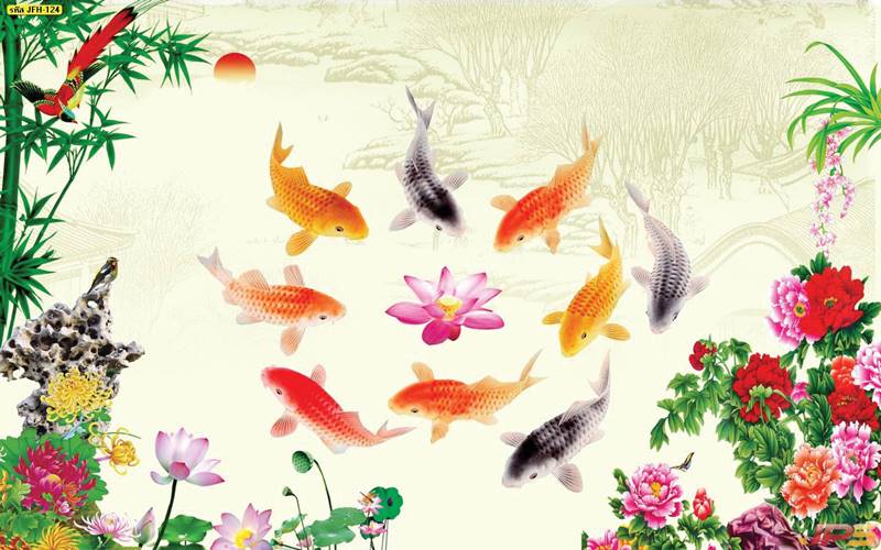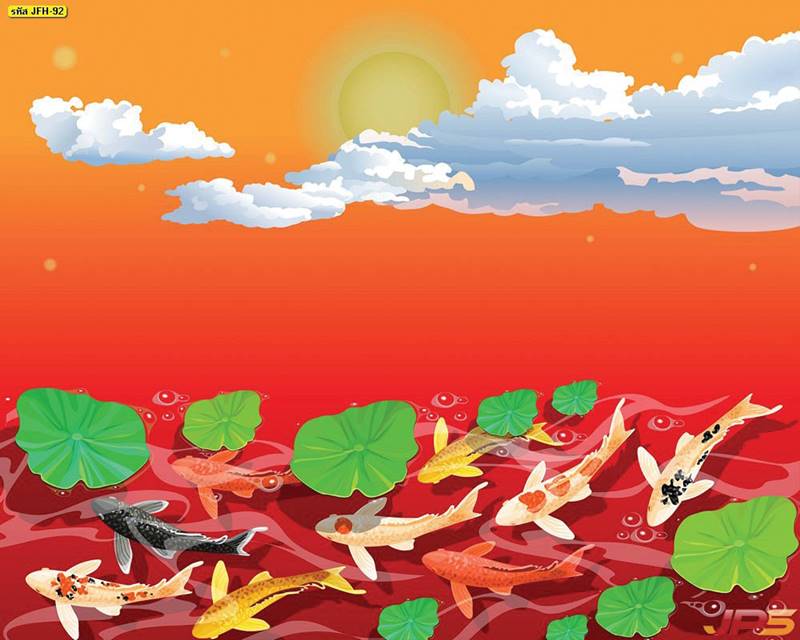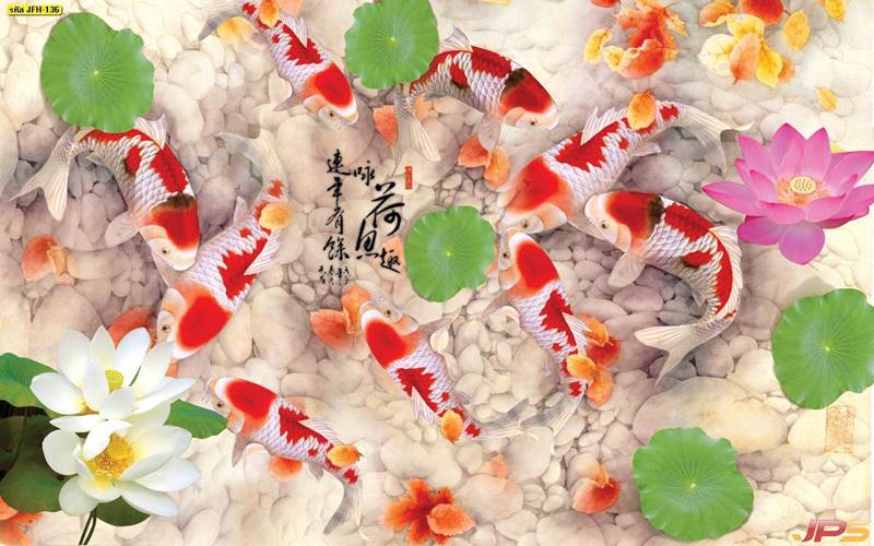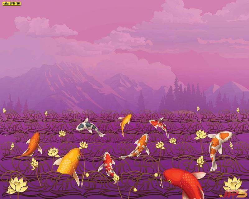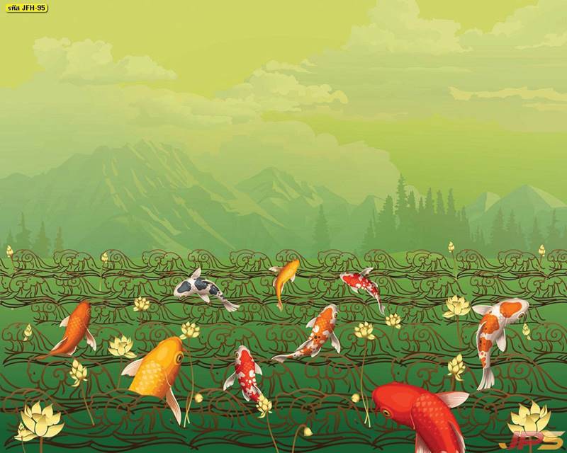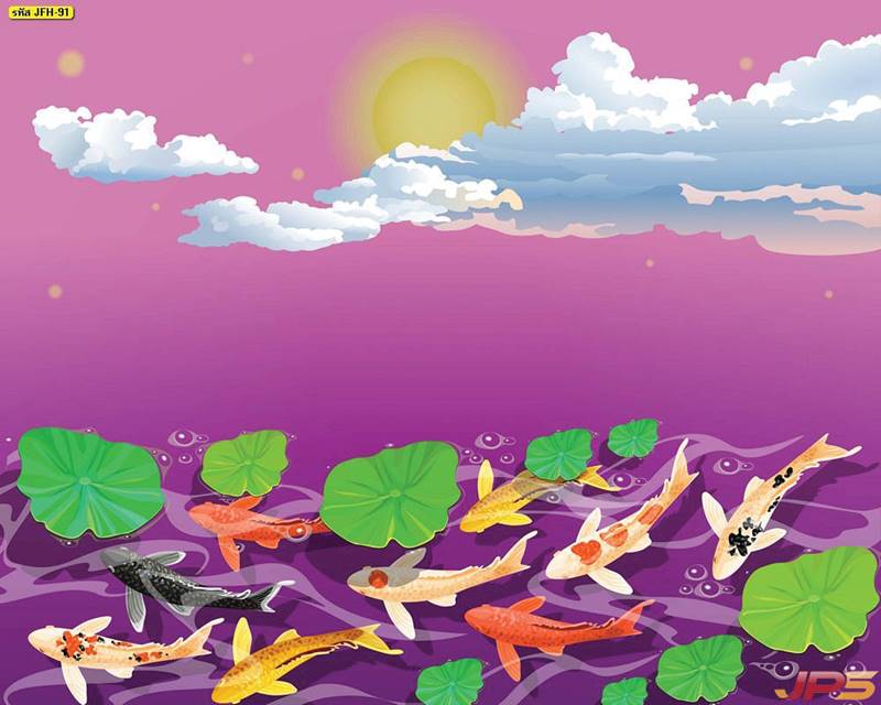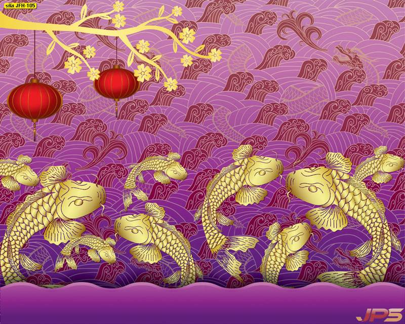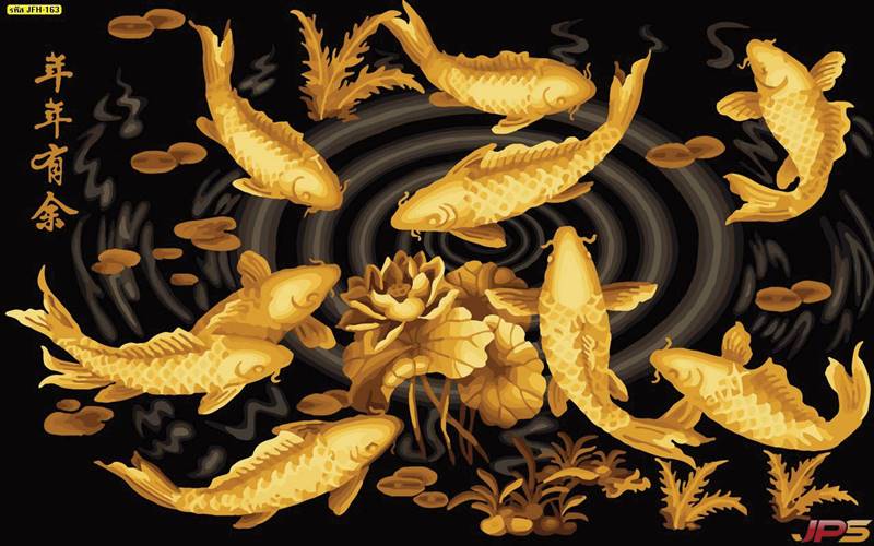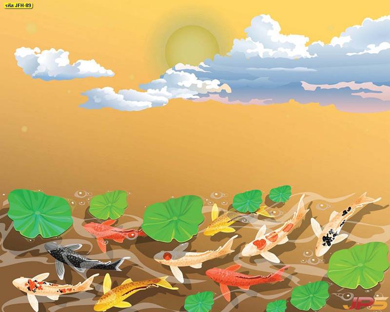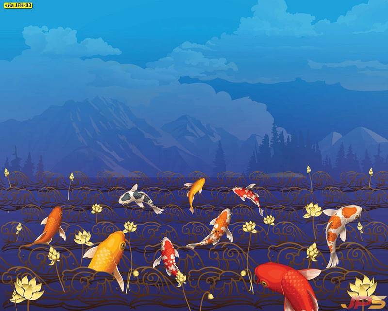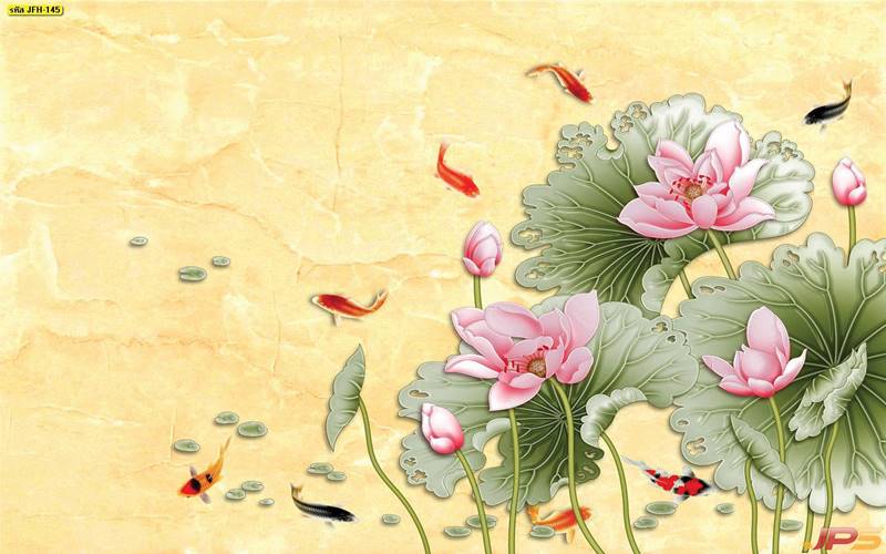 ลายปลาคราฟ ลายดอกบัว ปลา ลายสีทอง ลายฮวงจุ้ย ภาพพิมพ์ฮวงจุ้ย วอลเปเปอร์ฮวงจุ้ย สีทอง ปลาสีทอง ญี่ปุ่น ภาพวาดปลาคราฟ ภาพวาด
