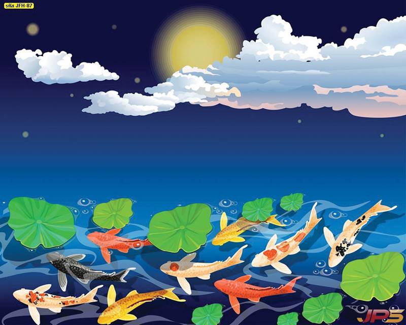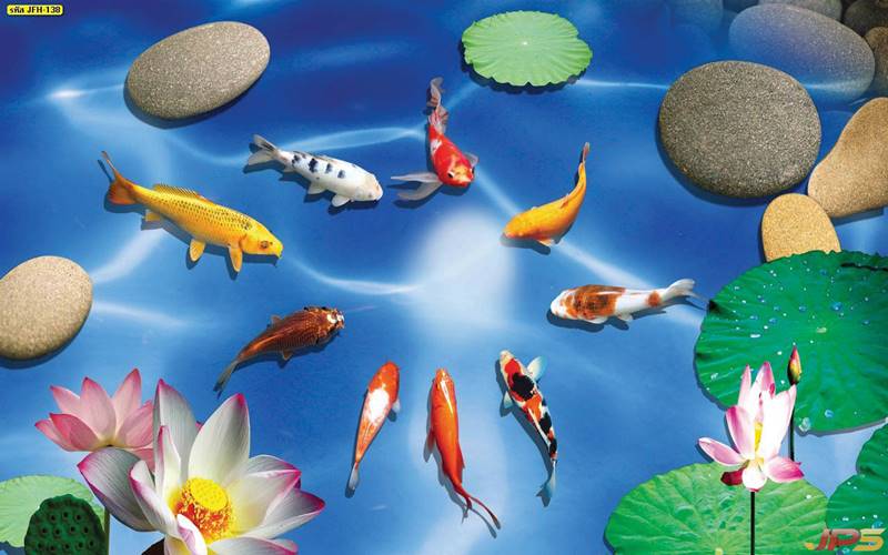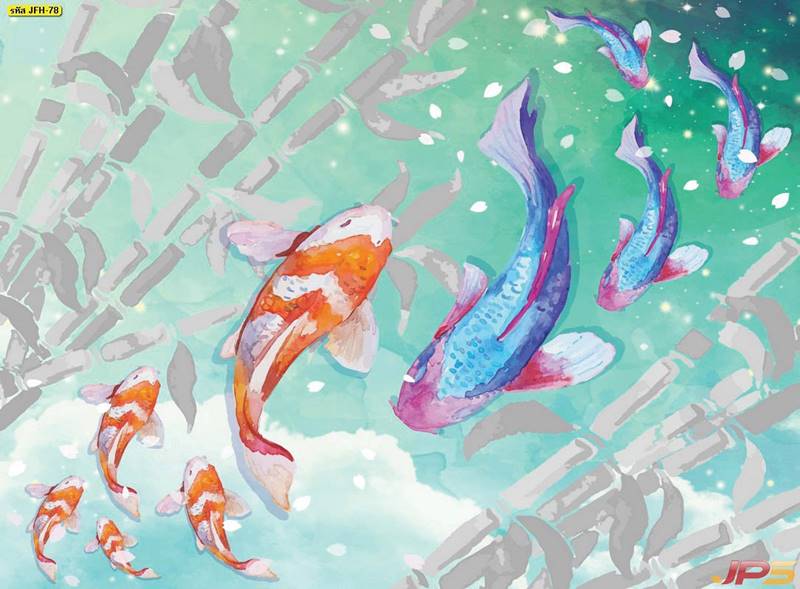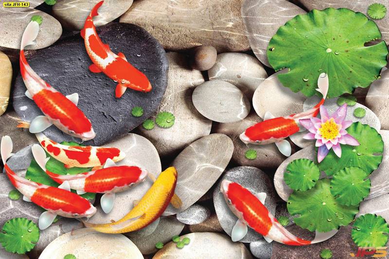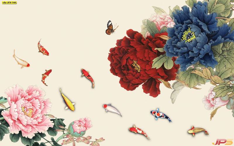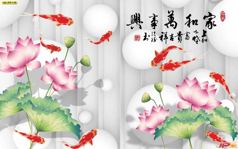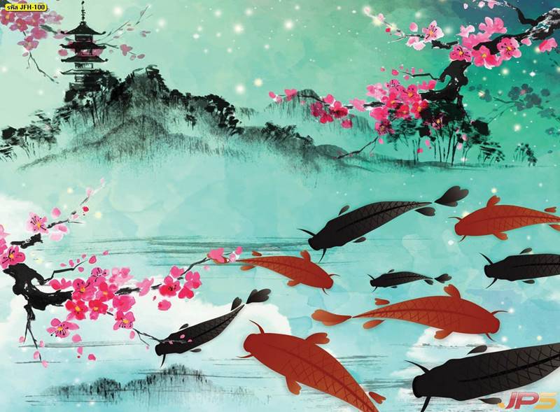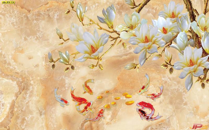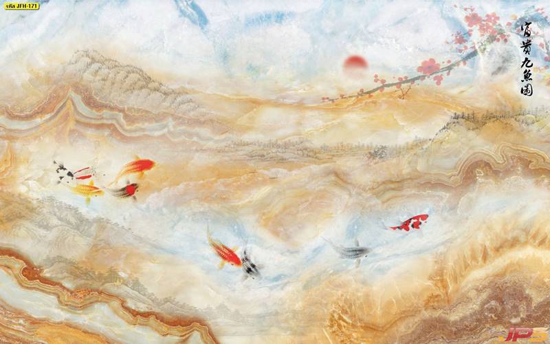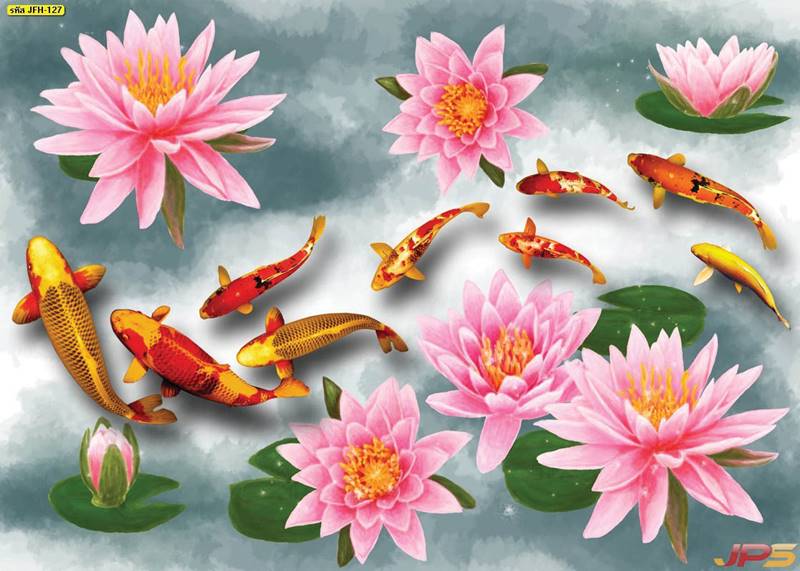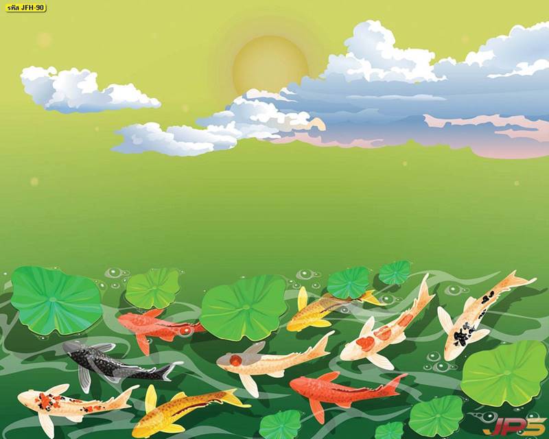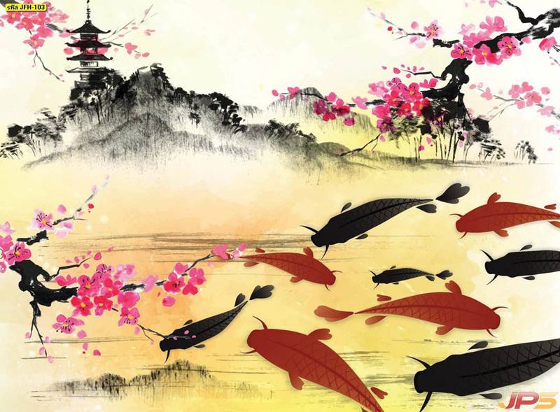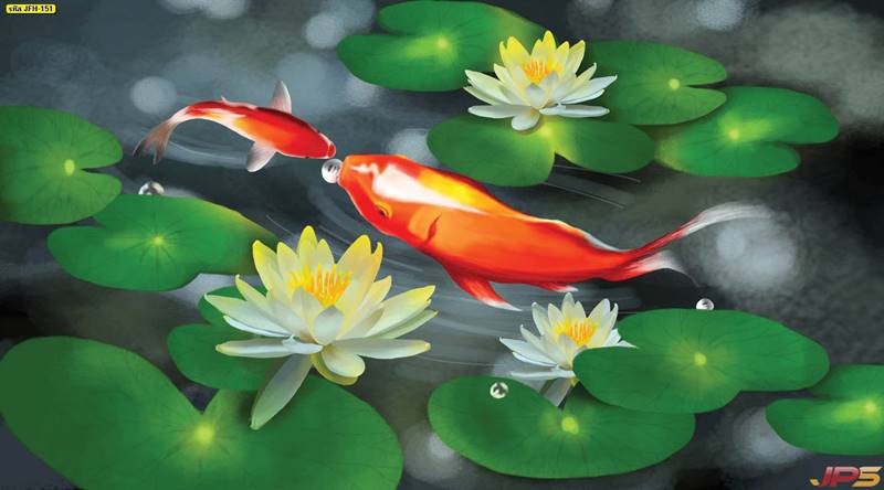 ลายปลาคราฟ ลายดอกบัว ปลา ลายสีทอง ลายฮวงจุ้ย ภาพพิมพ์ฮวงจุ้ย วอลเปเปอร์ฮวงจุ้ย สีทอง ปลาสีทอง ญี่ปุ่น ภาพวาดปลาคราฟ ภาพวาด