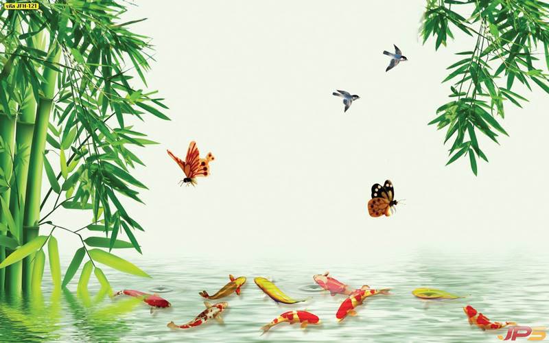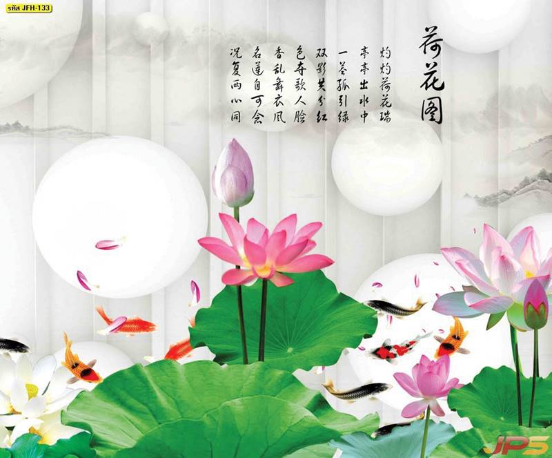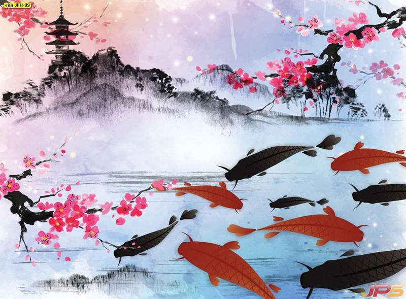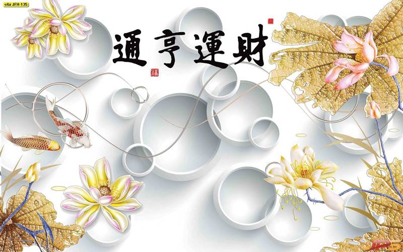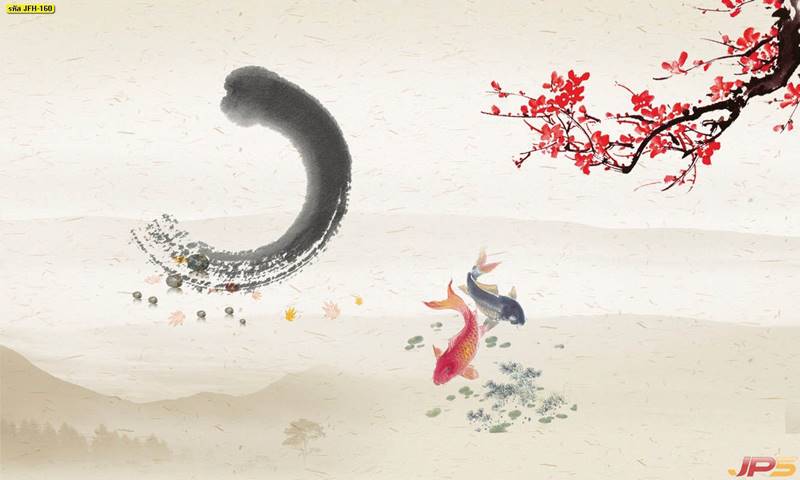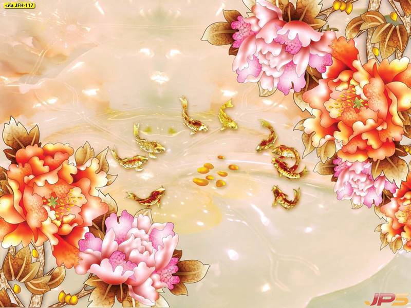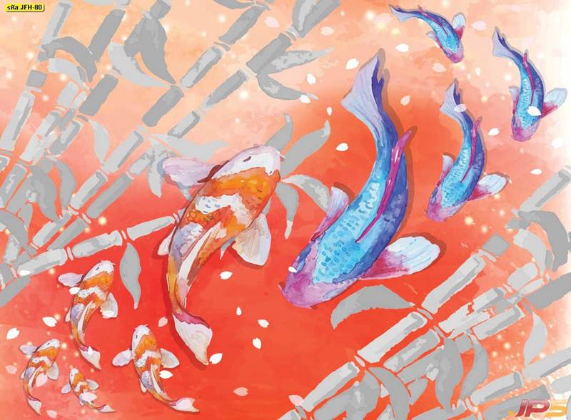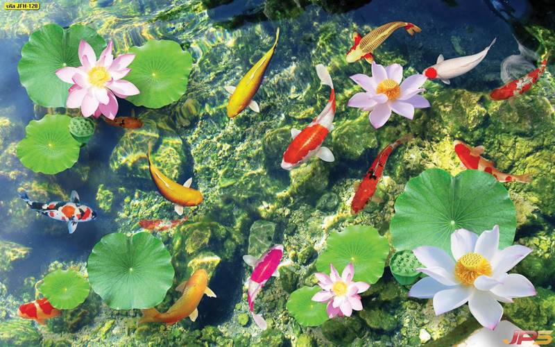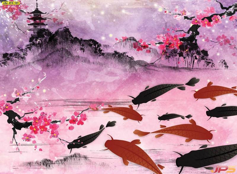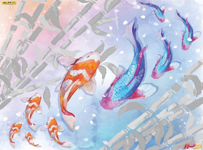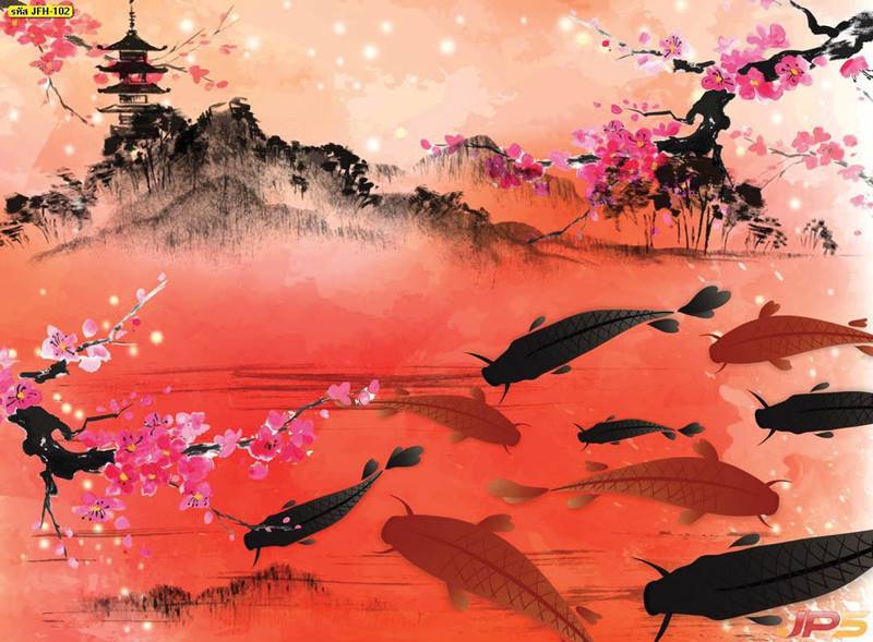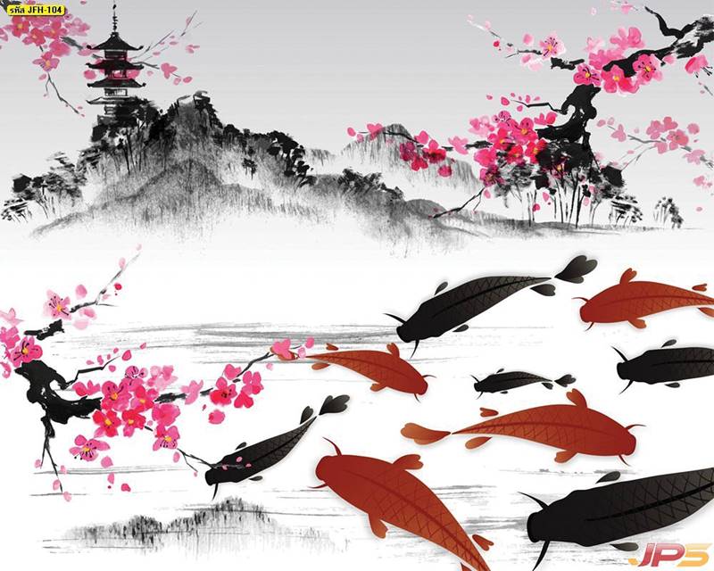 ลายปลาคราฟ ลายดอกบัว ปลา ลายสีทอง ลายฮวงจุ้ย ภาพพิมพ์ฮวงจุ้ย วอลเปเปอร์ฮวงจุ้ย สีทอง ปลาสีทอง ญี่ปุ่น ภาพวาดปลาคราฟ ภาพวาด