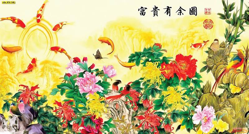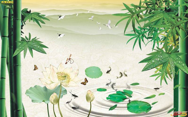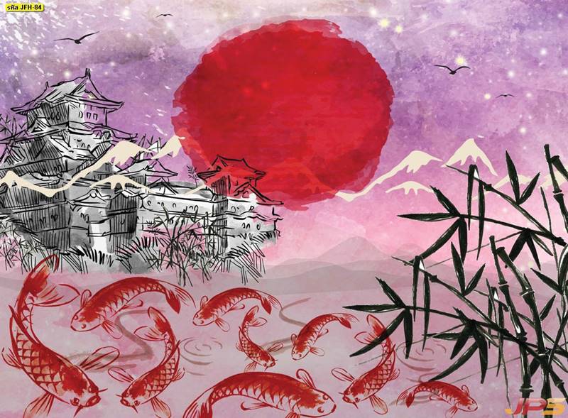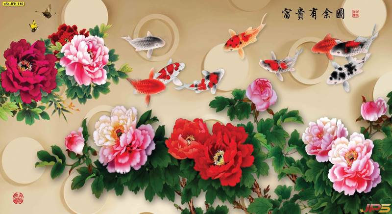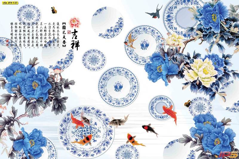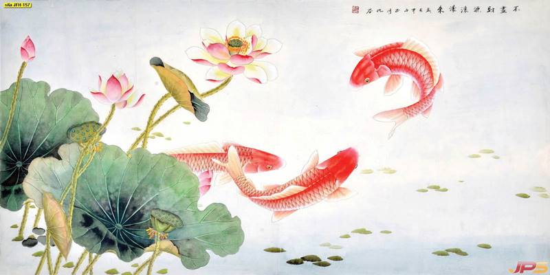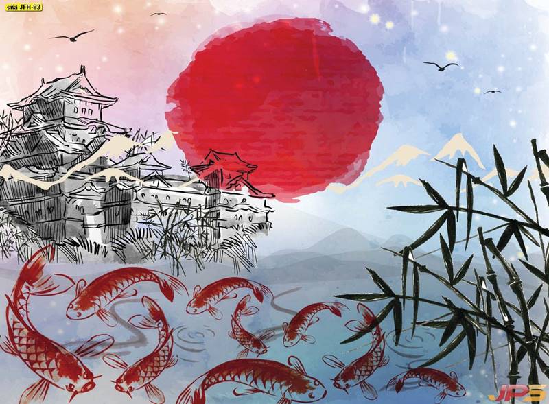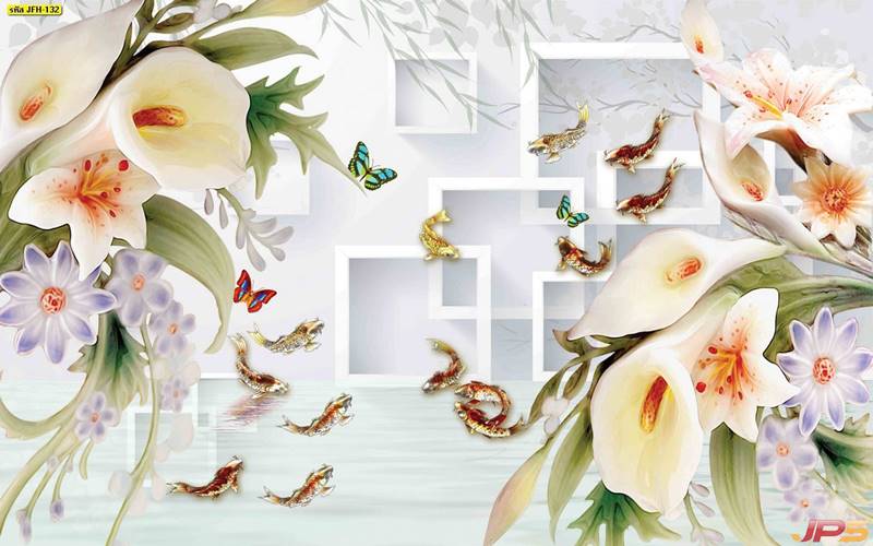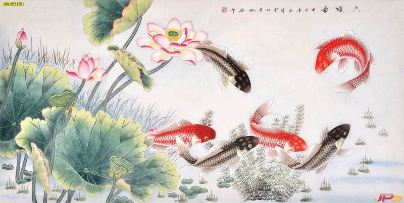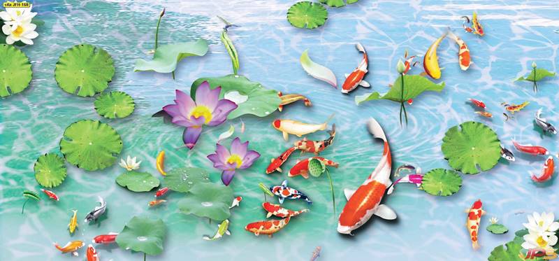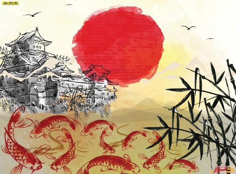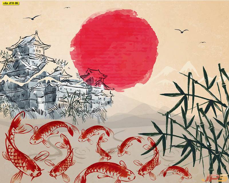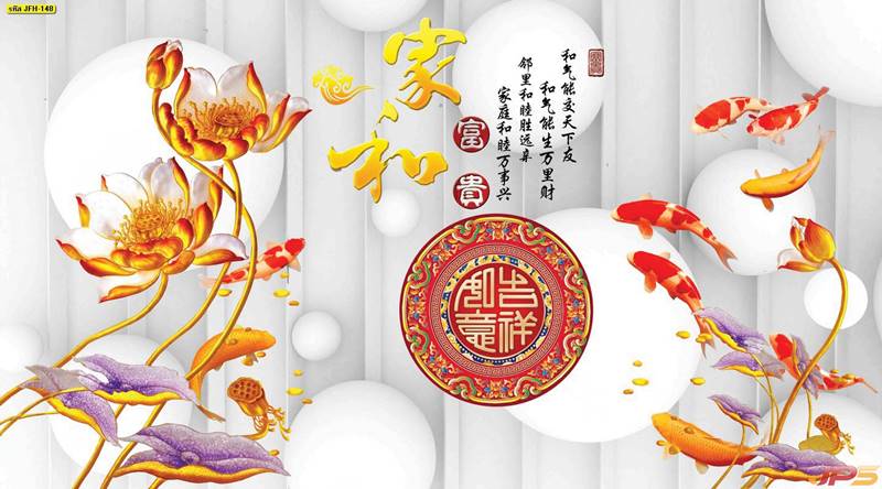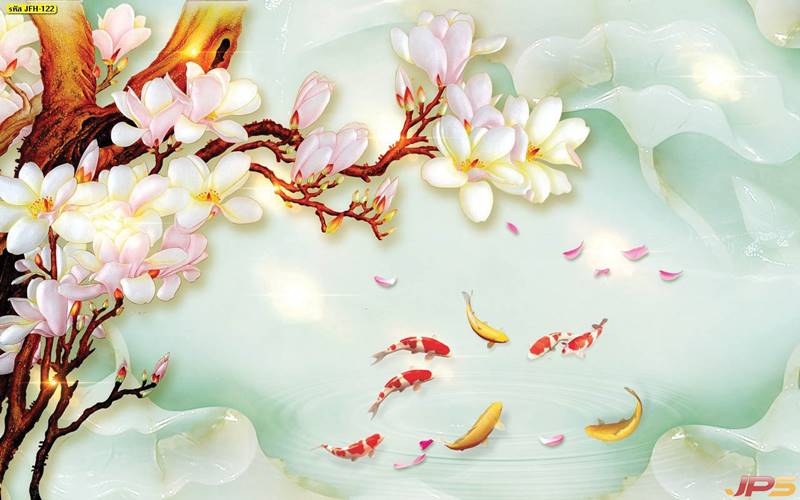 ลายปลาคราฟ ลายดอกบัว ปลา ลายสีทอง ลายฮวงจุ้ย ภาพพิมพ์ฮวงจุ้ย วอลเปเปอร์ฮวงจุ้ย สีทอง ปลาสีทอง ญี่ปุ่น ภาพวาดปลาคราฟ ภาพวาด