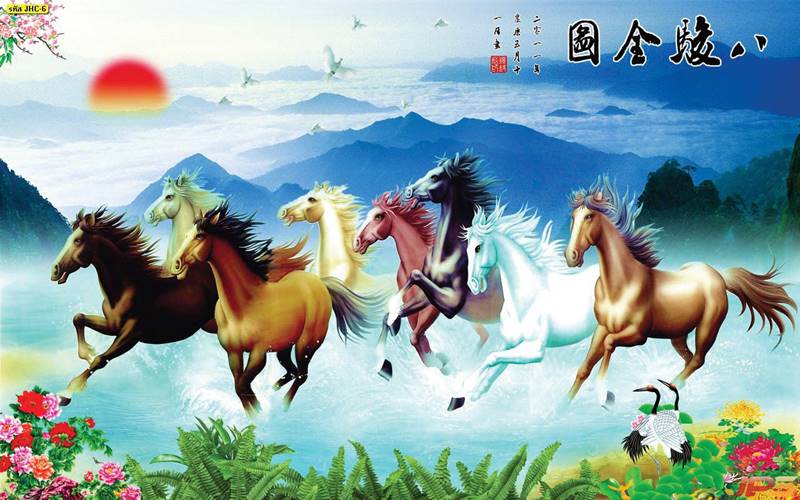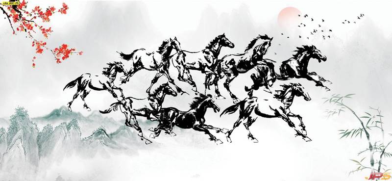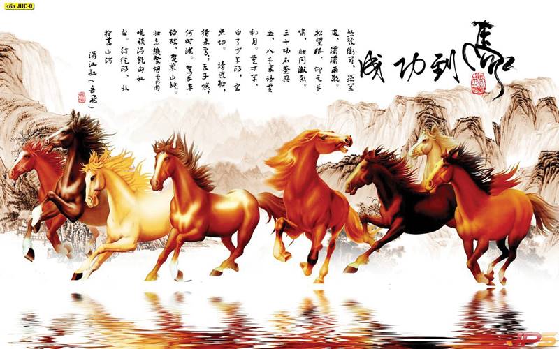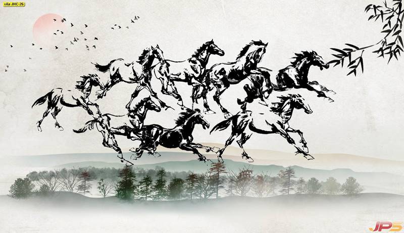 ม้า ม้ามงคล ฝูงม้า ภาพวาดม้า ม้าจีน ฮวงจุ้ย ลายม้า ภาพวาด