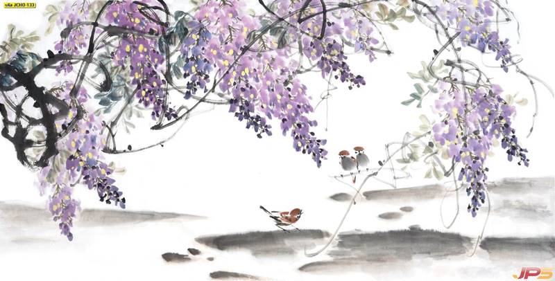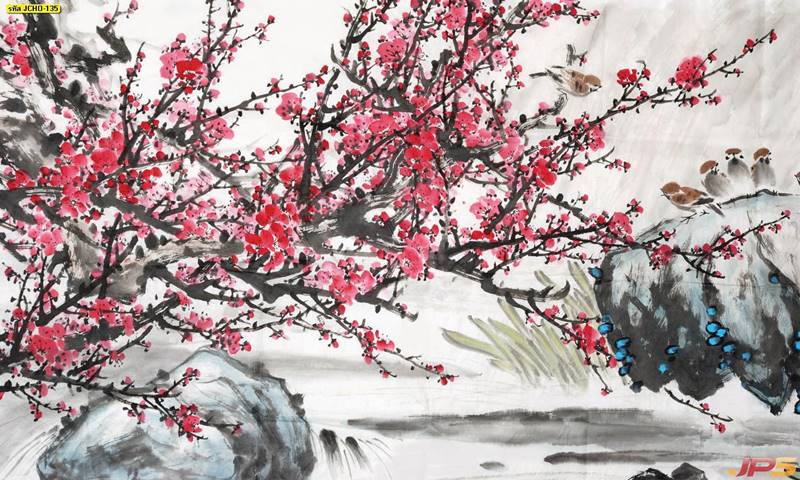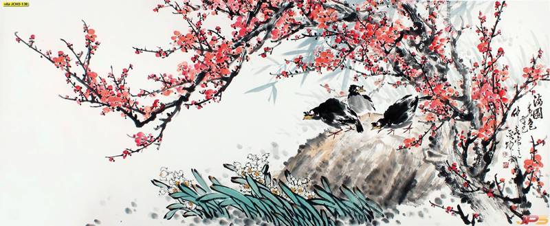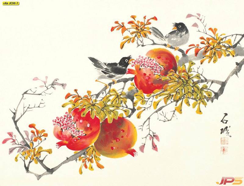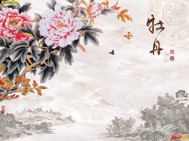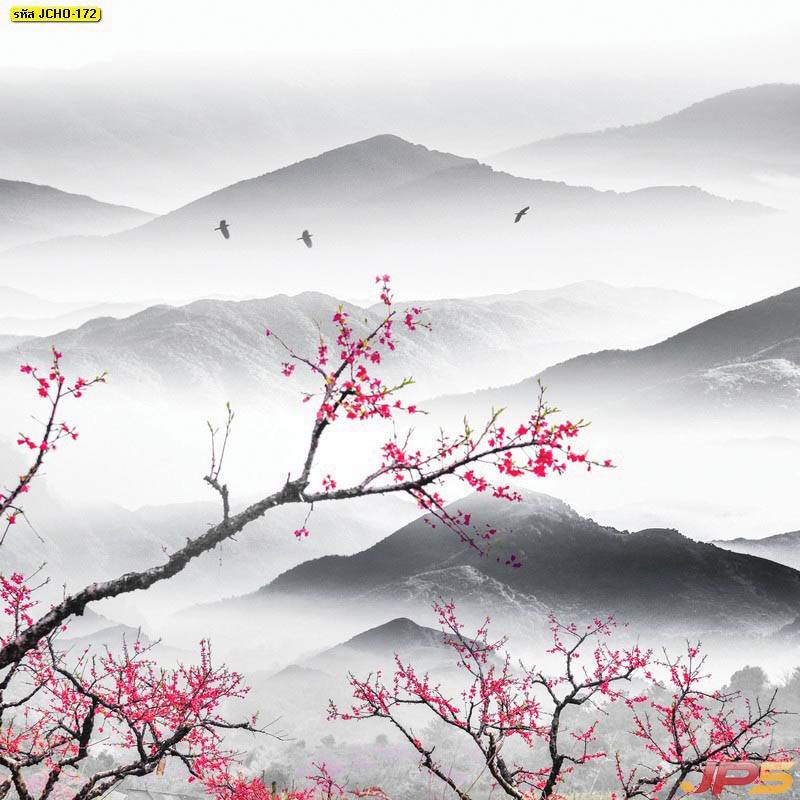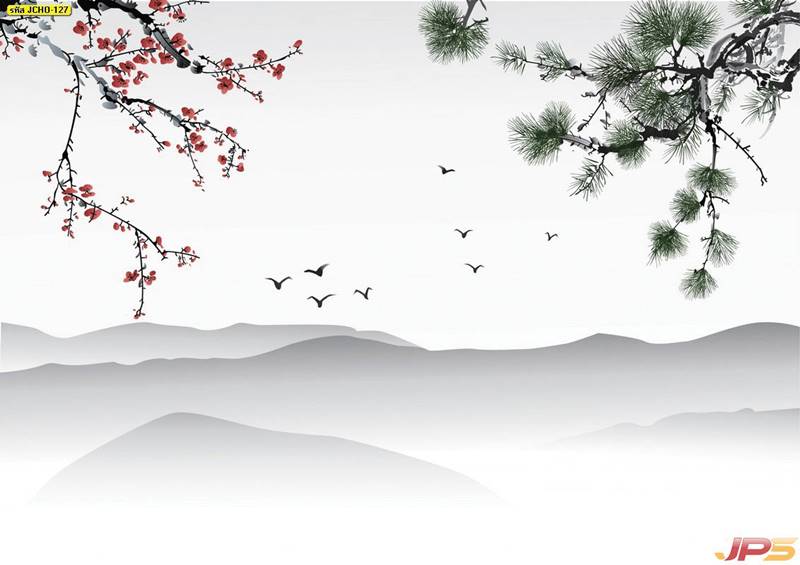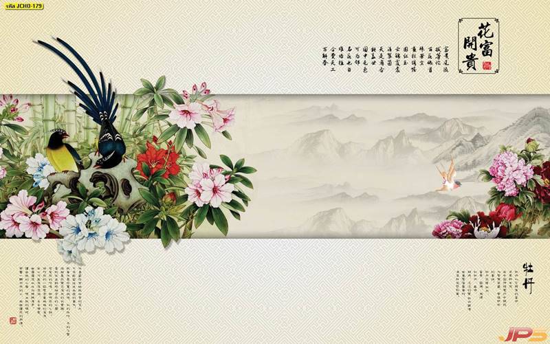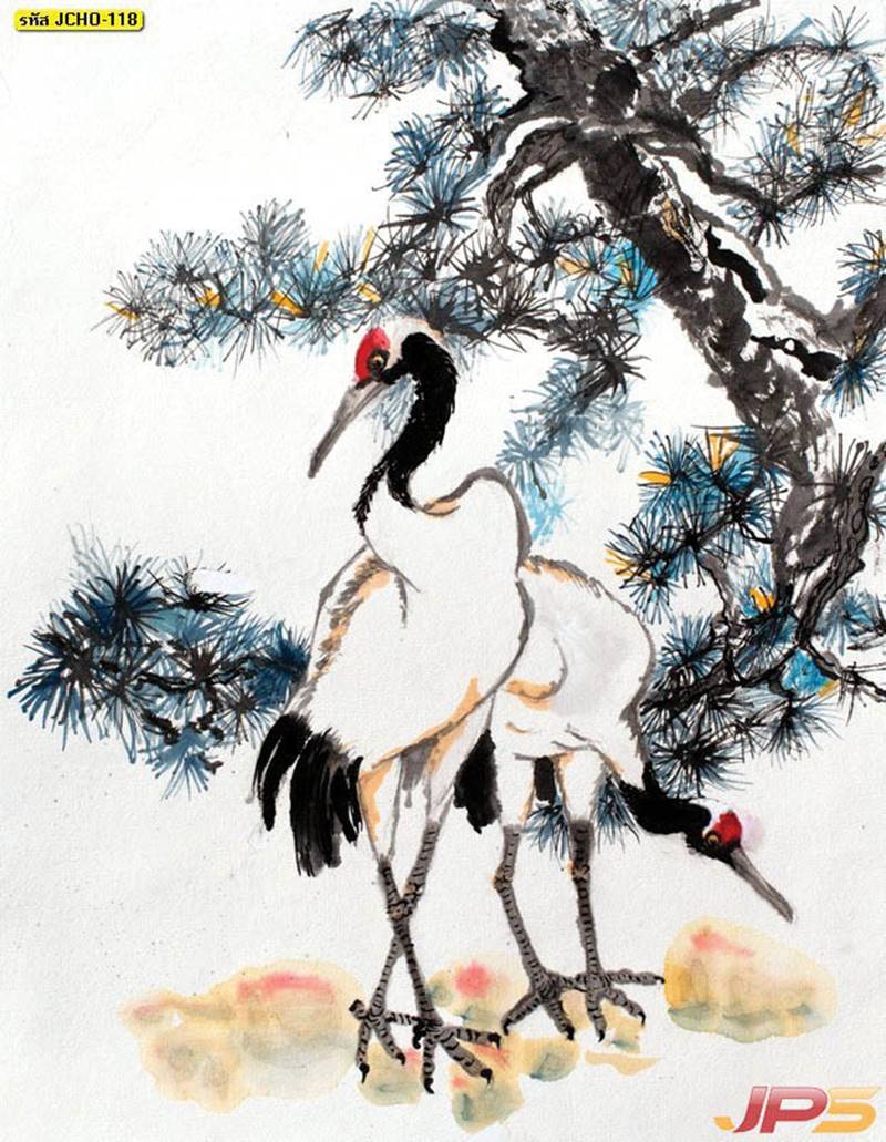 ภูเขา ฮวงจุ้ย กวาง จีน คนจีน ภาพวาด หินอ่อน สีทอง หรูหรา นกกระเรียน
