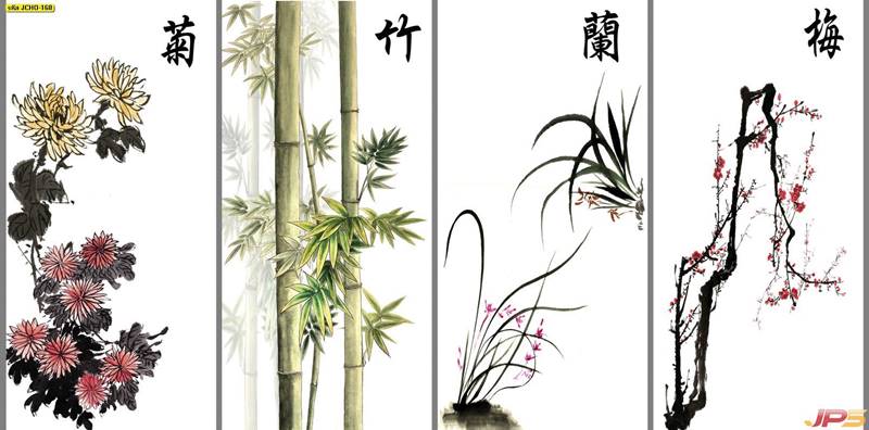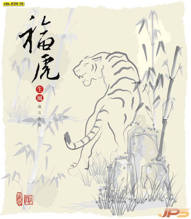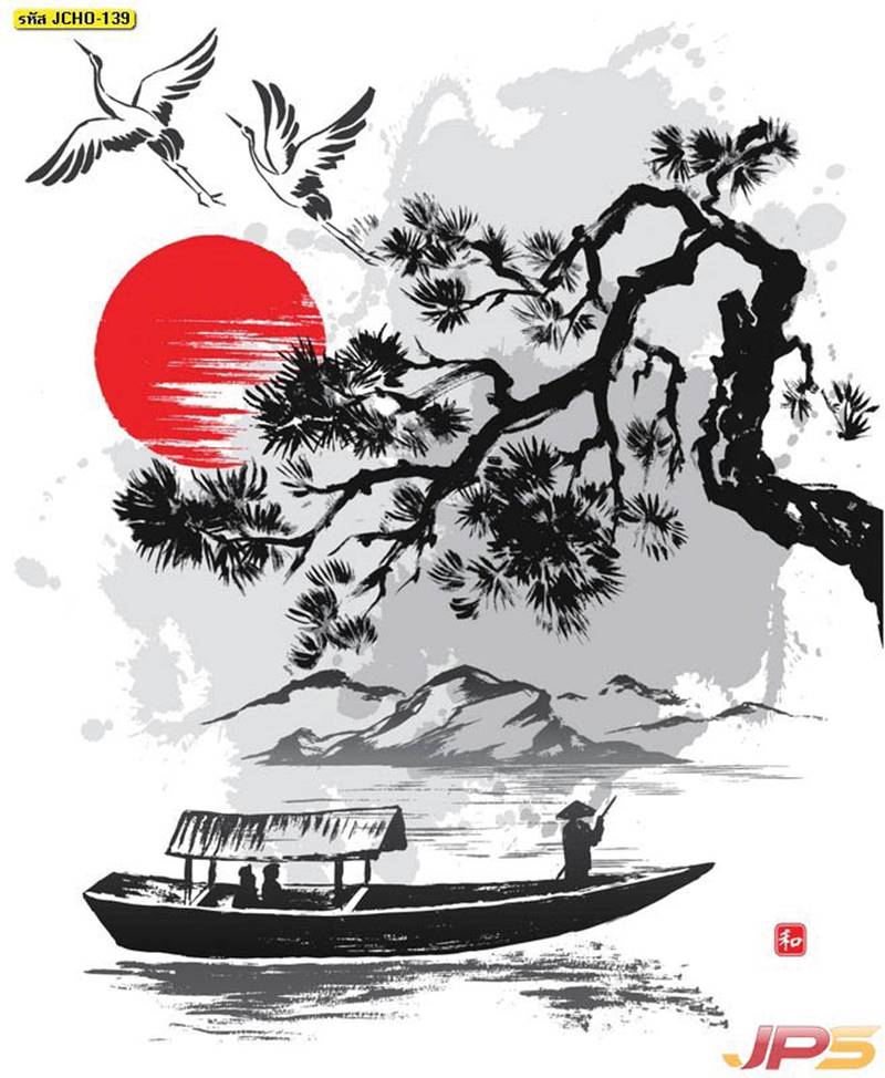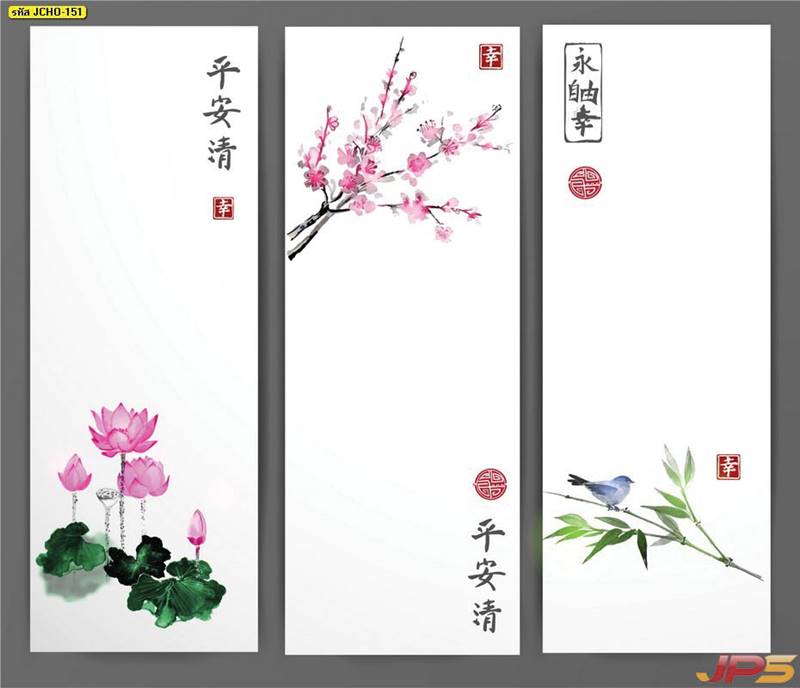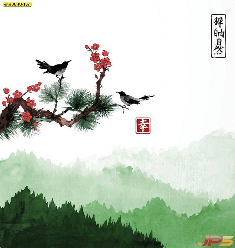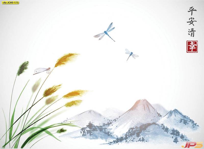 ภาพพิมพ์เสริมฮวงจุ้ย ลายภูเขาและกวาง (52 แบบ)