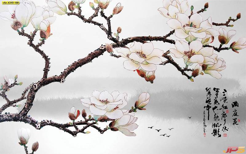ภูเขา ดอกไม้ ต้นไม้ สามมิติ 3D ฮวงจุ้ย แกะสลัก สีทอง หรูหรา