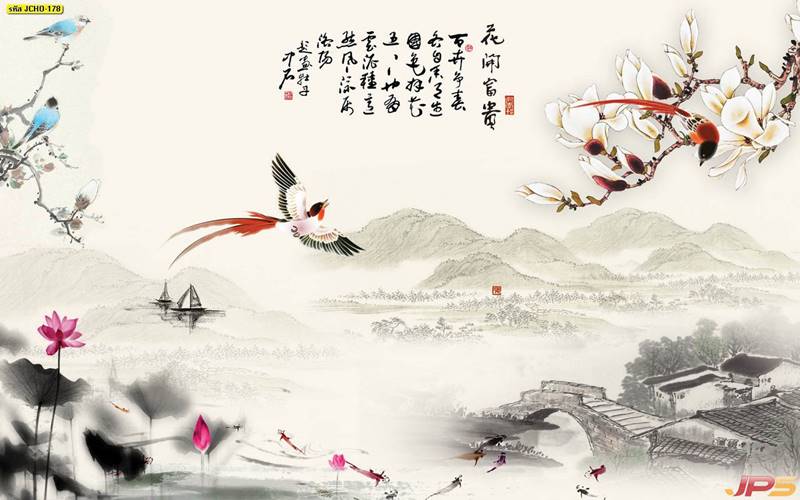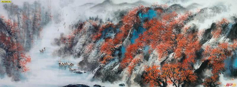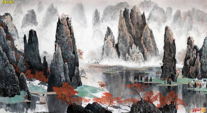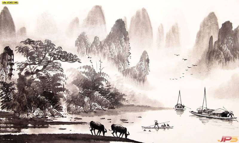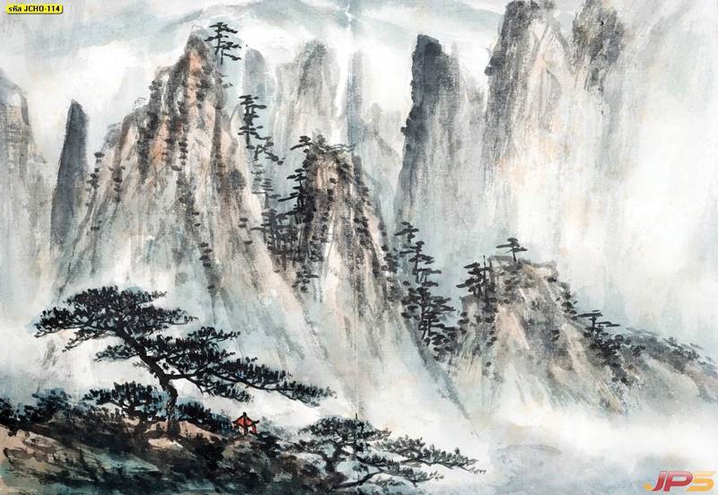 จีน ภาพเขียน ภาพเขียนจีน ภาพวาดจีน ภาพวาด ภูเขาจีน ลายจีน