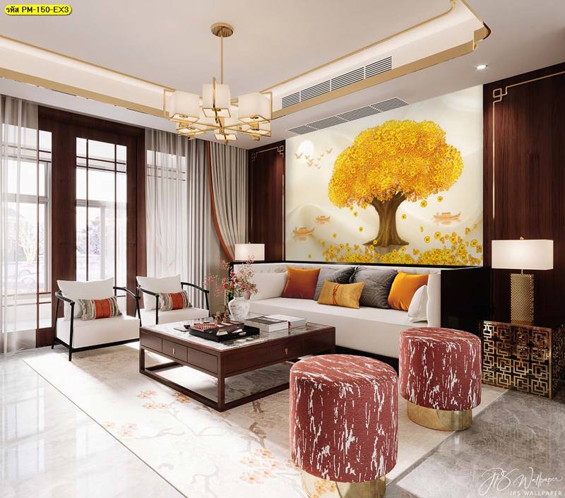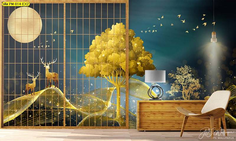 ฮวงจุ้ย นกยูง ลายพรีเมี่ยม premium ลายกวาง กวางทอง นกยูงทอง สีทอง ต้นไม้สีทอง ลายฮวงจุ้ย นกอินทรีย์ ลายนกอินทรีย์