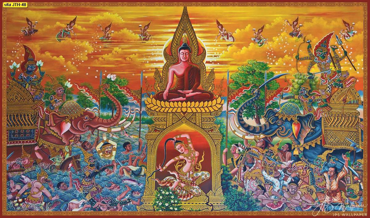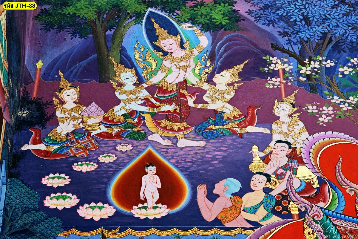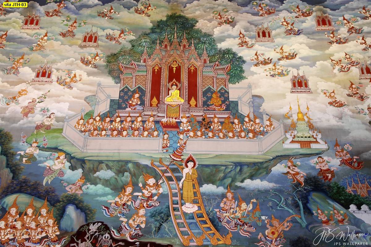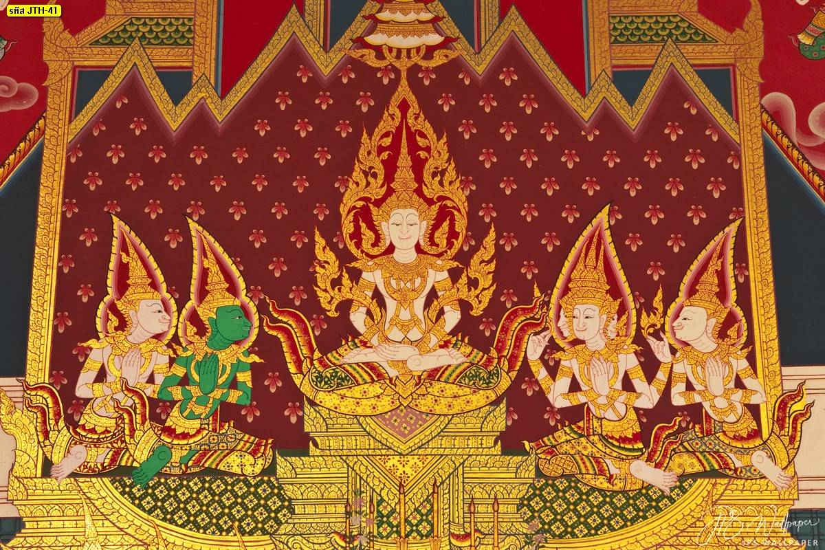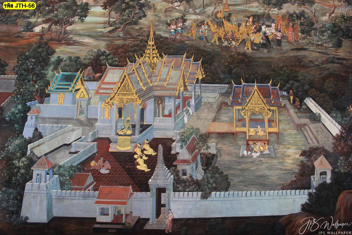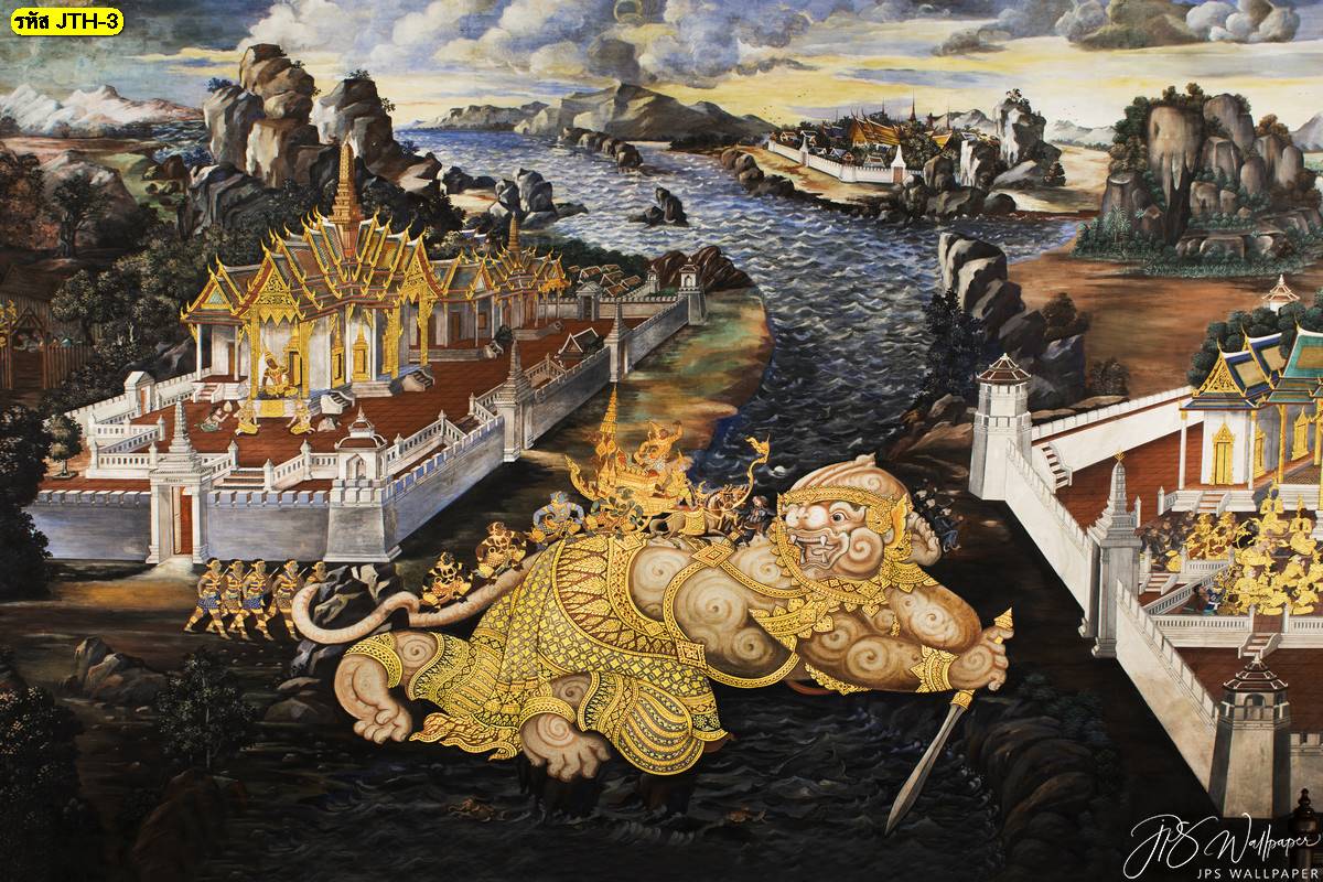 ลายจิตกรรมฝาผนัง จิตกรรมฝาผนัง ภาพวาด พุทธประวัติ ภาพพระ พระพุทธเจ้า รามเกียรติ์ พระราม หนุมาน ห้องพระ