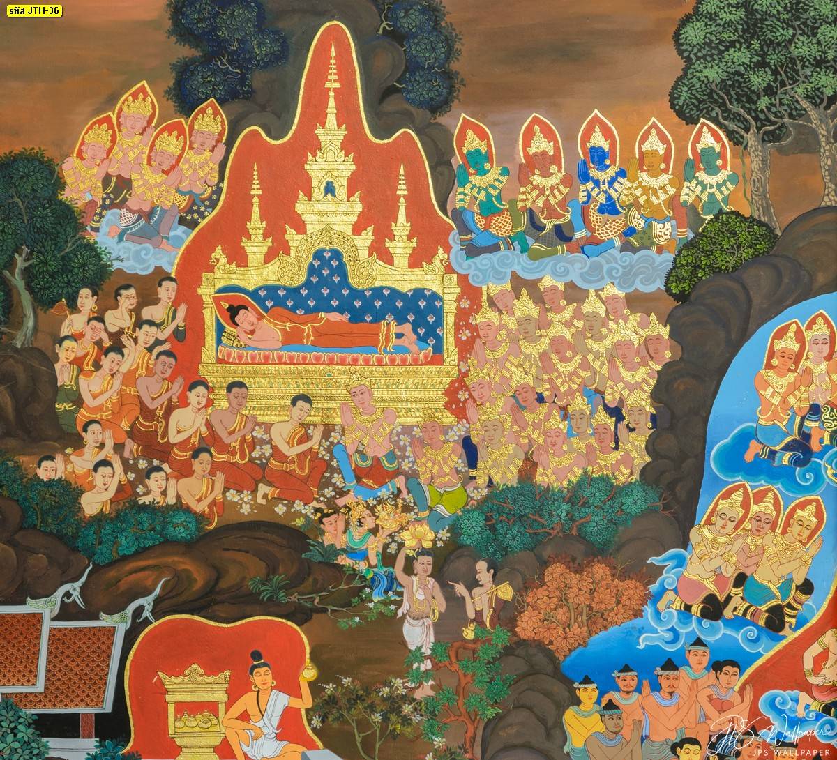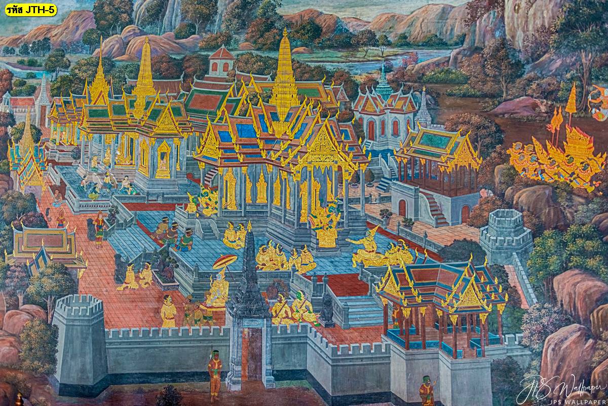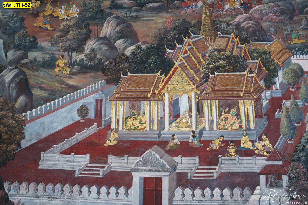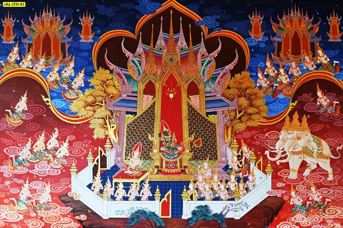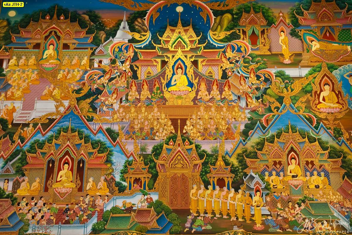 ลายจิตกรรมฝาผนัง จิตกรรมฝาผนัง ภาพวาด พุทธประวัติ ภาพพระ พระพุทธเจ้า รามเกียรติ์ พระราม หนุมาน ห้องพระ