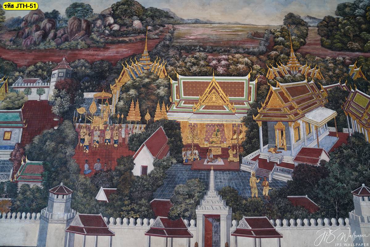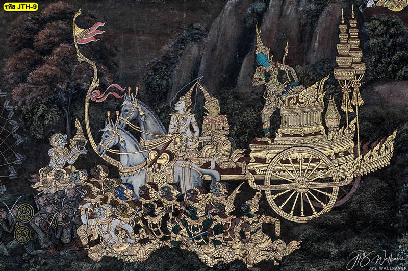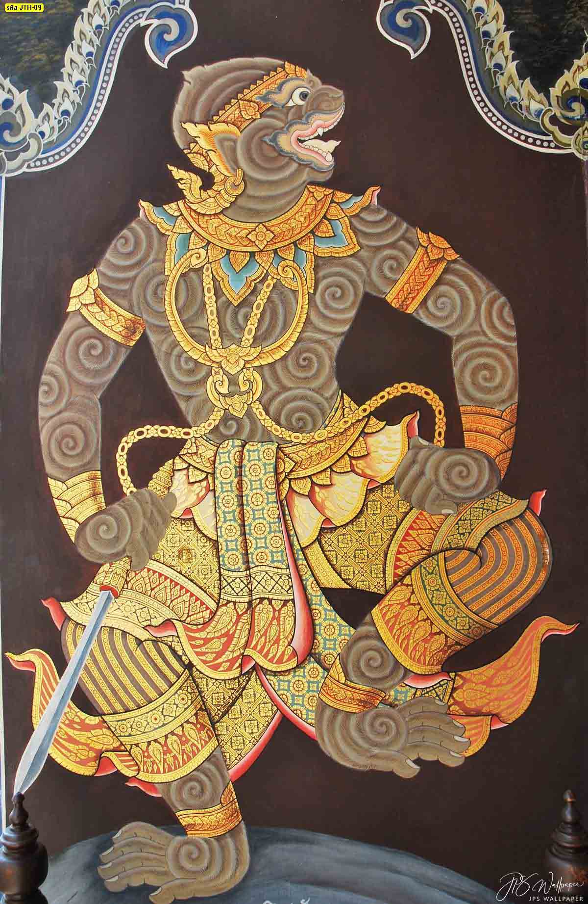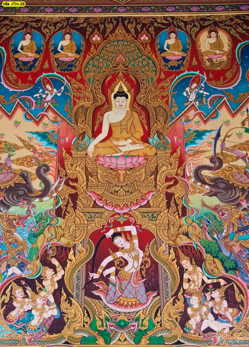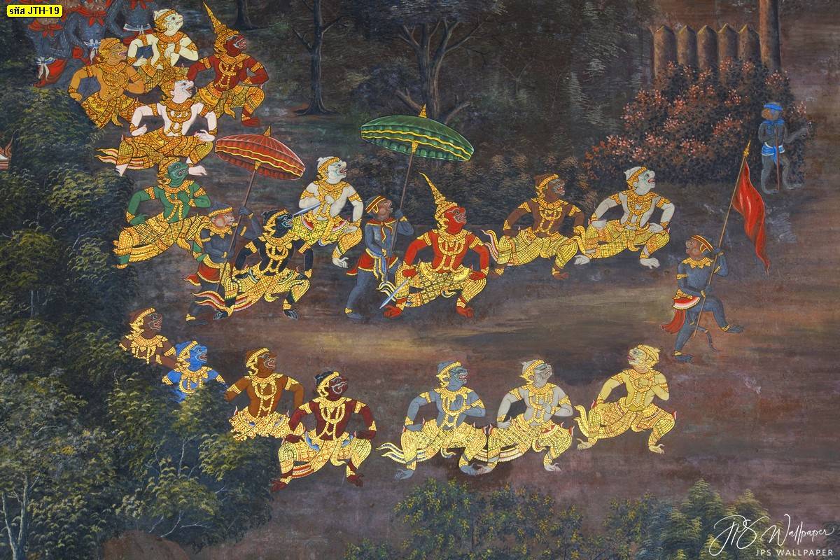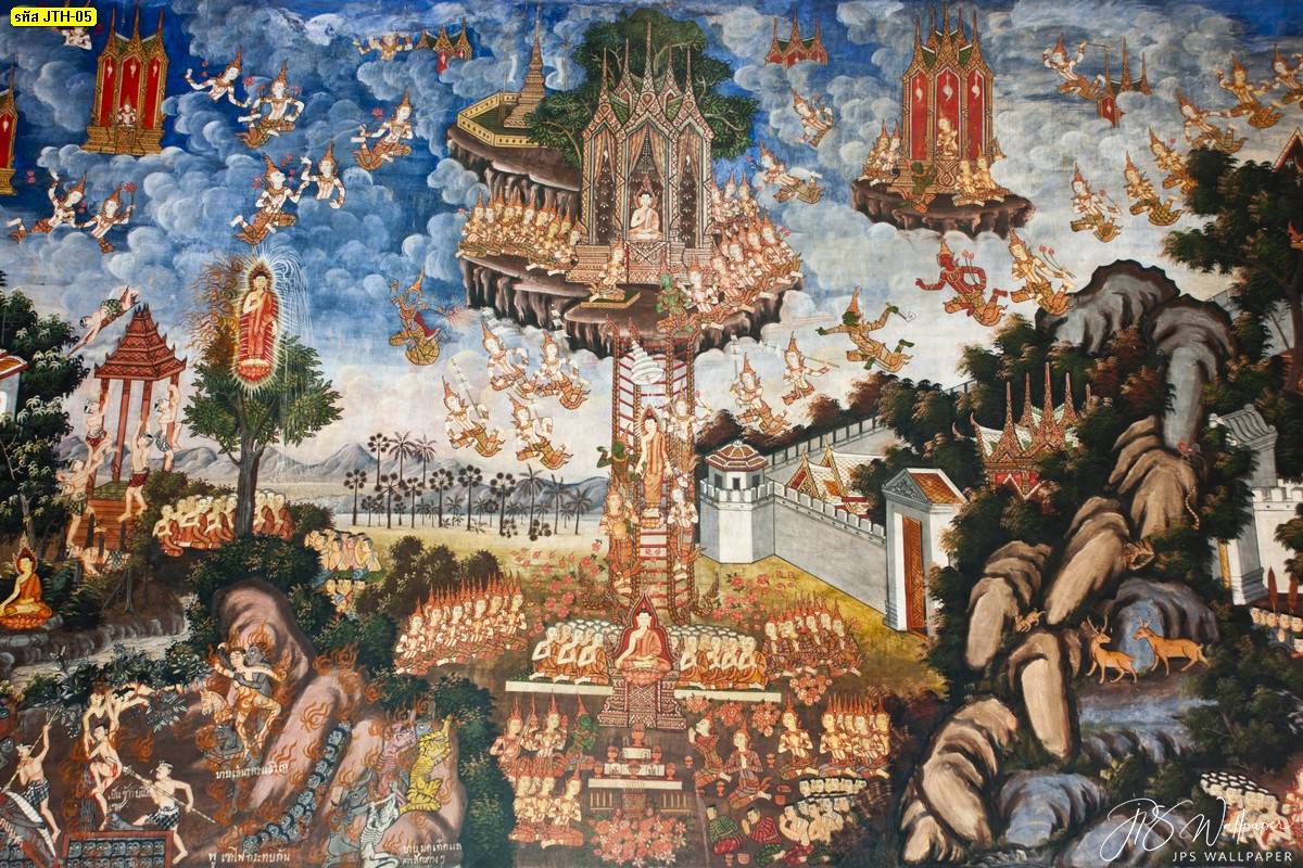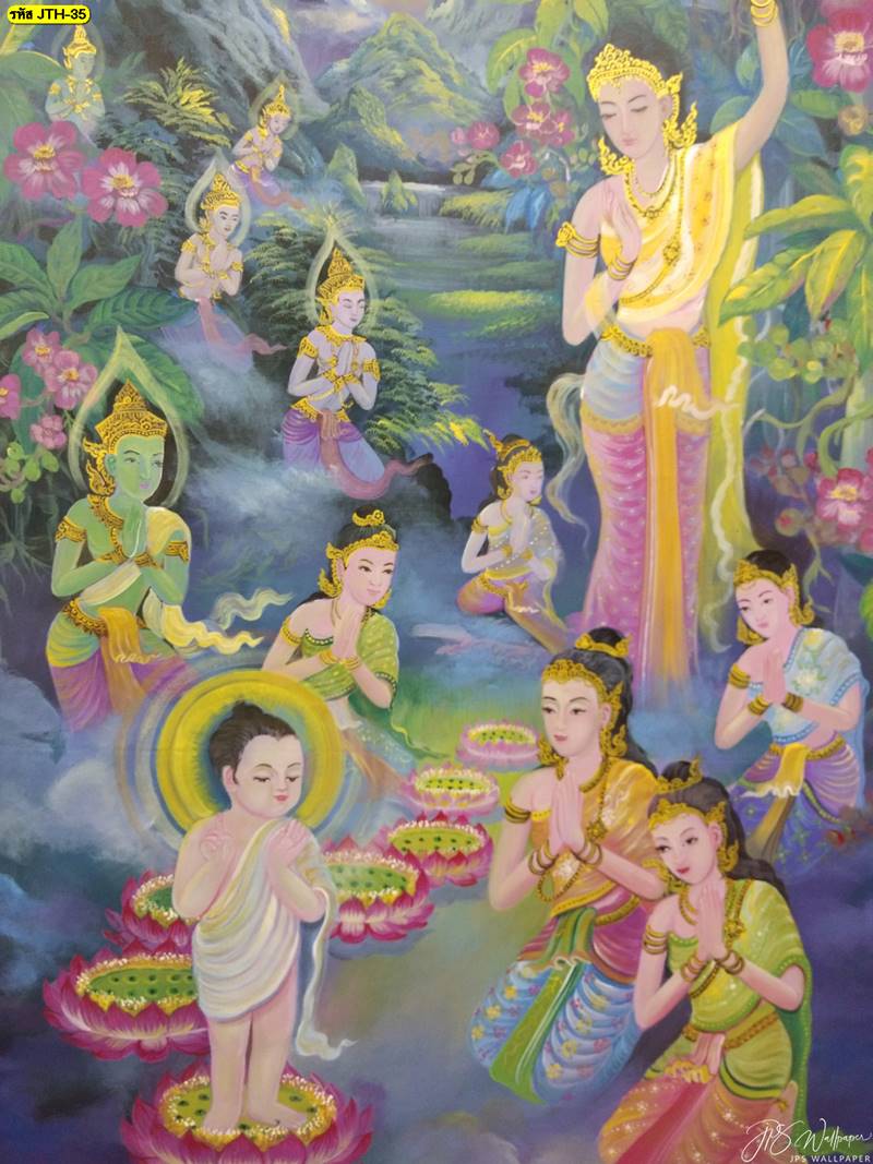 ลายจิตกรรมฝาผนัง จิตกรรมฝาผนัง ภาพวาด พุทธประวัติ ภาพพระ พระพุทธเจ้า รามเกียรติ์ พระราม หนุมาน ห้องพระ