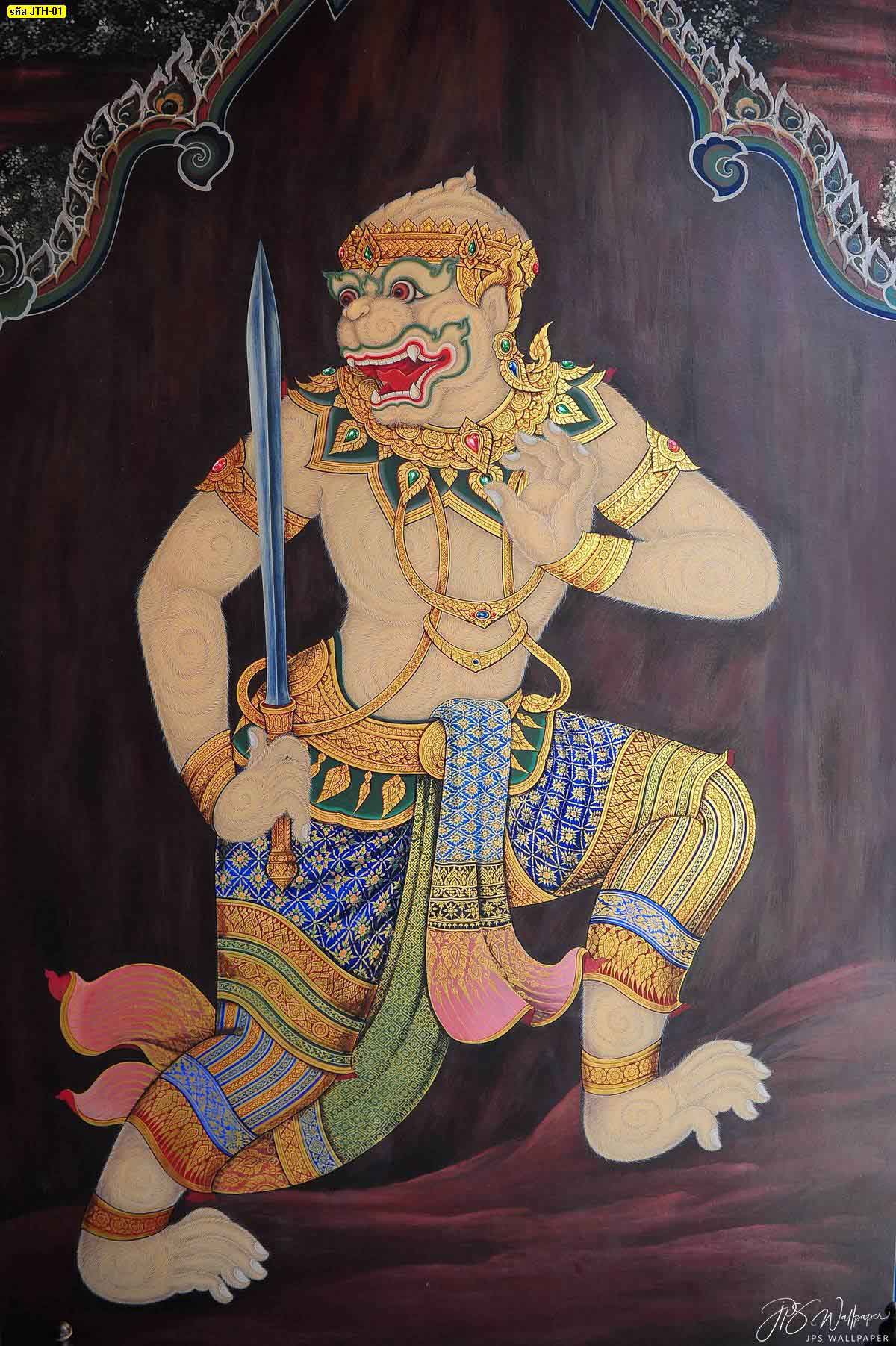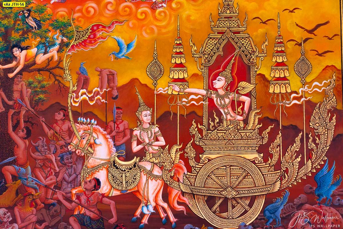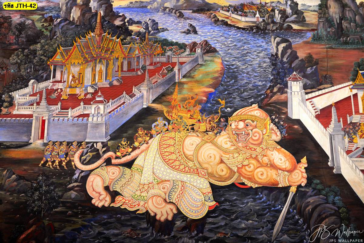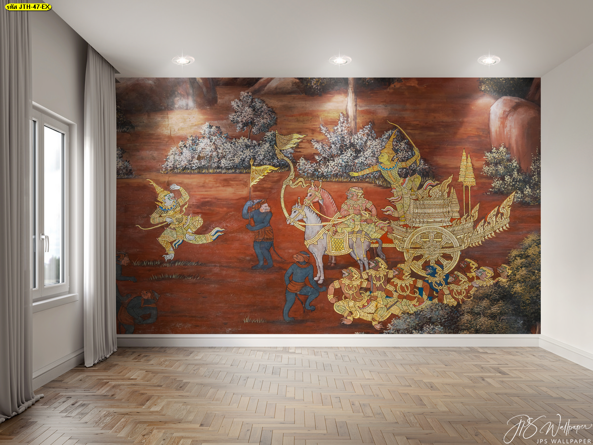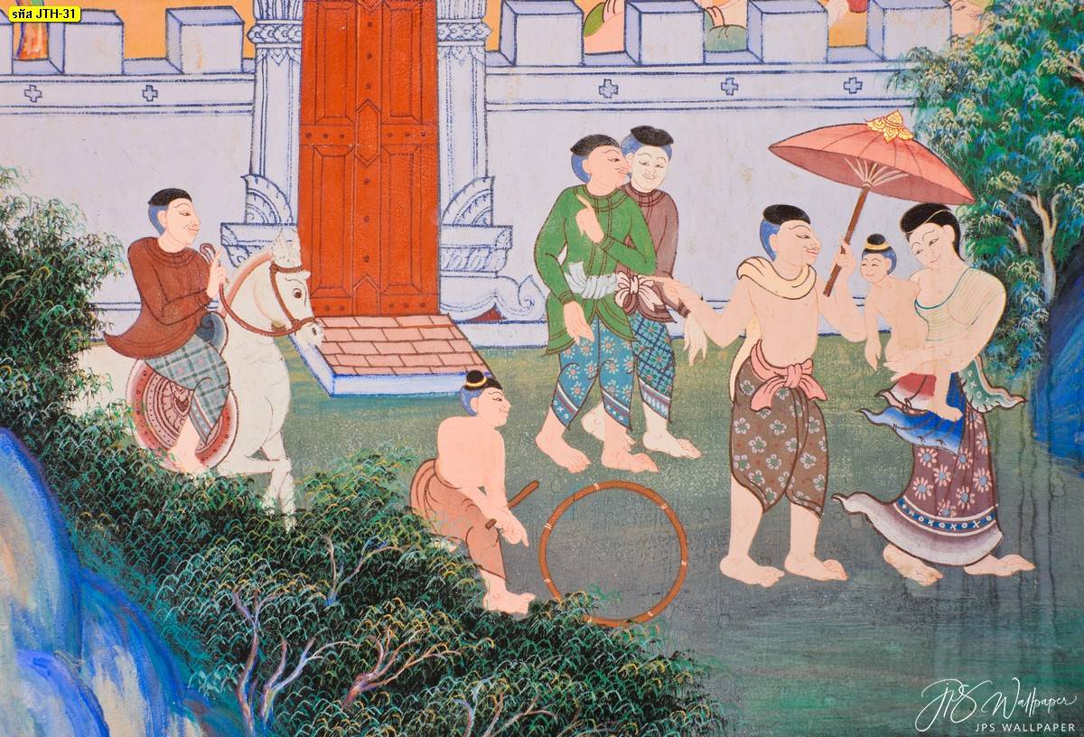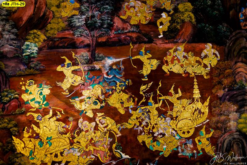 ลายจิตกรรมฝาผนัง จิตกรรมฝาผนัง ภาพวาด พุทธประวัติ ภาพพระ พระพุทธเจ้า รามเกียรติ์ พระราม หนุมาน ห้องพระ