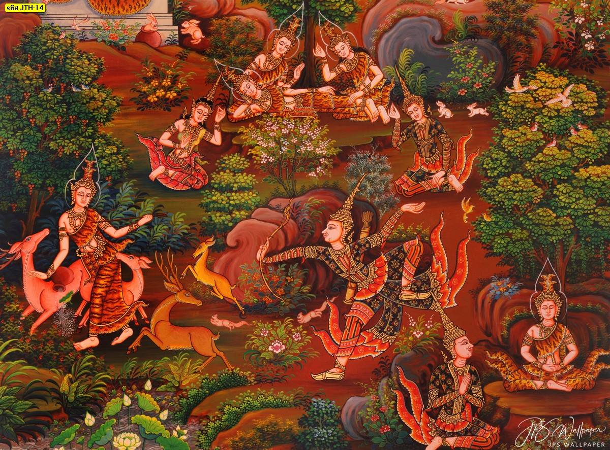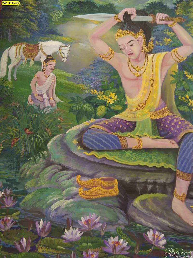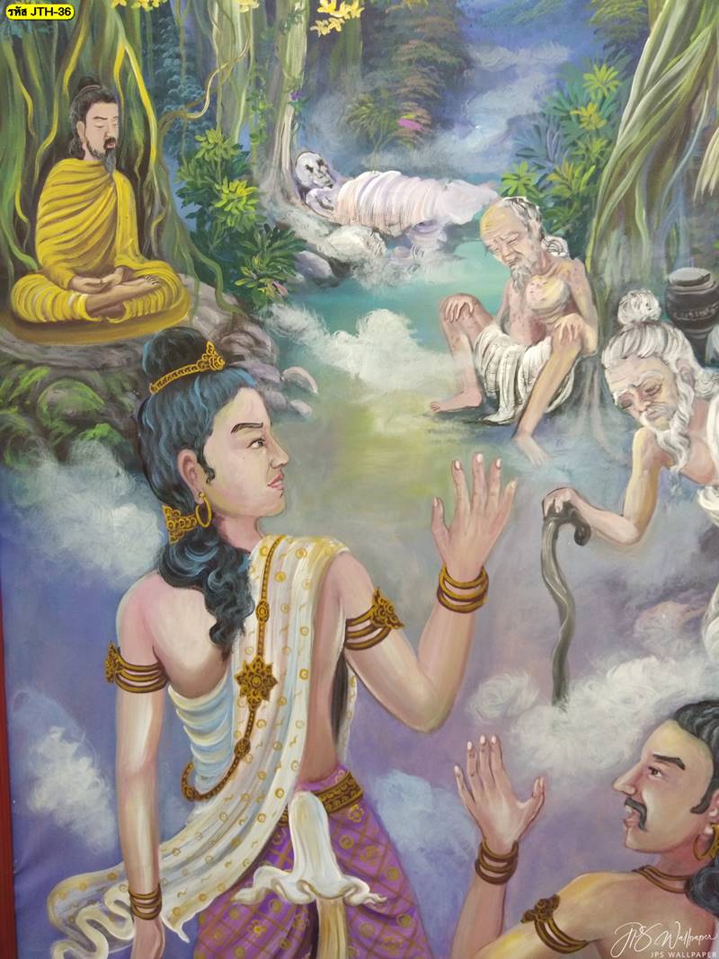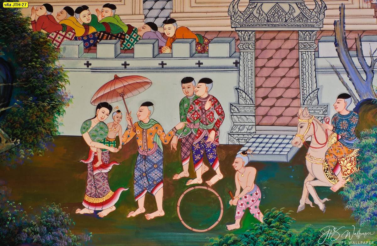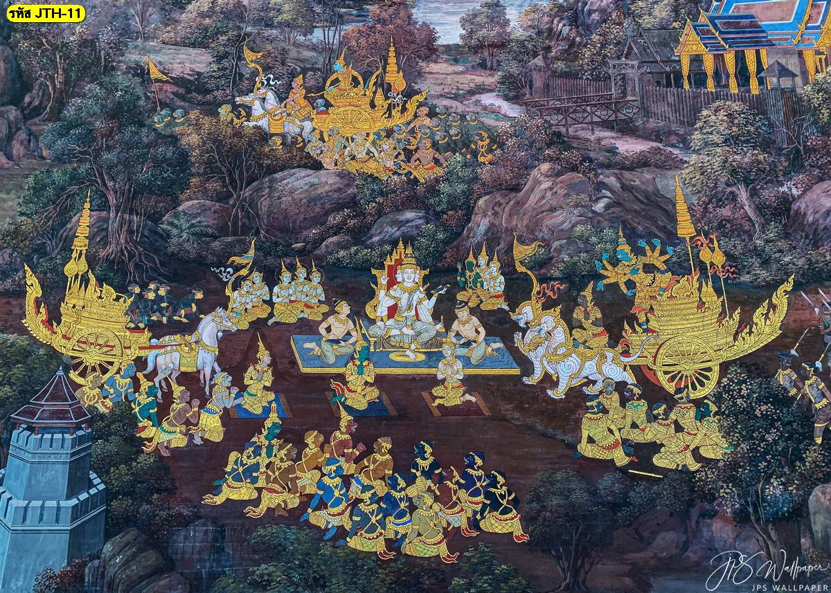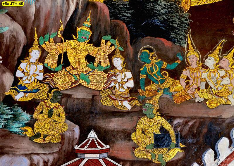 ลายจิตกรรมฝาผนัง จิตกรรมฝาผนัง ภาพวาด พุทธประวัติ ภาพพระ พระพุทธเจ้า รามเกียรติ์ พระราม หนุมาน ห้องพระ
