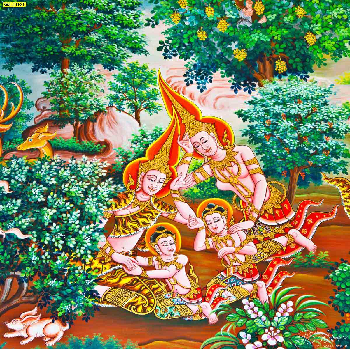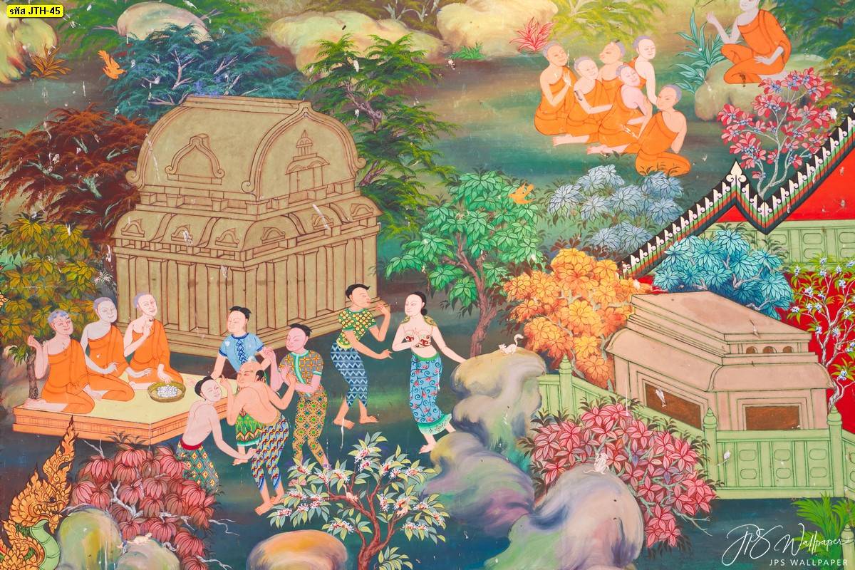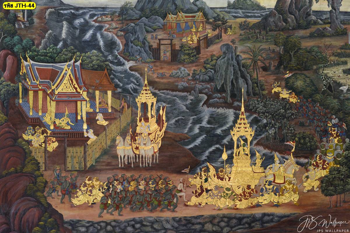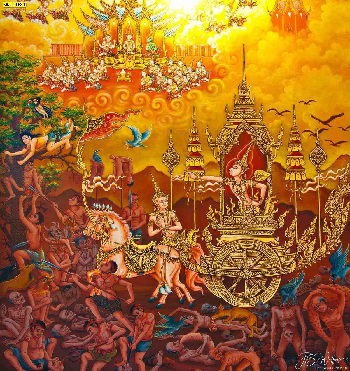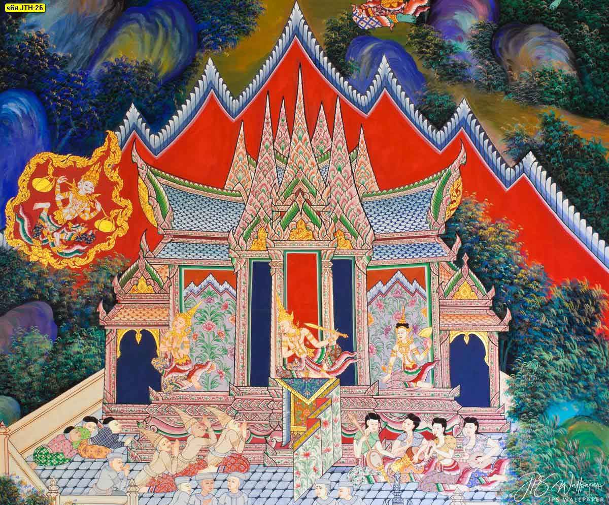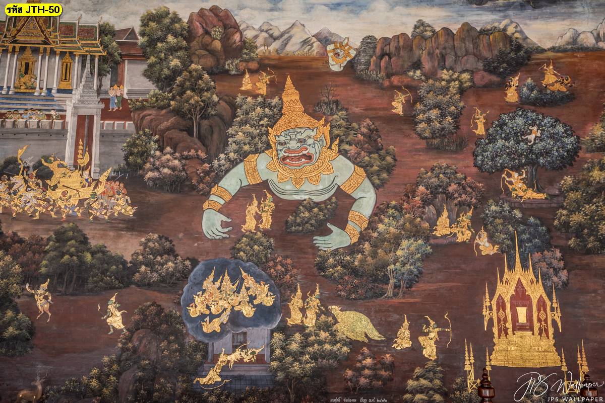 ลายจิตกรรมฝาผนัง จิตกรรมฝาผนัง ภาพวาด พุทธประวัติ ภาพพระ พระพุทธเจ้า รามเกียรติ์ พระราม หนุมาน ห้องพระ