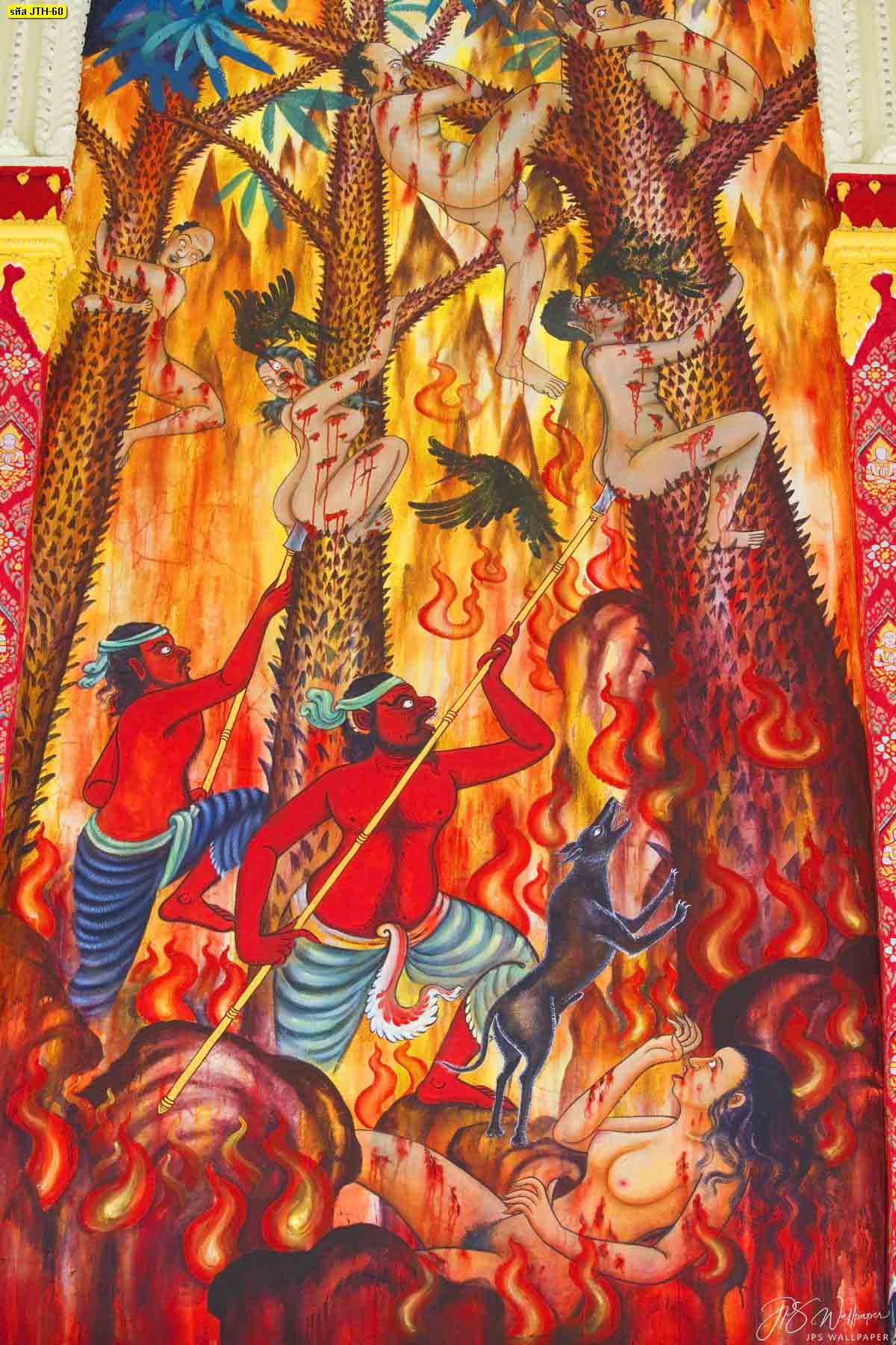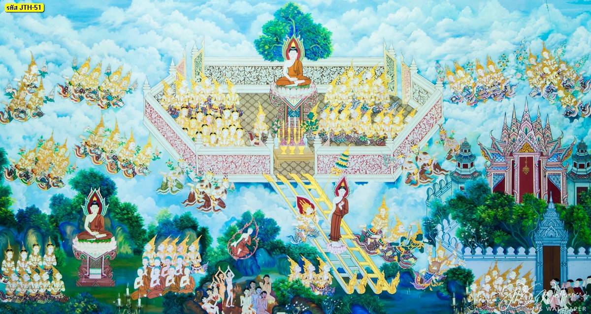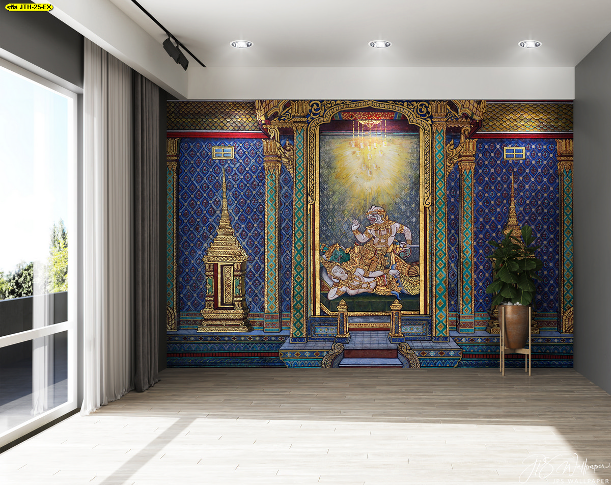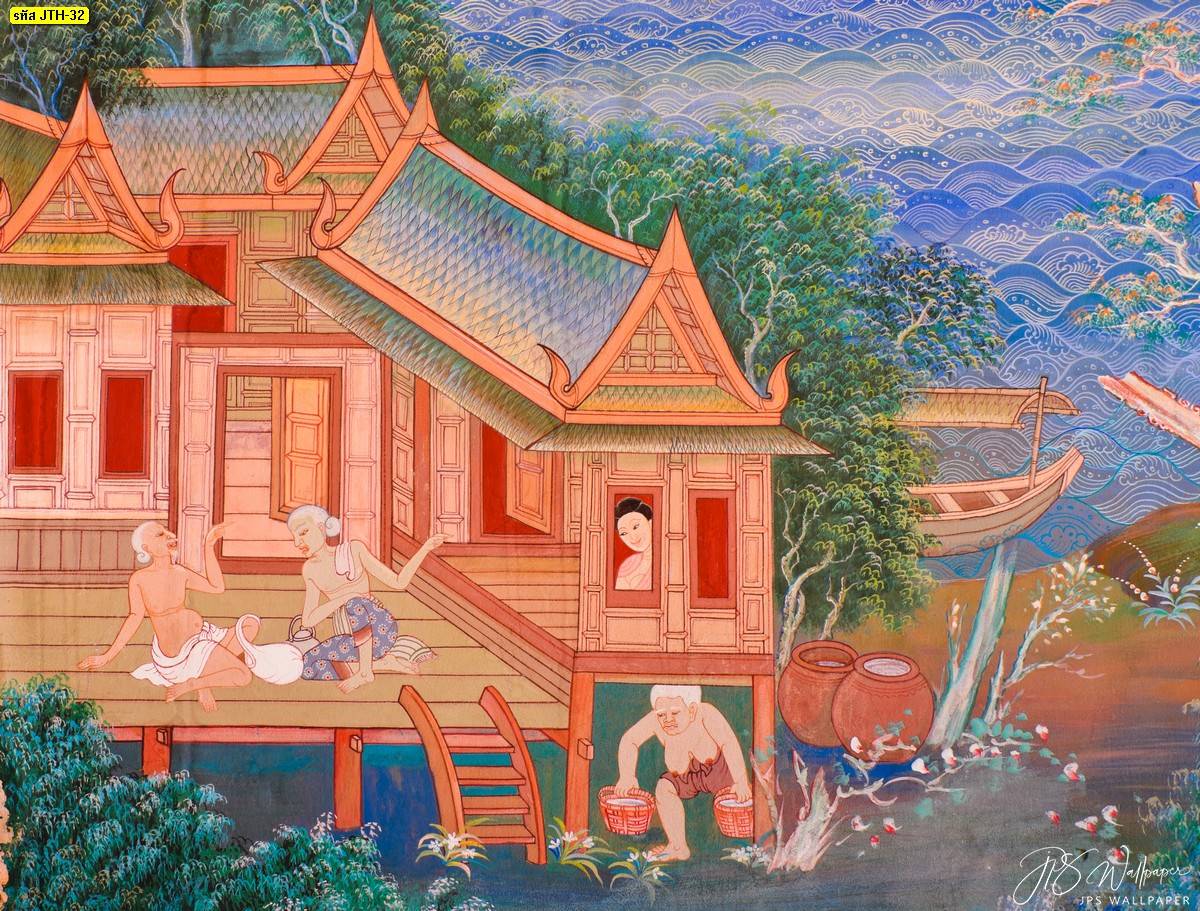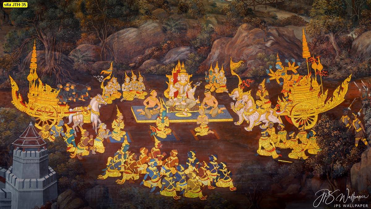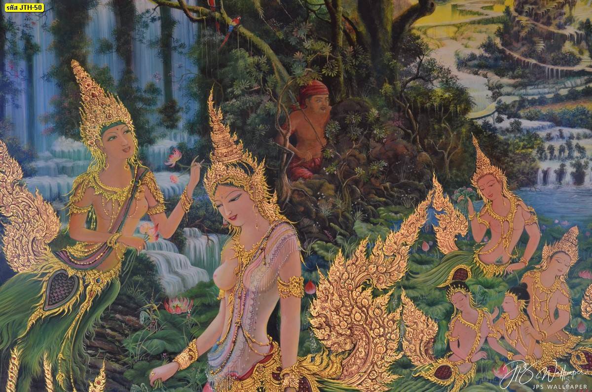 ลายจิตกรรมฝาผนัง จิตกรรมฝาผนัง ภาพวาด พุทธประวัติ ภาพพระ พระพุทธเจ้า รามเกียรติ์ พระราม หนุมาน ห้องพระ