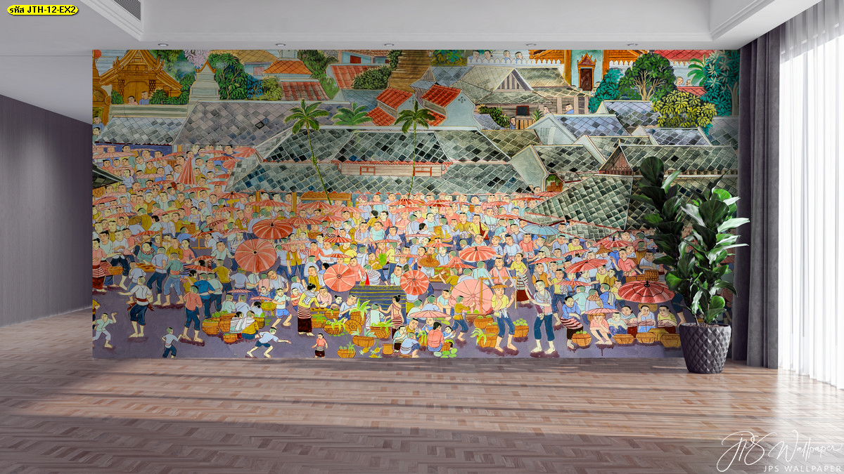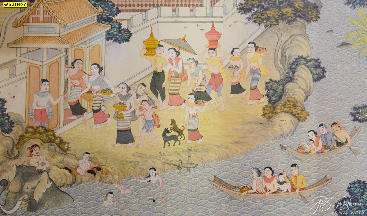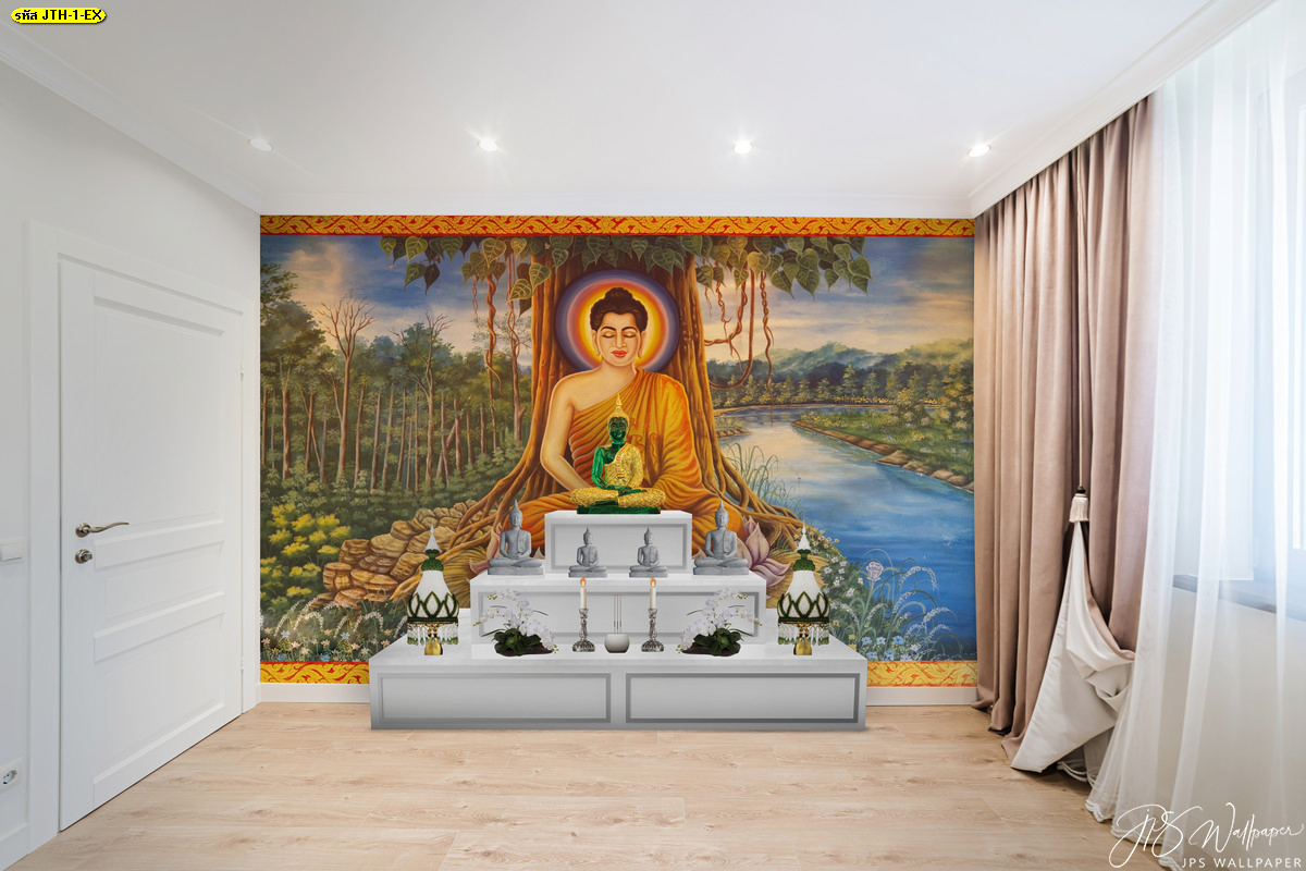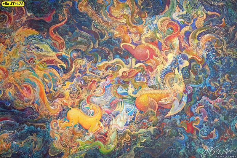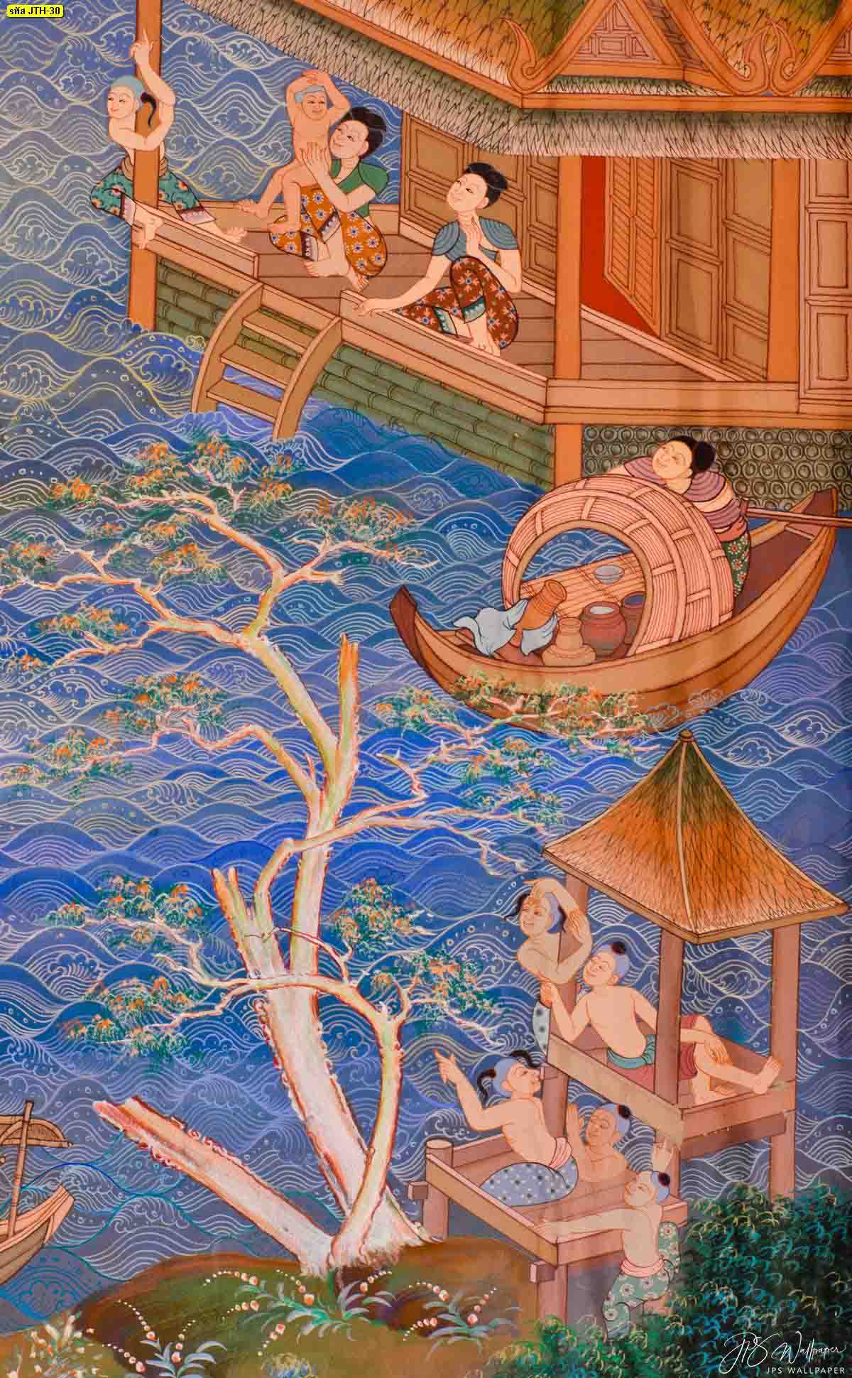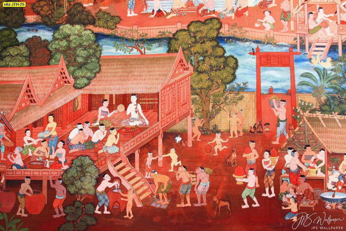 ลายจิตกรรมฝาผนัง จิตกรรมฝาผนัง ภาพวาด พุทธประวัติ ภาพพระ พระพุทธเจ้า รามเกียรติ์ พระราม หนุมาน ห้องพระ