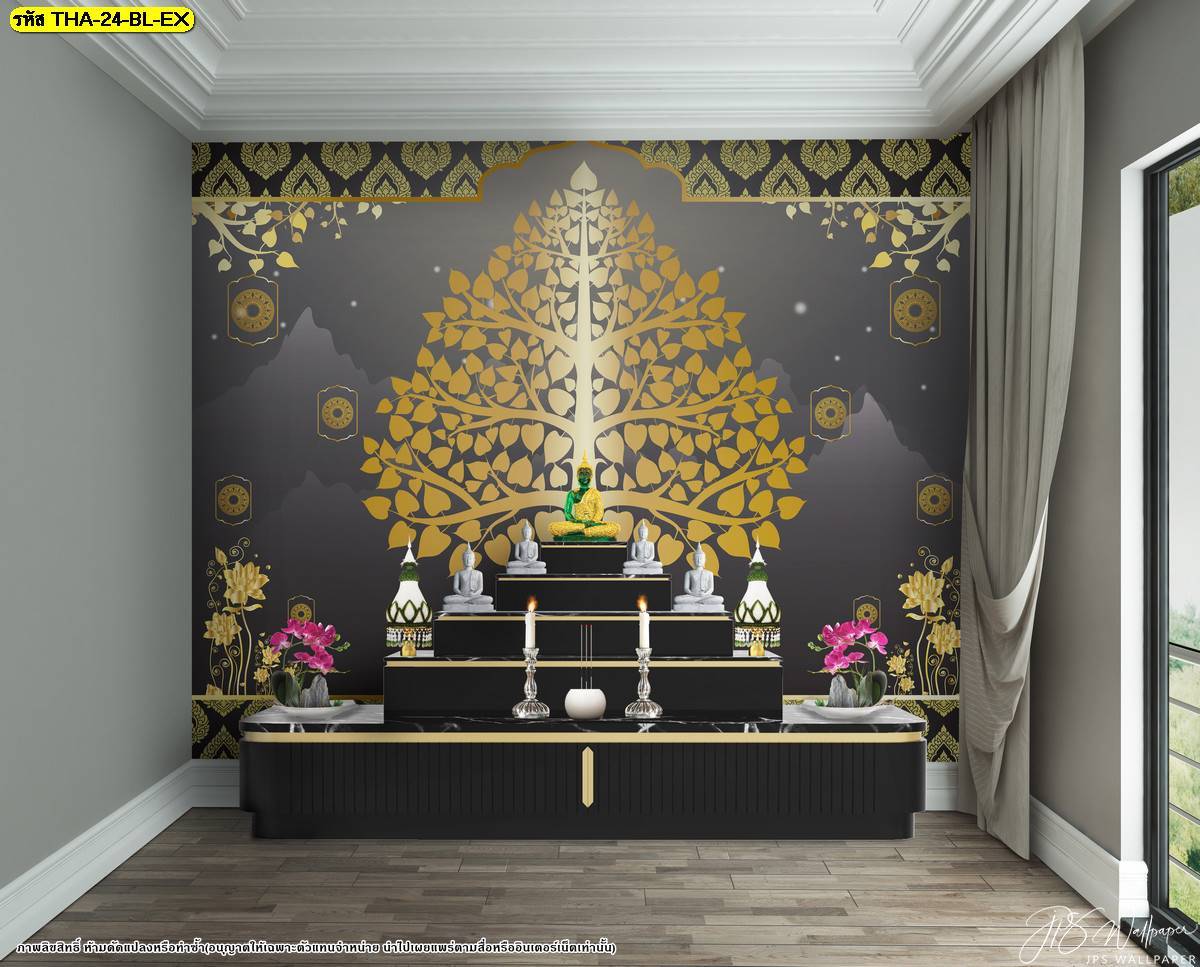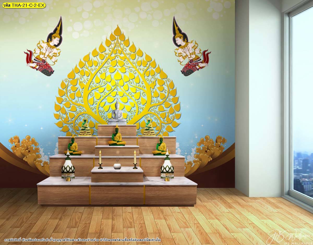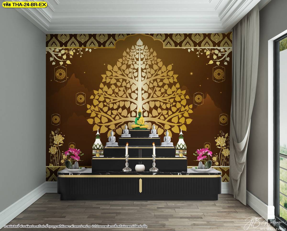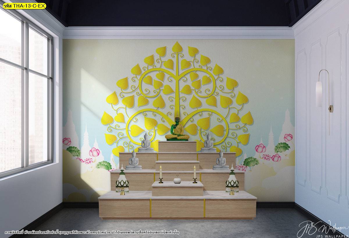 ตกแต่งห้องพระ ต้นโพธิ์ ภาพพิมพ์ห้องพระ ลายต้นโพธิ์ ลายลิขสิทธิ์ วอลเปเปอร์ติดห้องพระ ห้องพระ แคตตาล็อก