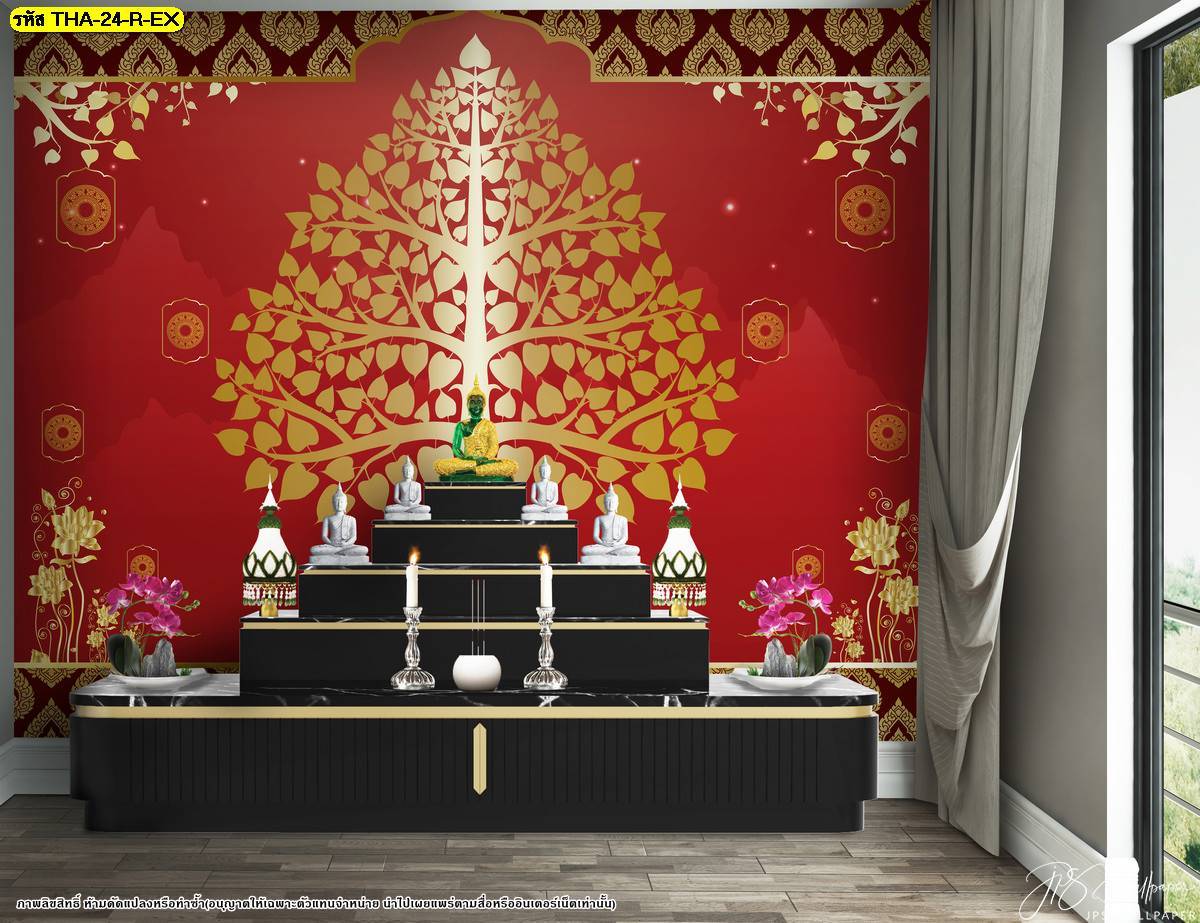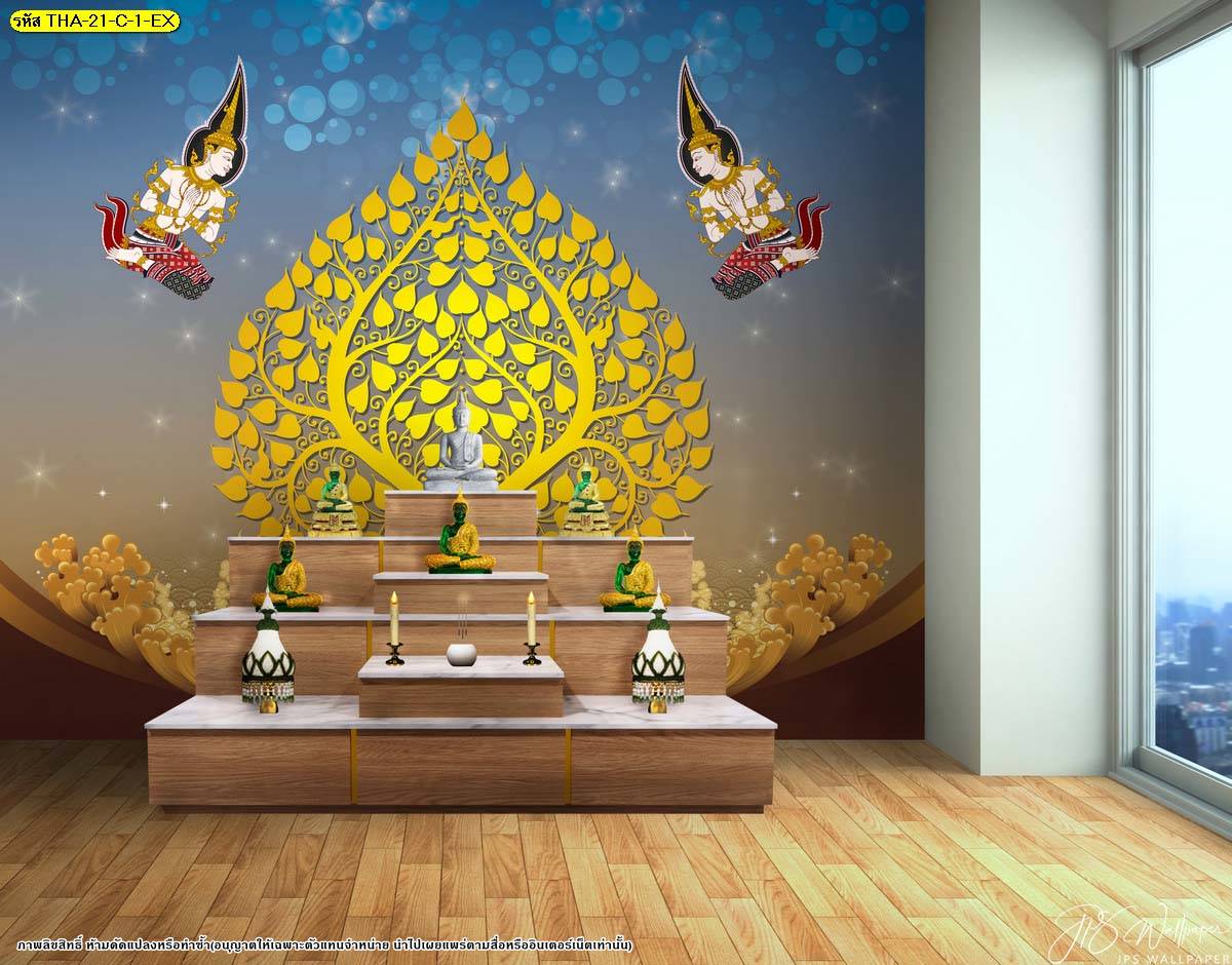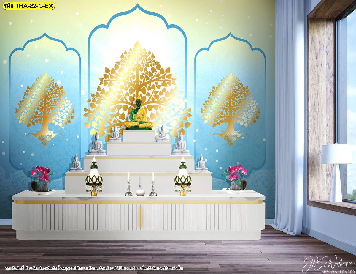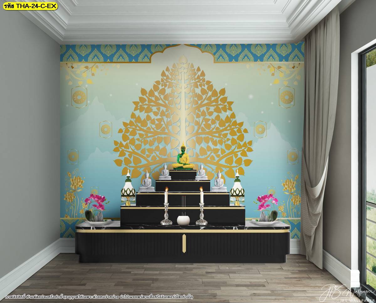 ตกแต่งห้องพระ ต้นโพธิ์ ภาพพิมพ์ห้องพระ ลายต้นโพธิ์ ลายลิขสิทธิ์ วอลเปเปอร์ติดห้องพระ ห้องพระ แคตตาล็อก