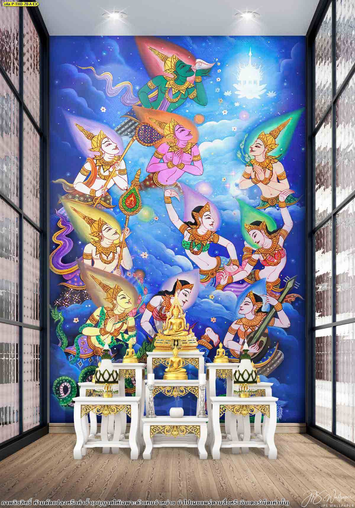 ห้องพระ ตกแต่งห้องพระ ลายเทพนม ภาพพิมพ์ห้องพระ วอลเปเปอร์ติดห้องพระ ฉากหลังติดห้องพระ วอลเปเปอร์ห้องพระสวยๆ วอลเปเปอร์เทพนม ลายไทย ประตูวัด…