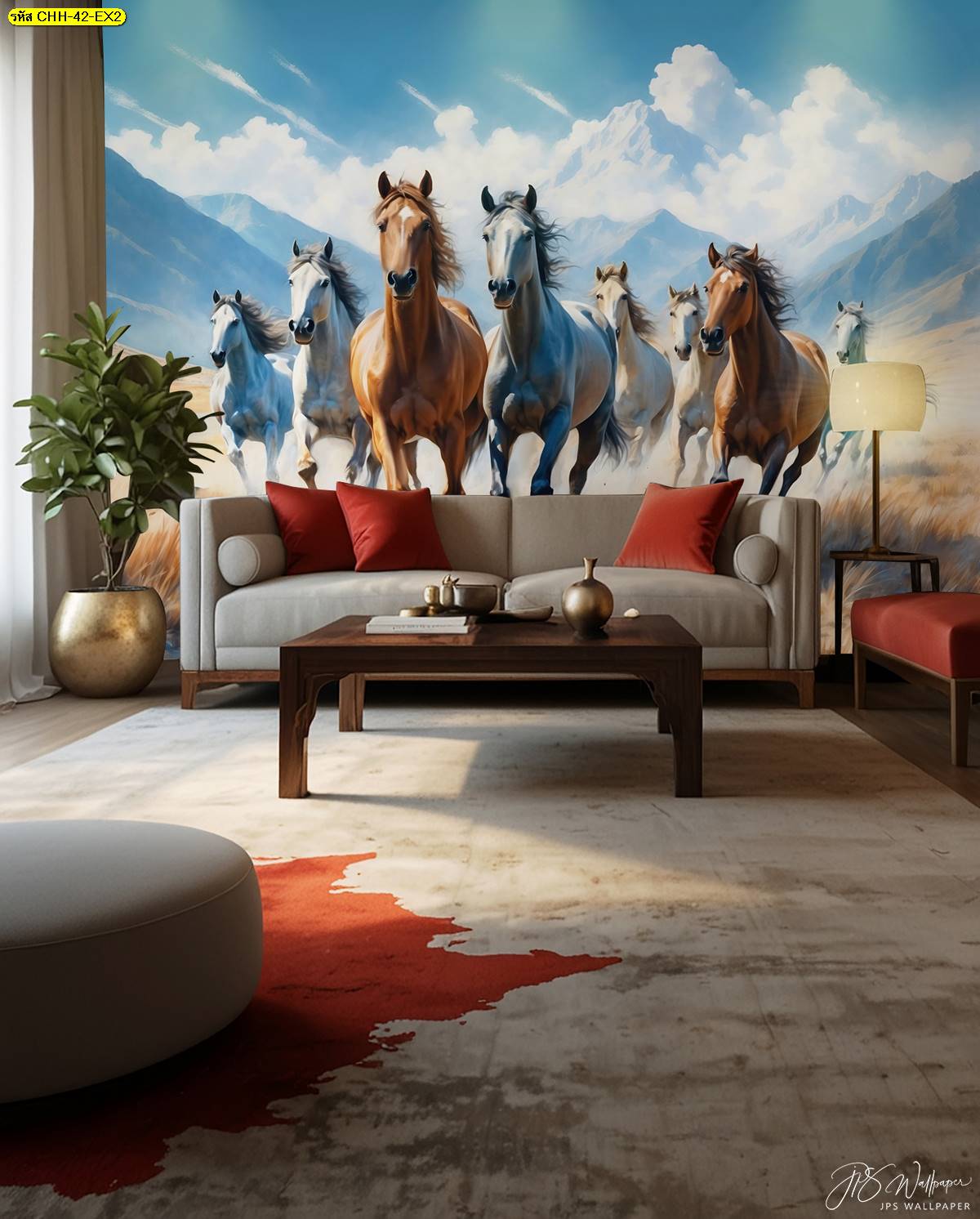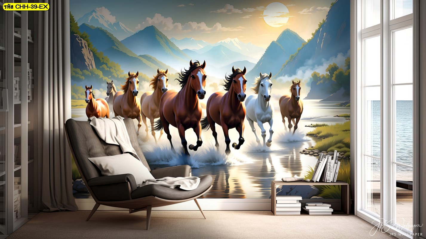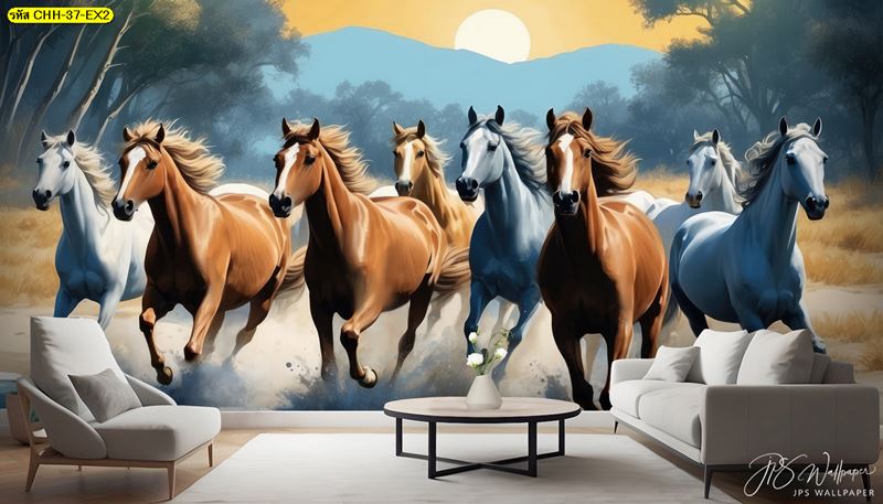 ฝูงม้า ภาพวาด ภาพวาดม้า ม้า ม้าจีน ม้ามงคล ม้าวิ่ง ลายม้า ฮวงจุ้ย ลายใหม่