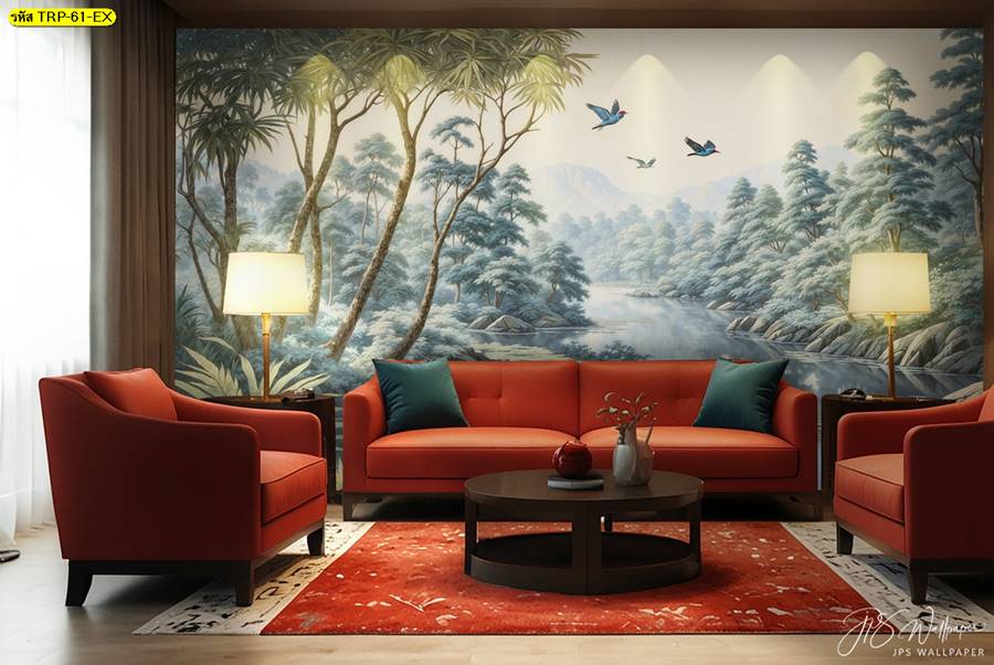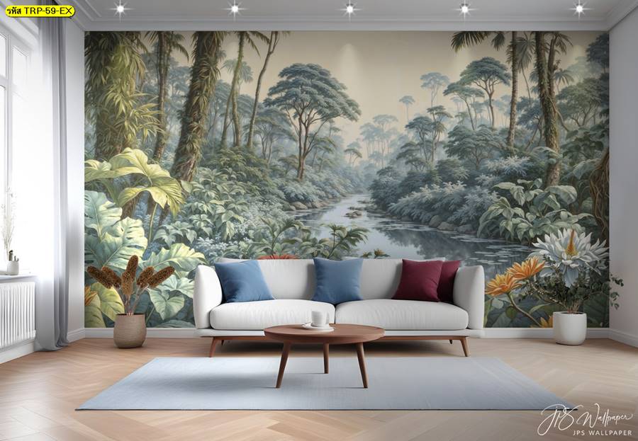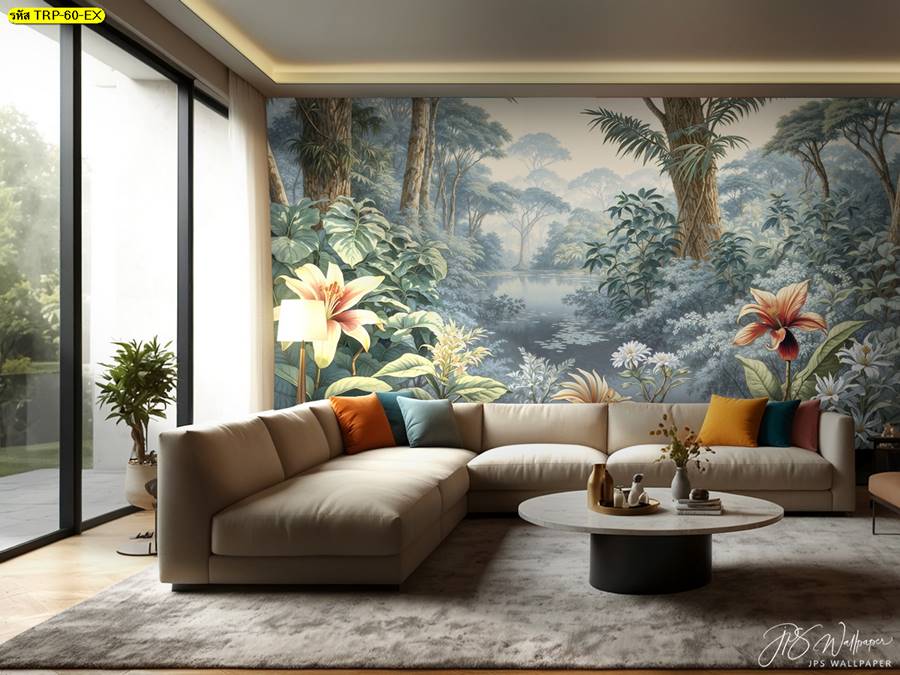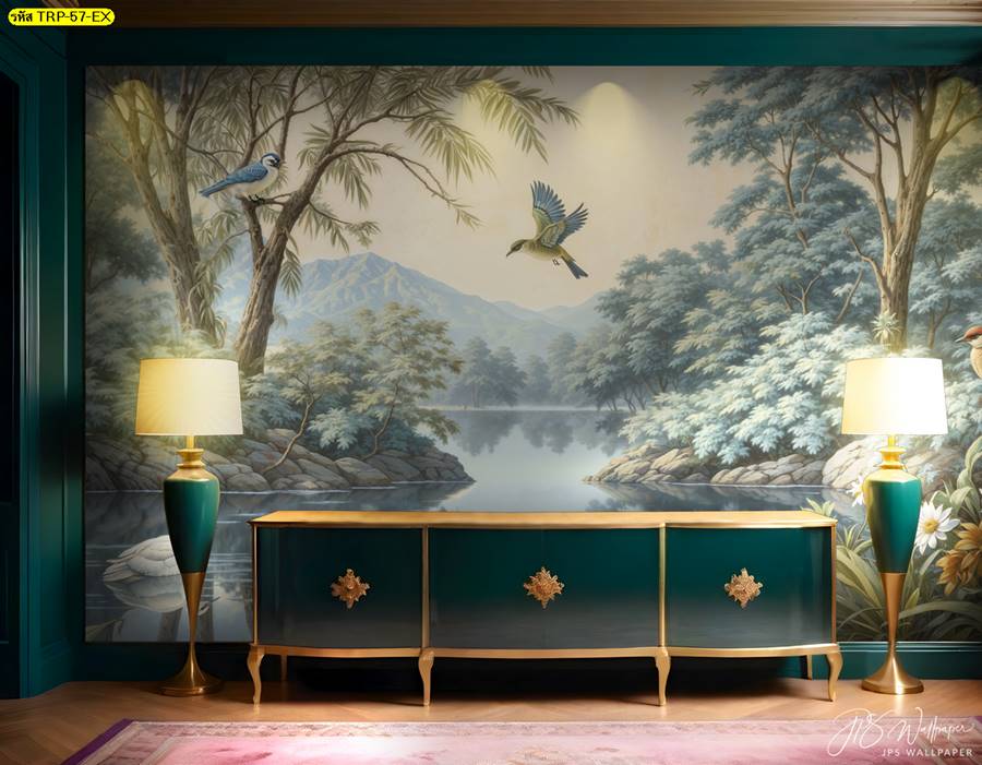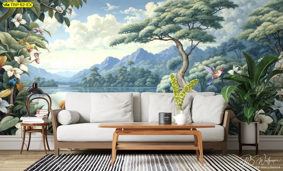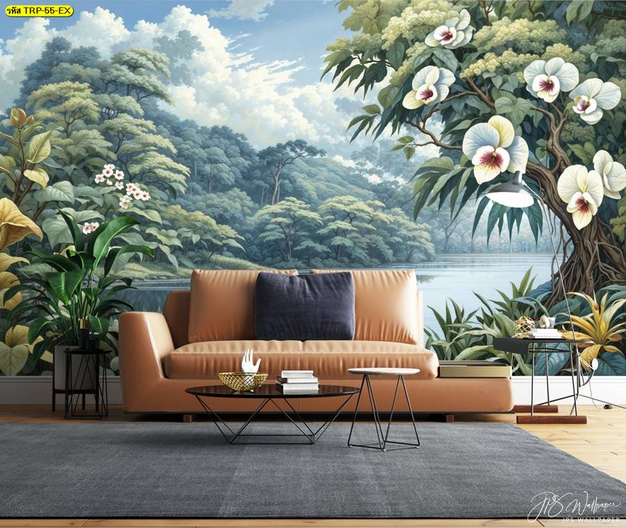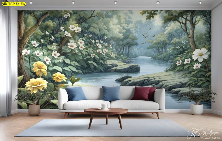 วอลเปเปอร์ติดผนัง ลายสวนป่า ตกแต่งห้องนั่งเล่น ภาพพิมพ์สวนป่า วอลเปเปอร์สวนป่า ภาพติดผนัง ป่าไม้ ลายฝรั่งเศส ต้นไม้ ใบไม้…