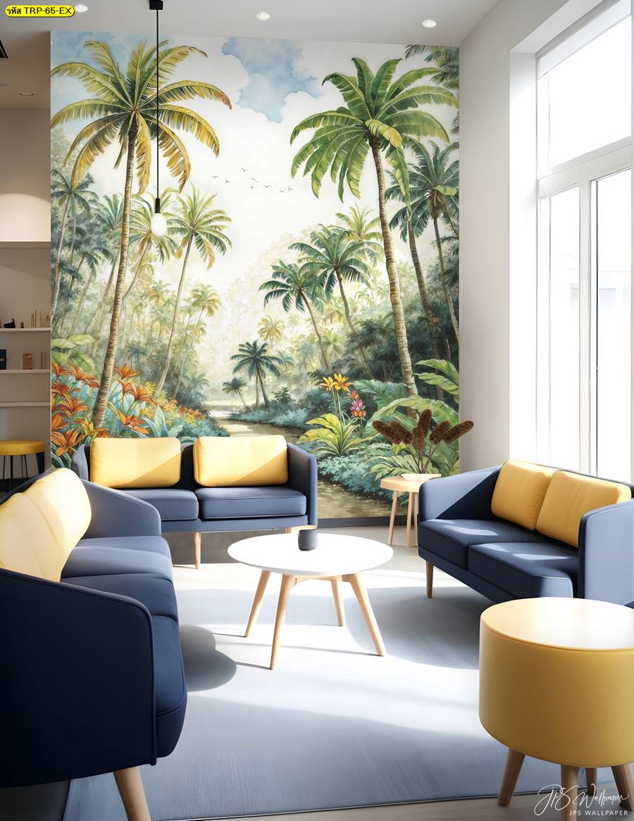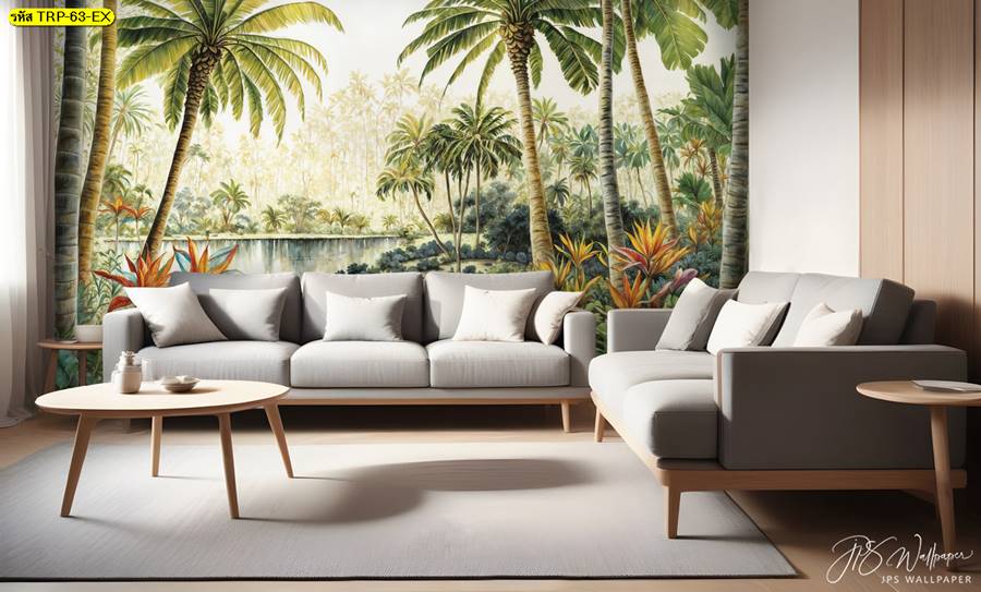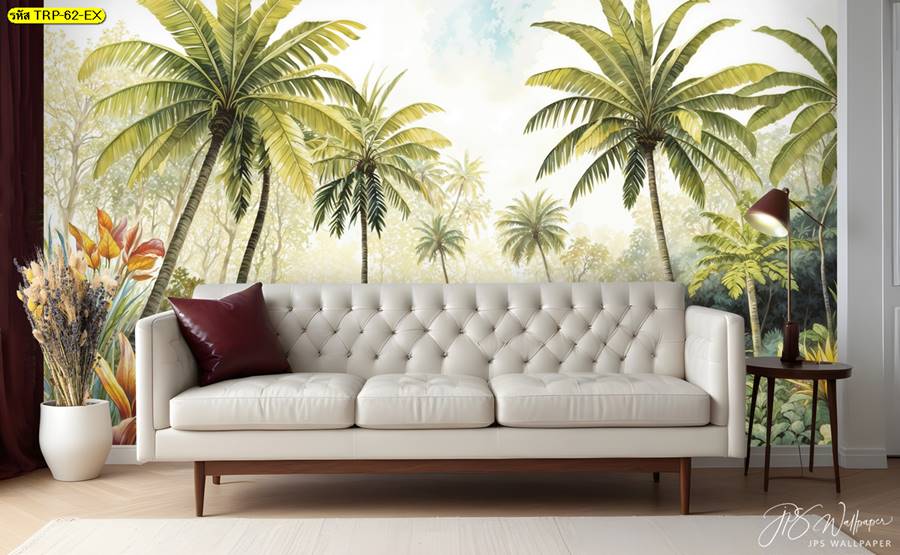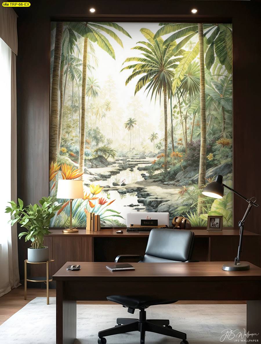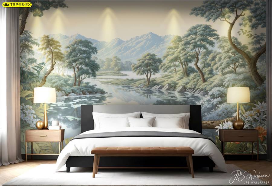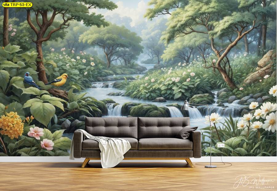 วอลเปเปอร์ติดผนัง ลายสวนป่า ตกแต่งห้องนั่งเล่น ภาพพิมพ์สวนป่า วอลเปเปอร์สวนป่า ภาพติดผนัง ป่าไม้ ลายฝรั่งเศส ต้นไม้ ใบไม้…
