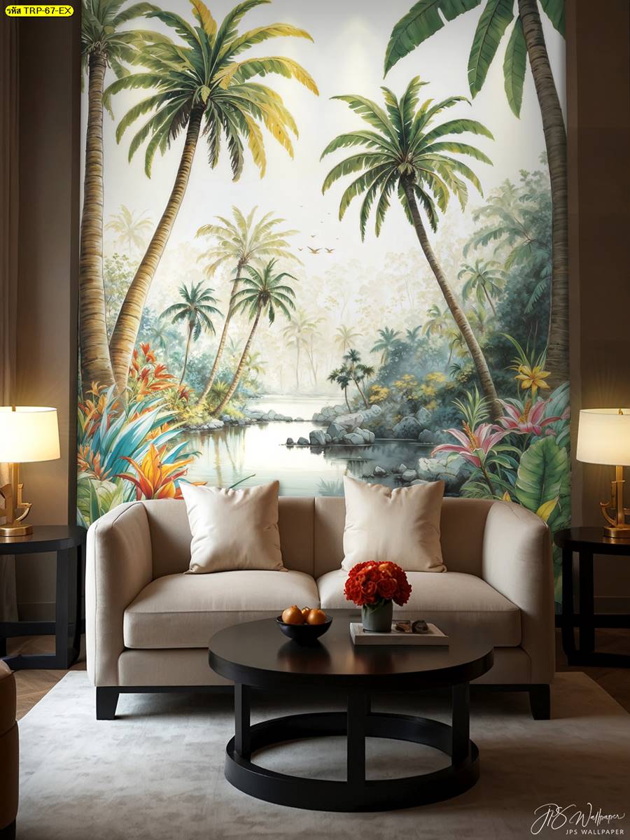 ลายสวนป่า ภาพติดผนัง นกฟลามิงโก ป่าไม้ ลายสัตว์ นกแก้ว นก หงษ์ นกยูง ใบไม้ สวนป่า ภาพวาดสวนป่า