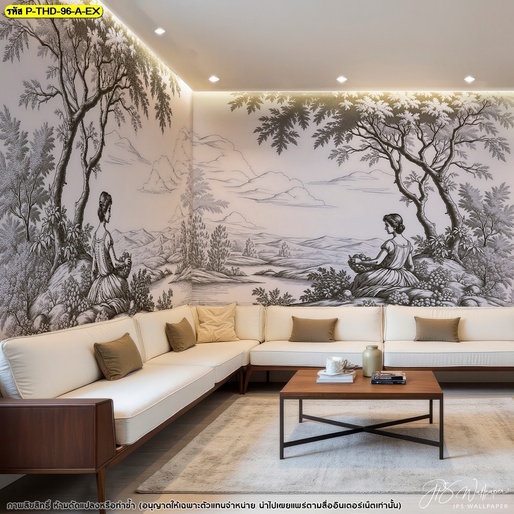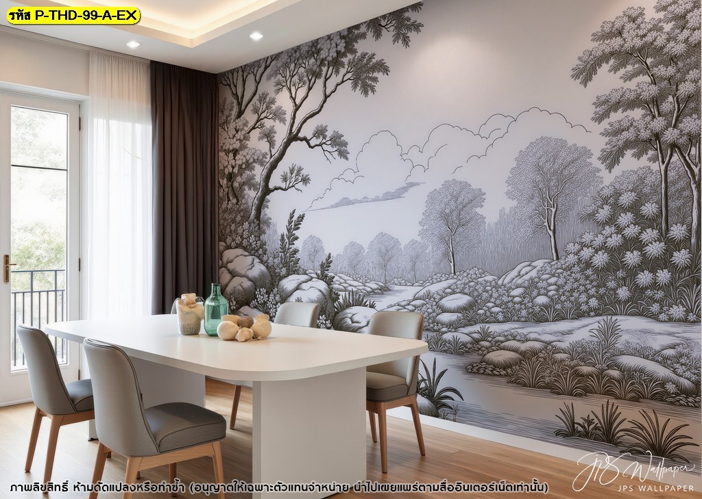 ลายสวนป่า ภาพติดผนัง ป่าไม้ ใบไม้ สวนป่า ภาพวาดสวนป่า กรุผนัง ลายกรุผนัง ยุโรป ภาพสไตล์ยุโรป ยุโรป ภาพยุโรป ภาพลายเส้น