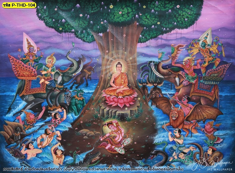 ฉากหลังติดห้องพระ ตกแต่งห้องพระ ตรัสรู้ ประสูติ ปรินิพพาน พระพุทธเจ้า พระพุทธมารผจญ พรีเมียม ภาพพิมพ์ห้องพระ ลายพระพุทธเจ้า วอลเปเปอร์ติดห้องพระ วอลเปเปอร์ห้องพระ ห้องพระ ผจญมาร มารผจญ