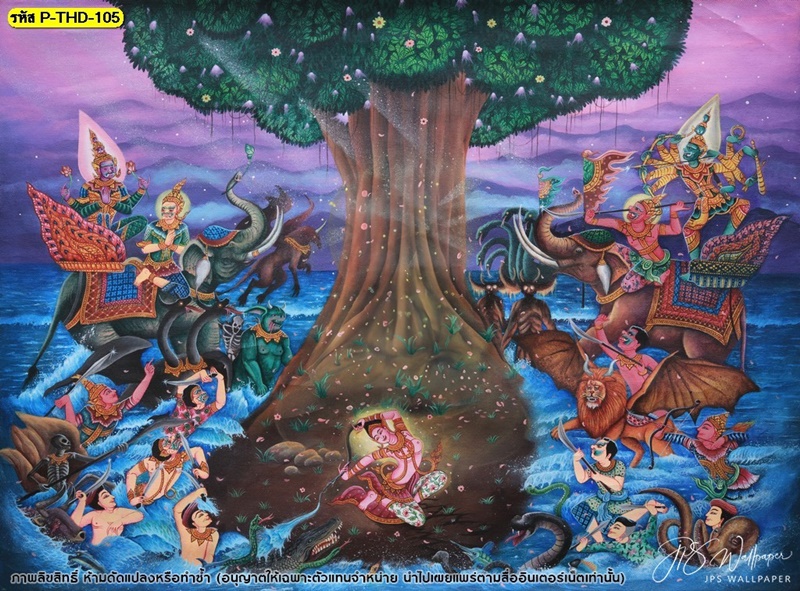 วอลเปเปอร์ติดผนัง ลายสงกรานต์ ตกแต่งห้องนั่งเล่น ภาพพิมพ์สงกรานต์ วอลเปเปอร์ติดห้องนอน วอลเปเปอร์ห้องสวยๆ วอลเปเปอร์สงกรานต์ ภาพติดผนัง วอลเปเปอร์ลายไทย ภาพพิมพ์ลาย