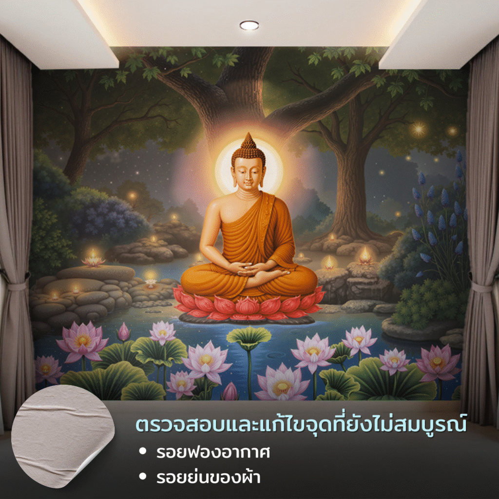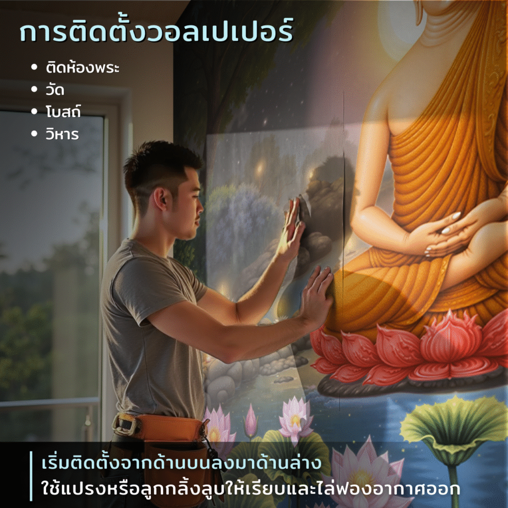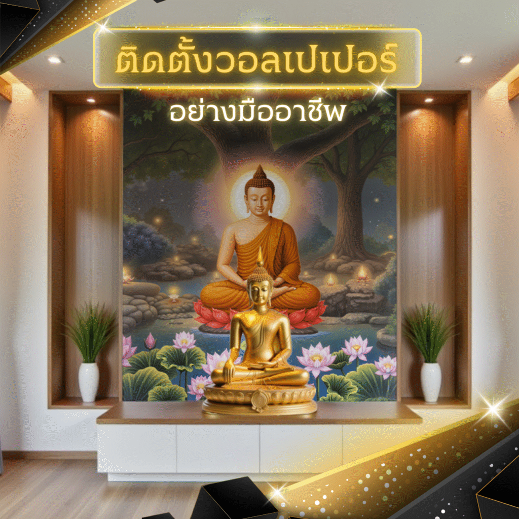 การติดตั้งวอลเปเปอร์ลายพระพุทธเจ้าตรัสรู้อย่างมืออาชีพ ต้องอาศัยความละเอียดและความประณีตในการทำงานเพื่อให้ได้ผลลัพธ์ที่สวยงามและน่าชื่นชม