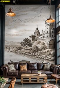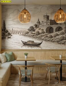 ยุโรป ลายเส้น ร้านอาหาร ร้านค้า วิวยุโรป วอลเปเปอร์ลายยุโรป ภาพสั่งพิมพ์