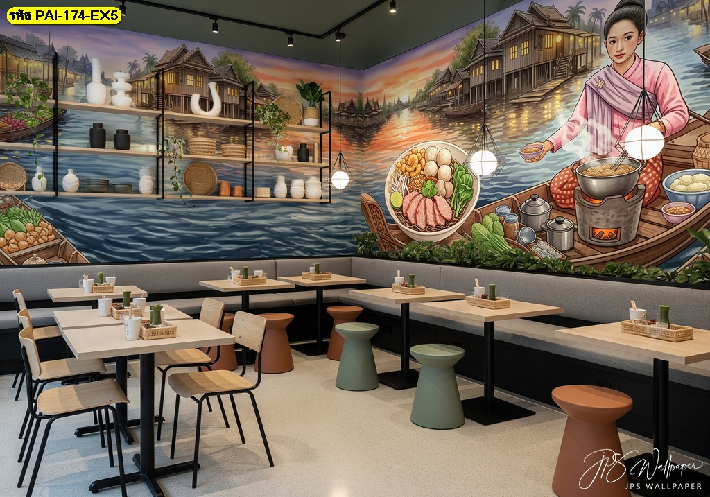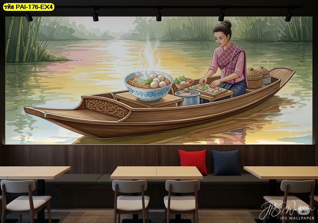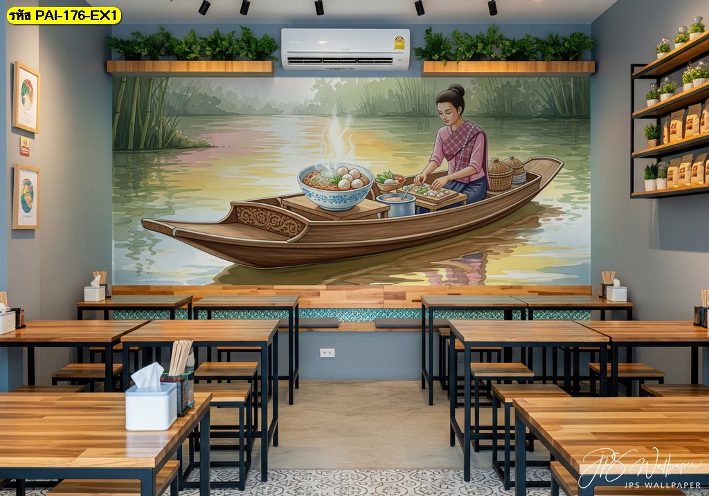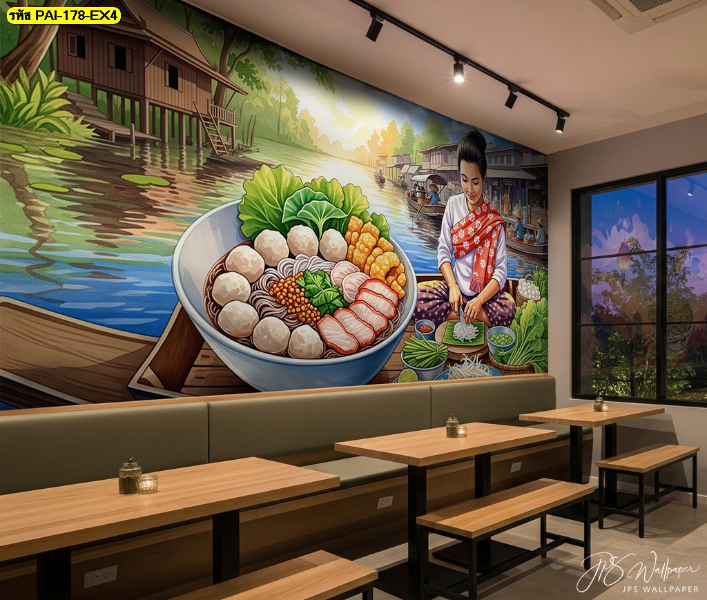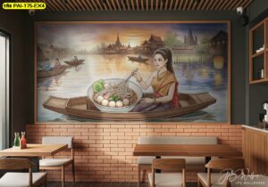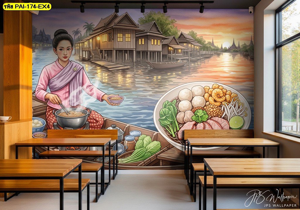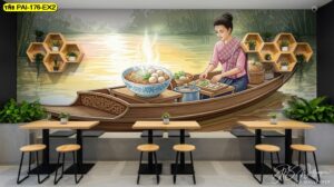 ก๋วยเตี๋ยว ร้านอาหาร ร้านก๋วยเตี๋ยว ภาพวาด หญิงไทย ชุดไทย เตี๋ยวเรือ ก๋วยเตี๋ยวเรือ ป้ายติดร้าน บะหมี่ เส้นหมี่