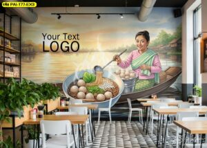 วอลเปเปอร์พิมพ์ลายที่ต้องการและใส่โลโก้หรือชื่อแบรนด์เพื่อตกแต่งร้านอาหารของคุณ