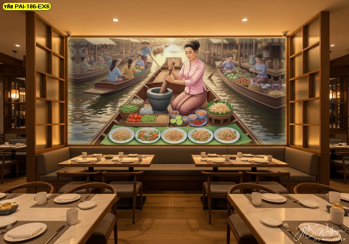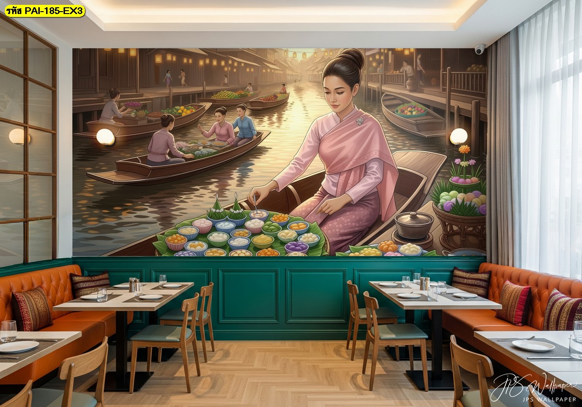 ตลาดน้ำ ตลาดเรือ นวดแผนไทย ประเพณีไทย พายเรือ ร้านอาหาร ร้านอาหารไทย ร้านไทย ลายวิถีไทย ลายไทย วอลเปเปอร์ติดผนัง วัฒนธรรมไทย หญิงไทยโบราณ เรือร้านนวด ร้านนวดไทย