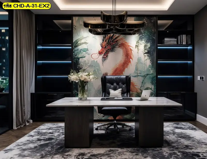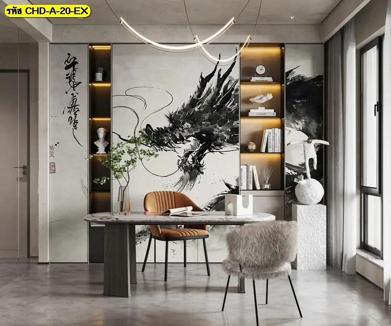 สำหรับการตกแต่งภายใน วอลเปเปอร์ภาพวาดมังกร สามารถปรับใช้ได้กับหลายพื้นที่ ไม่ว่าจะเป็นห้องทำงานที่ต้องการความน่าเชื่อถือ ห้องรับแขกที่เน้นความประทับใจแรก หรือโถงทางเข้าที่ต้องการสร้างบรรยากาศที่โดดเด่นตั้งแต่ก้าวแรก ลวดลายมังกรช่วยเพิ่มความรู้สึกหนักแน่นและมีเอกลักษณ์ให้กับพื้นที่