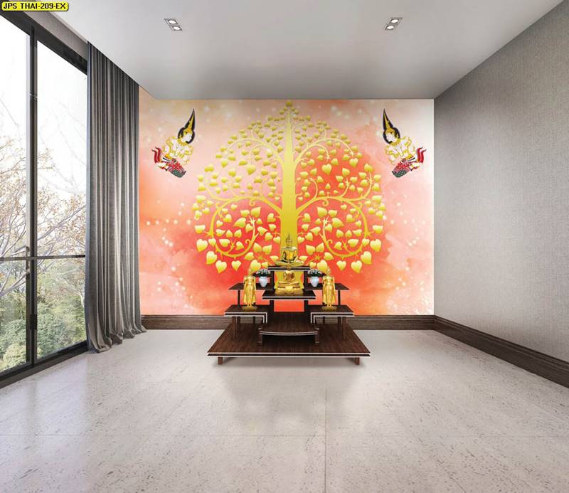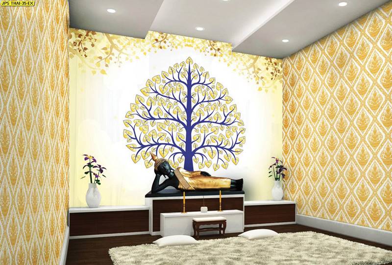 ห้องพระ ลายต้นโพธิ์ ตกแต่งห้องพระ ภาพพิมพ์ห้องพระ วอลเปเปอร์ติดห้องพระ ฉากหลังติดห้องพระ วอลเปเปอร์ห้องพระสวยๆ วอลเปเปอร์ต้นโพธิ์ ภาพติดผนังห้องพระ วอลเปเปอร์ห้องพระ ลายใบโพธิ์