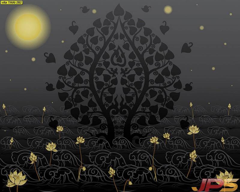 ห้องพระ วอลเปเปอร์ห้องพระ ลายไทย ลายต้นโพธิ์ ภาพพิมพ์ห้องพระ ลายทั่วไป ฉากหลังติดห้องพระ ลายใบโพธิ์ ภาพต้นโพธิ์ติดห้องพระ ภาพพิมพ์ลายไทย