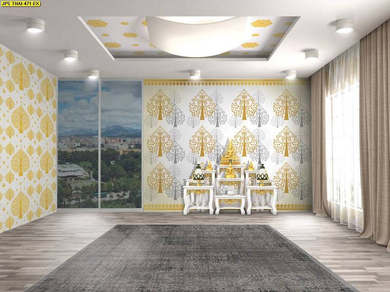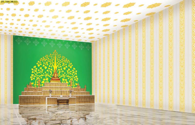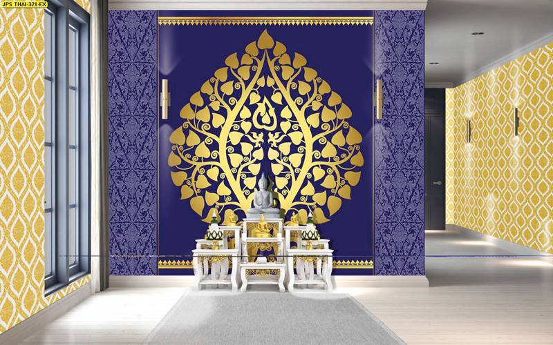 ห้องพระ ลายต้นโพธิ์ ตกแต่งห้องพระ ภาพพิมพ์ห้องพระ วอลเปเปอร์ติดห้องพระ ฉากหลังติดห้องพระ วอลเปเปอร์ห้องพระสวยๆ วอลเปเปอร์ต้นโพธิ์ ภาพติดผนังห้องพระ วอลเปเปอร์ห้องพระ ลายใบโพธิ์
