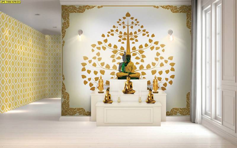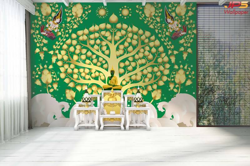 ห้องพระ ลายต้นโพธิ์ ตกแต่งห้องพระ ภาพพิมพ์ห้องพระ วอลเปเปอร์ติดห้องพระ ฉากหลังติดห้องพระ วอลเปเปอร์ห้องพระสวยๆ วอลเปเปอร์ต้นโพธิ์ ภาพติดผนังห้องพระ วอลเปเปอร์ห้องพระ ลายใบโพธิ์