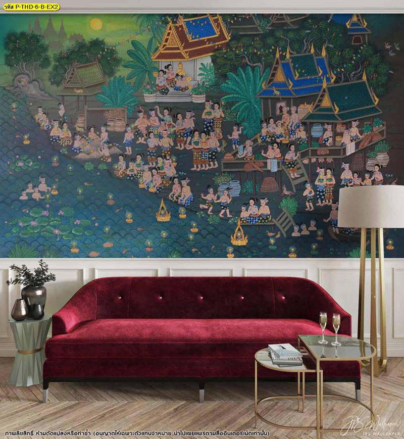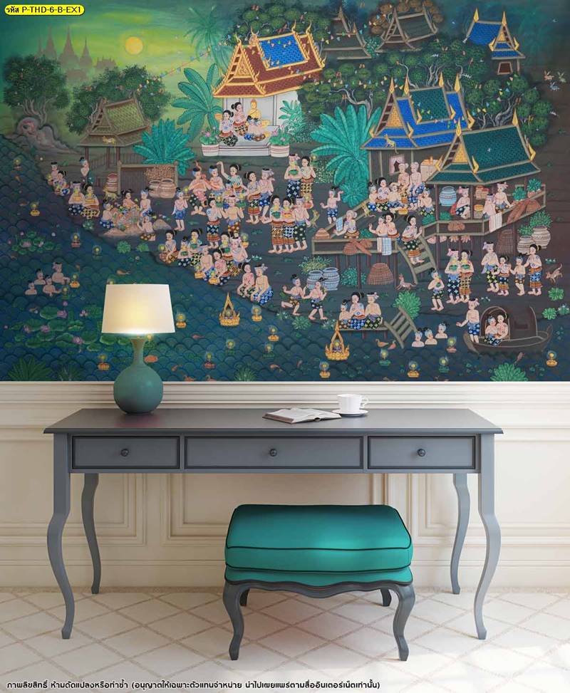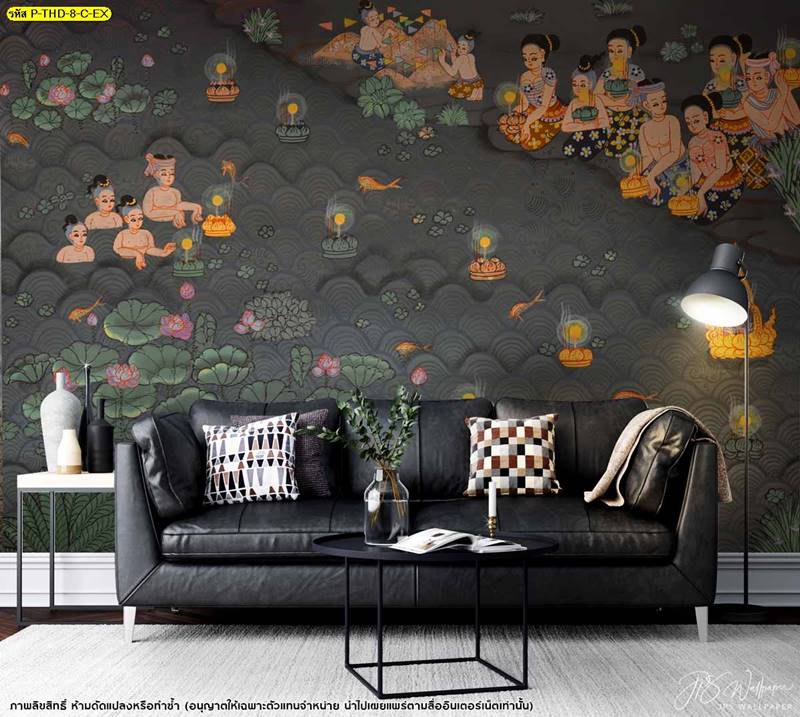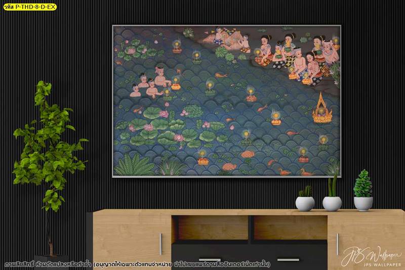 วอลเปเปอร์ติดผนัง ลายลอยกระทง ตกแต่งห้องนั่งเล่น ภาพพิมพ์ลอยกระทง วอลเปเปอร์ติดห้องนอน วอลเปเปอร์ห้องสวยๆ วอลเปเปอร์ลอยกระทง ภาพติดผนัง วอลเปเปอร์ลายไทย ภาพพิมพ์ลาย