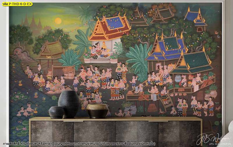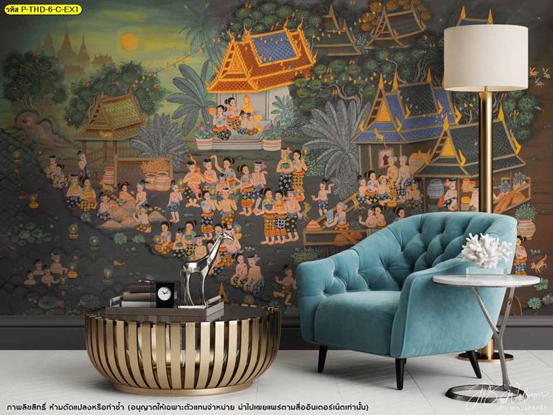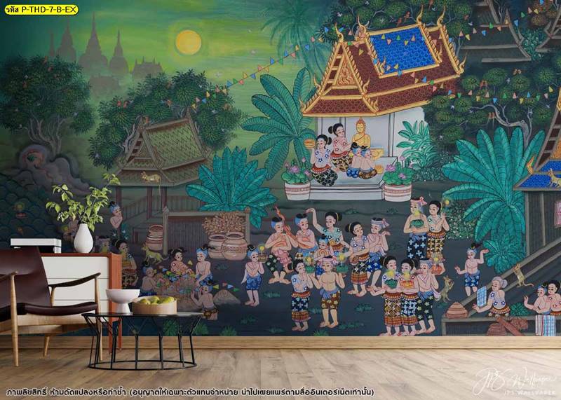 วอลเปเปอร์ติดผนัง ลายสงกรานต์ ตกแต่งห้องนั่งเล่น ภาพพิมพ์สงกรานต์ วอลเปเปอร์ติดห้องนอน วอลเปเปอร์ห้องสวยๆ วอลเปเปอร์สงกรานต์ ภาพติดผนัง วอลเปเปอร์ลายไทย ภาพพิมพ์ลาย