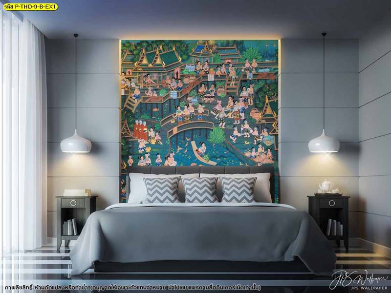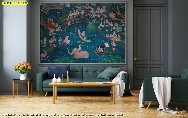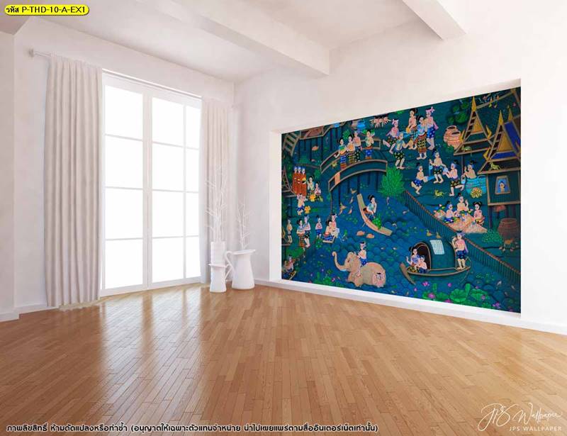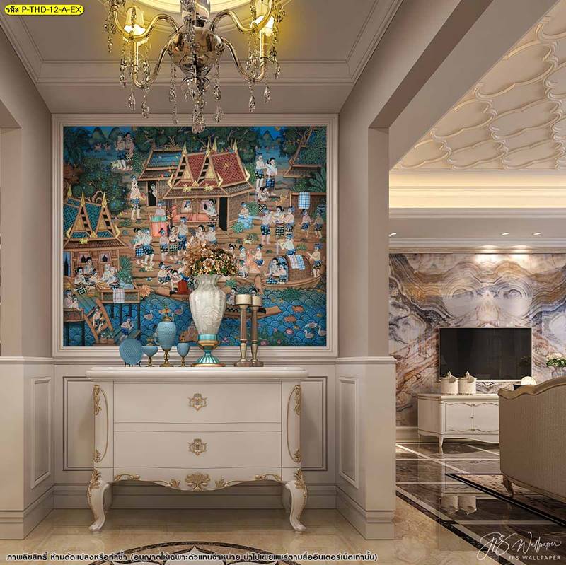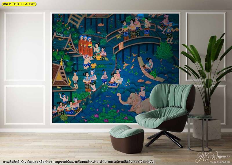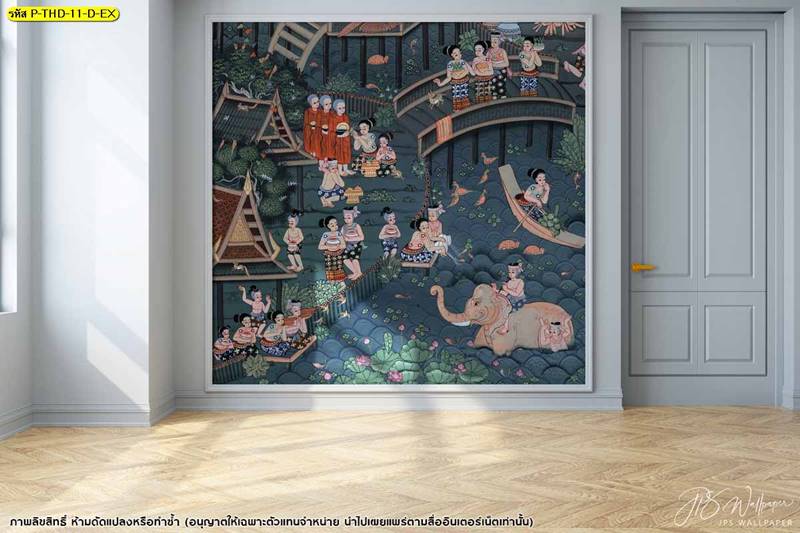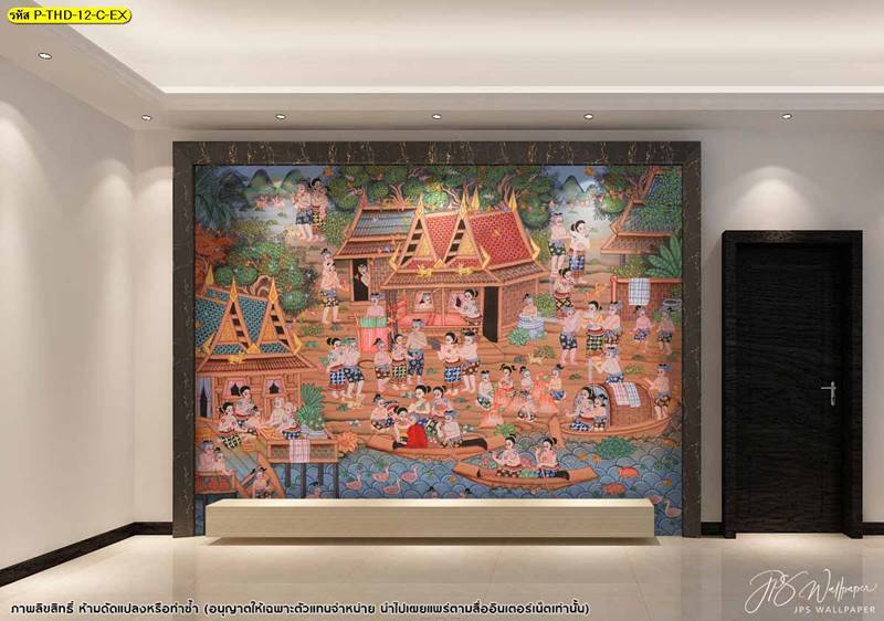 วอลเปเปอร์ติดผนัง ลายสงกรานต์ ตกแต่งห้องนั่งเล่น ภาพพิมพ์สงกรานต์ วอลเปเปอร์ติดห้องนอน วอลเปเปอร์ห้องสวยๆ วอลเปเปอร์สงกรานต์ ภาพติดผนัง วอลเปเปอร์ลายไทย ภาพพิมพ์ลาย