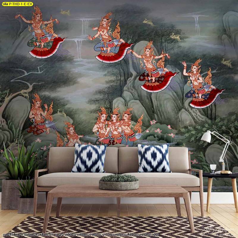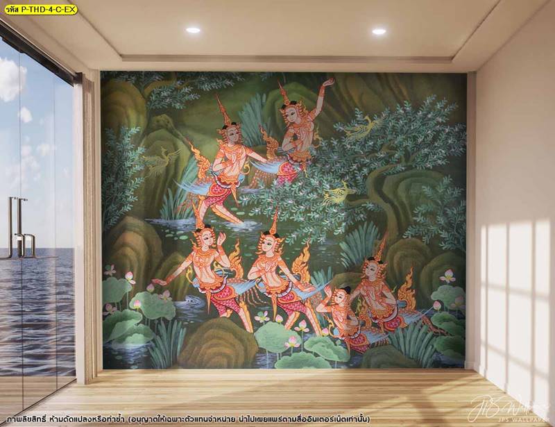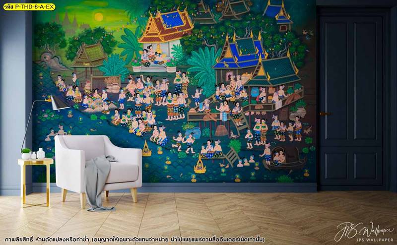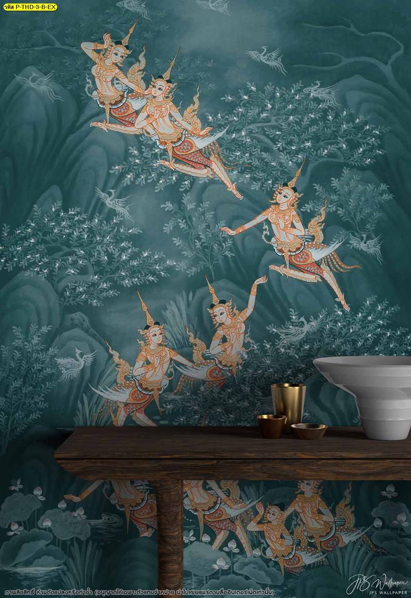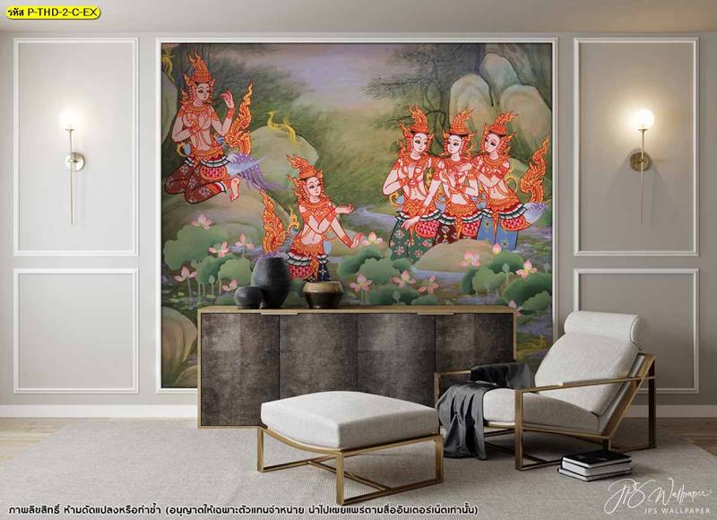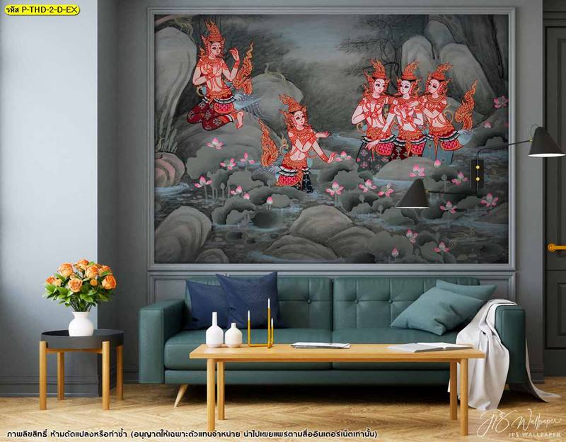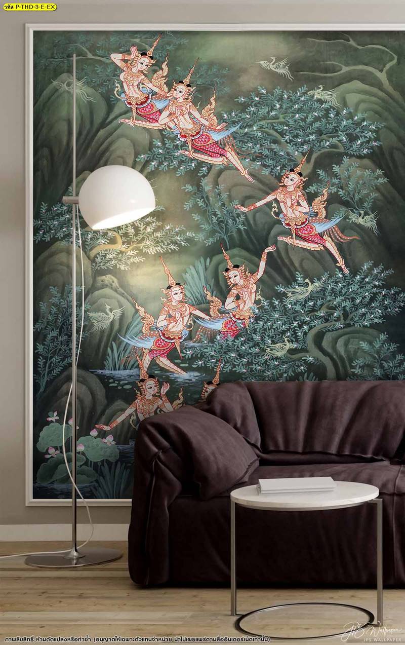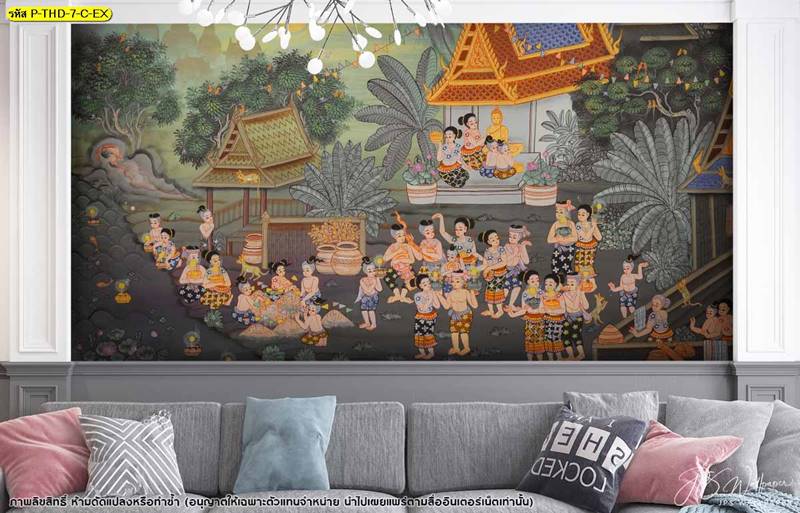 วอลเปเปอร์ติดผนัง, ลายสงกานต์, ตกแต่งห้องนั่งเล่น, ภาพพิมพ์ลายสงกานต์, สงกานต์, ภาพติดผนัง, วอลเปเปอร์ลายไทย, ลายลิขสิทธิ์, ลายไทย, จิตกรรมฝาผนัง,…